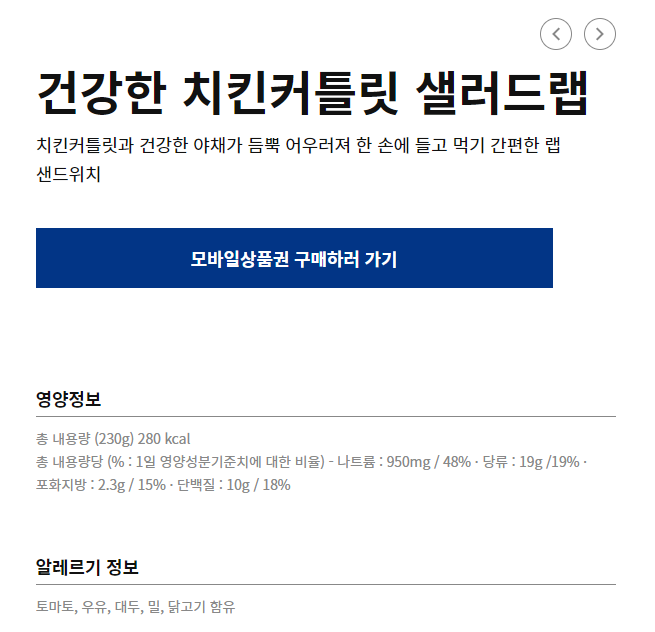 파리바게뜨의 샐러드랩 제품정보 (홈페이지 스샷)