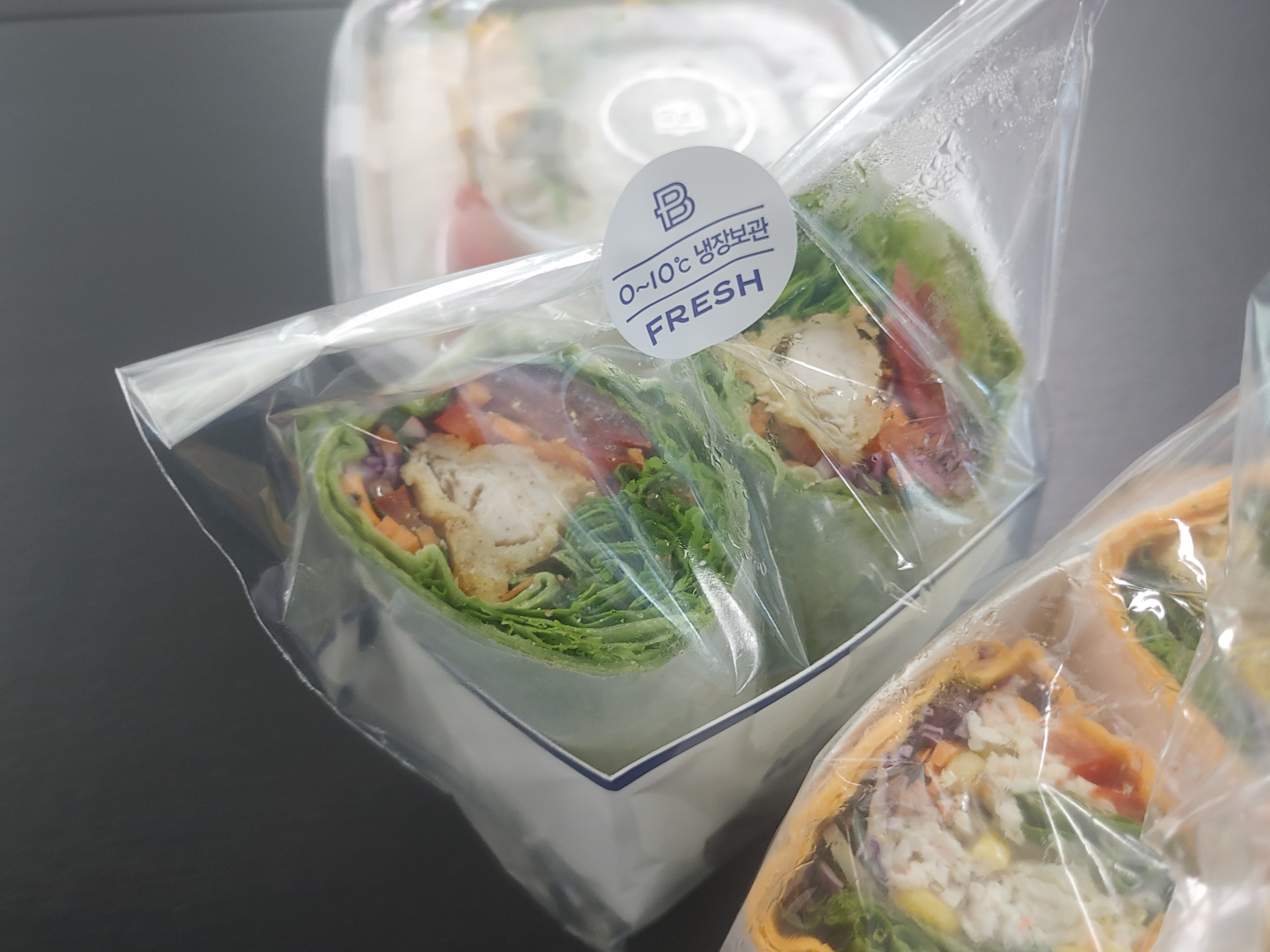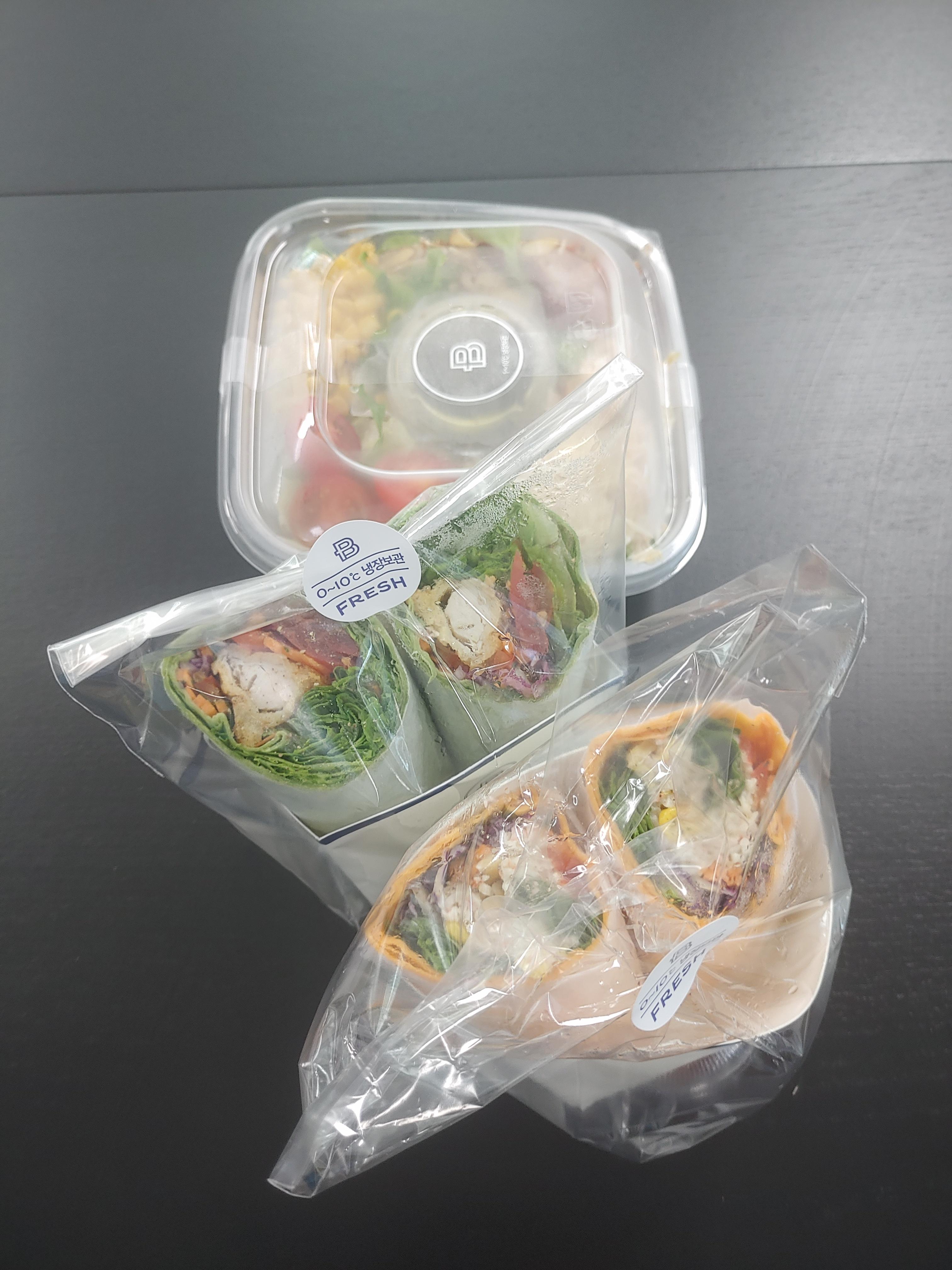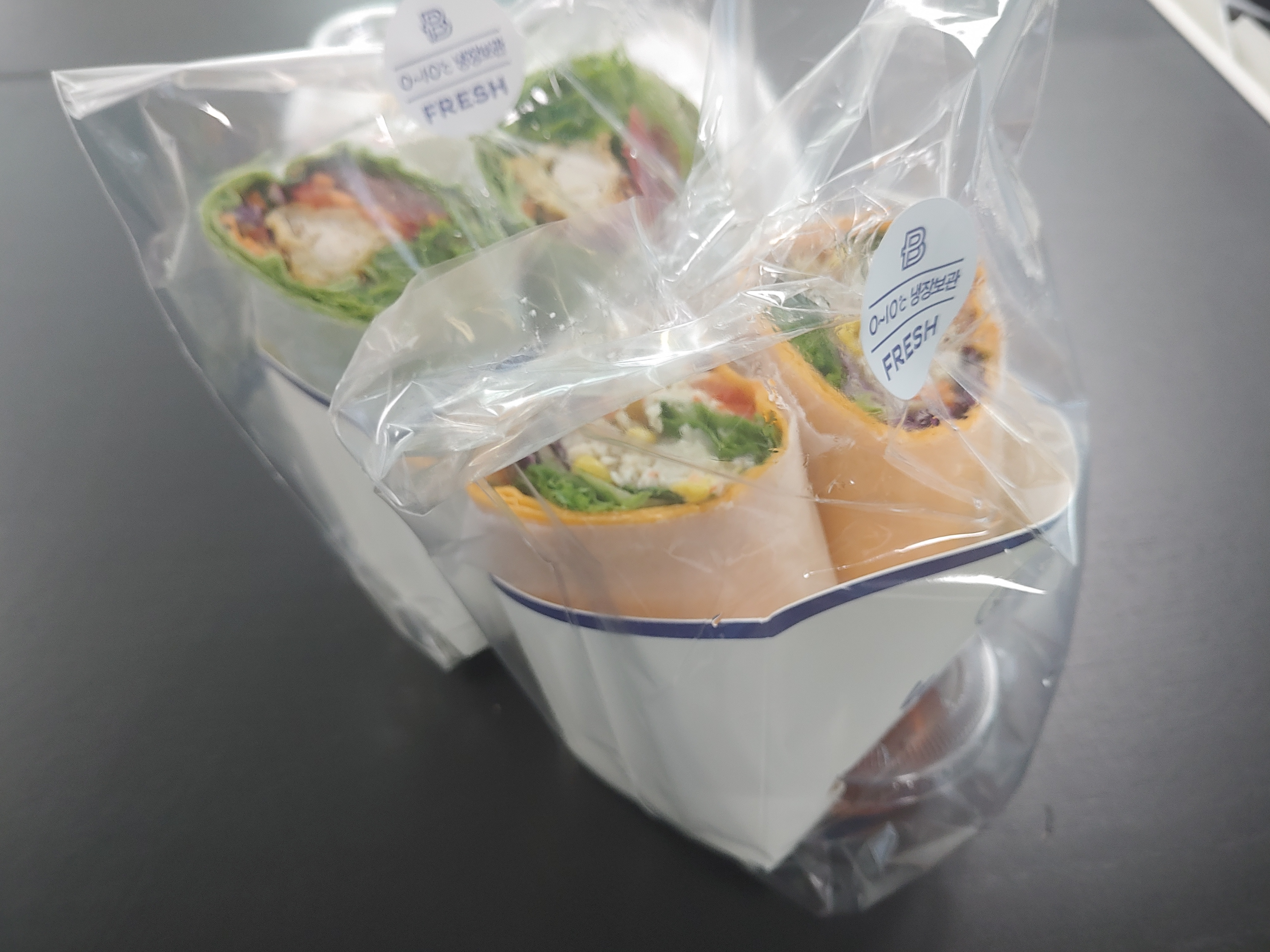 샌드위치는 일반적인 샌드위치랑 사진으로 보신 샐러드 랩이 있더라구요. 뭔가 샐러드 랩은 샌드위치보다도 부담없이 먹을 수 있을 것 같아서 가져왔습니다 ㅋ 2가지 종류인데 2종류 모두 가져왔습니다.