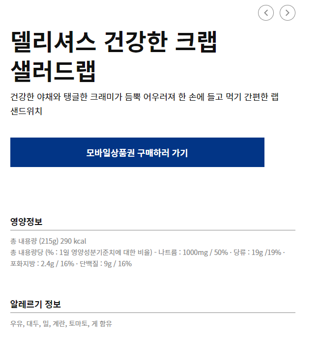 샌드위치중에서 델리셔스 건강한 치킨커틀렛 샐러드랩 그리고 델리셔스 건강한 크랩 샐러드랩이라고 있어서 샐러드가 조금 부족한듯 하여 부식으로 사왔던 이야기를 간단하게 담아보려고 합니다.