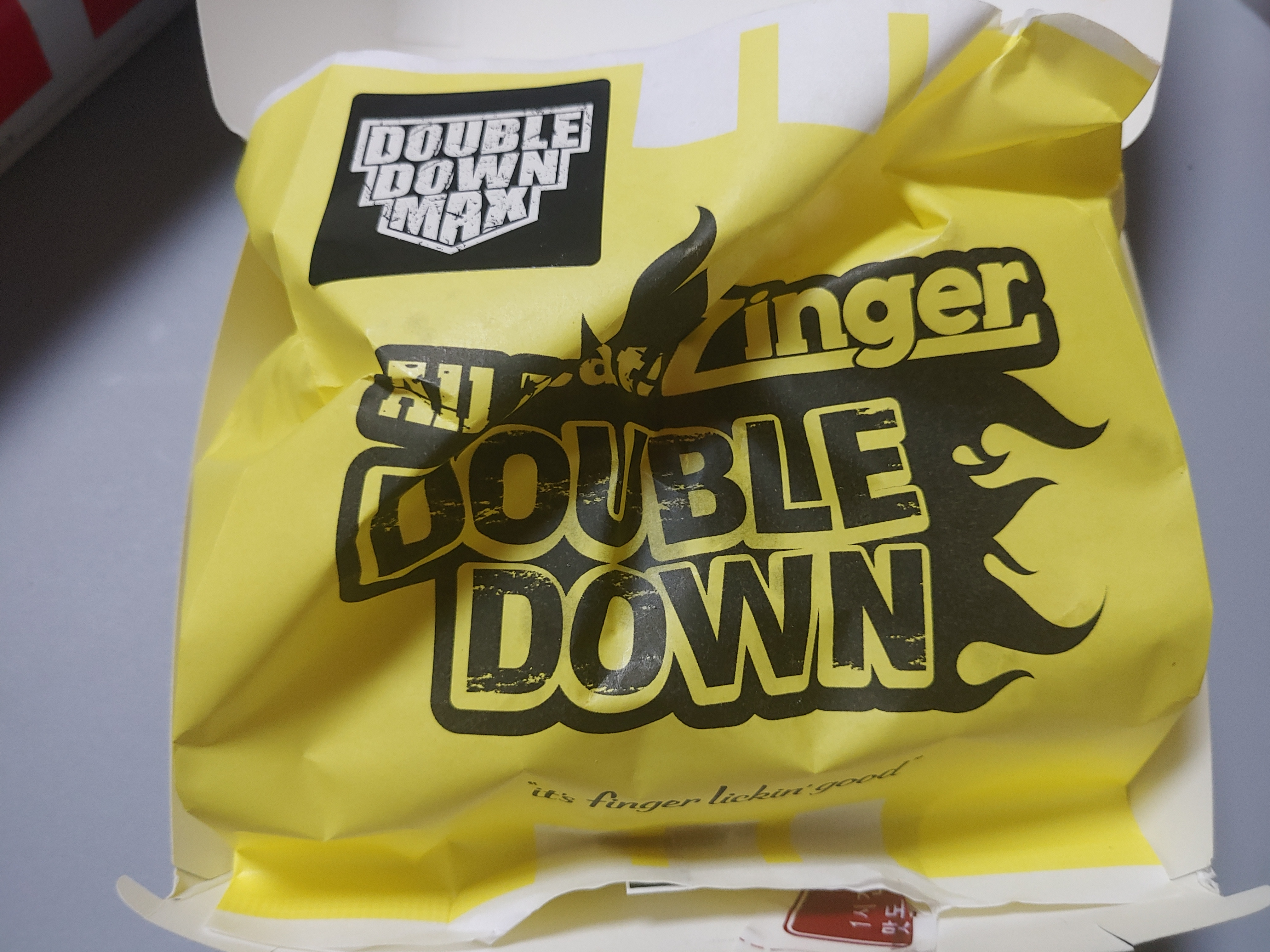 이제 주문한 블랙라벨더블다운맥스를 맛있게 먹어본 후기를 담아보려고 하는데요. 일단 이 버거는 기존의 깅거더블다운맥스에 비해서 확실히 업그레이드가 되었어요 !! 예전에는 치킨통살버거로 해서 안의 패티는 치즈와 곁들이는 느낌이었다면 이번에는 통삽겹 베이컨이 들어가면서 !! 패티까지 어마어마 해졌다는 느낌을 딱 받았는데요.