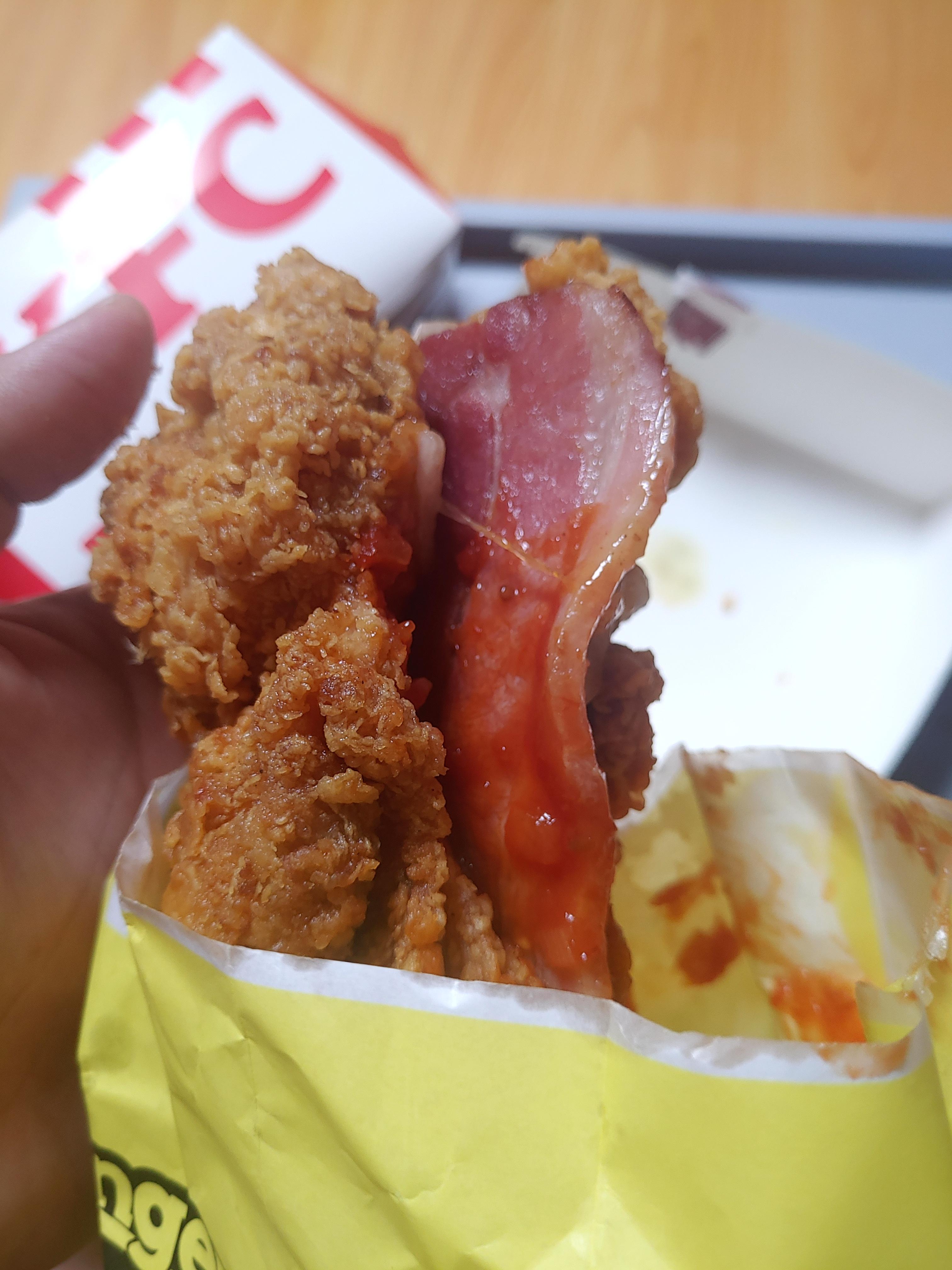 일단 기본적으로 KFC의 블랙라벨이라는 라인업은 기존 KFC 버거와 치킨에 비해서 닭다리 통살 필렛으로 만들어서 부드럽다는게 특징으로 하고 있기도 하고, 그 블랙라벨에 더해서 통삼겹 베이컨이라는 어마어마한 조합으로 만들어서 맛이 없을 수 없겠구나 하고 주문을 했습니다 !!