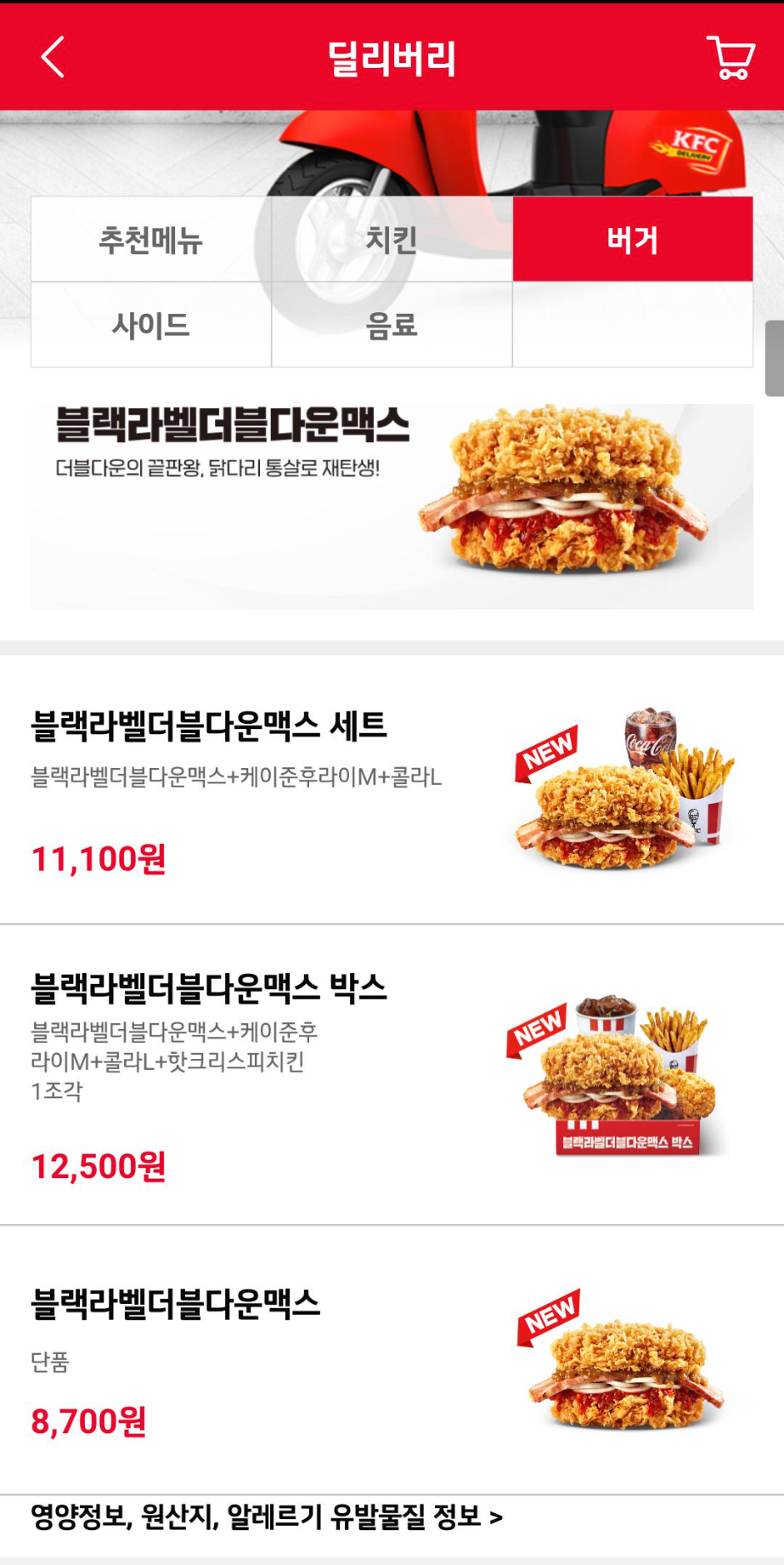 1. 블랙라벨더블다운맥스 딜리버리 가격 및 칼로리 영양정보