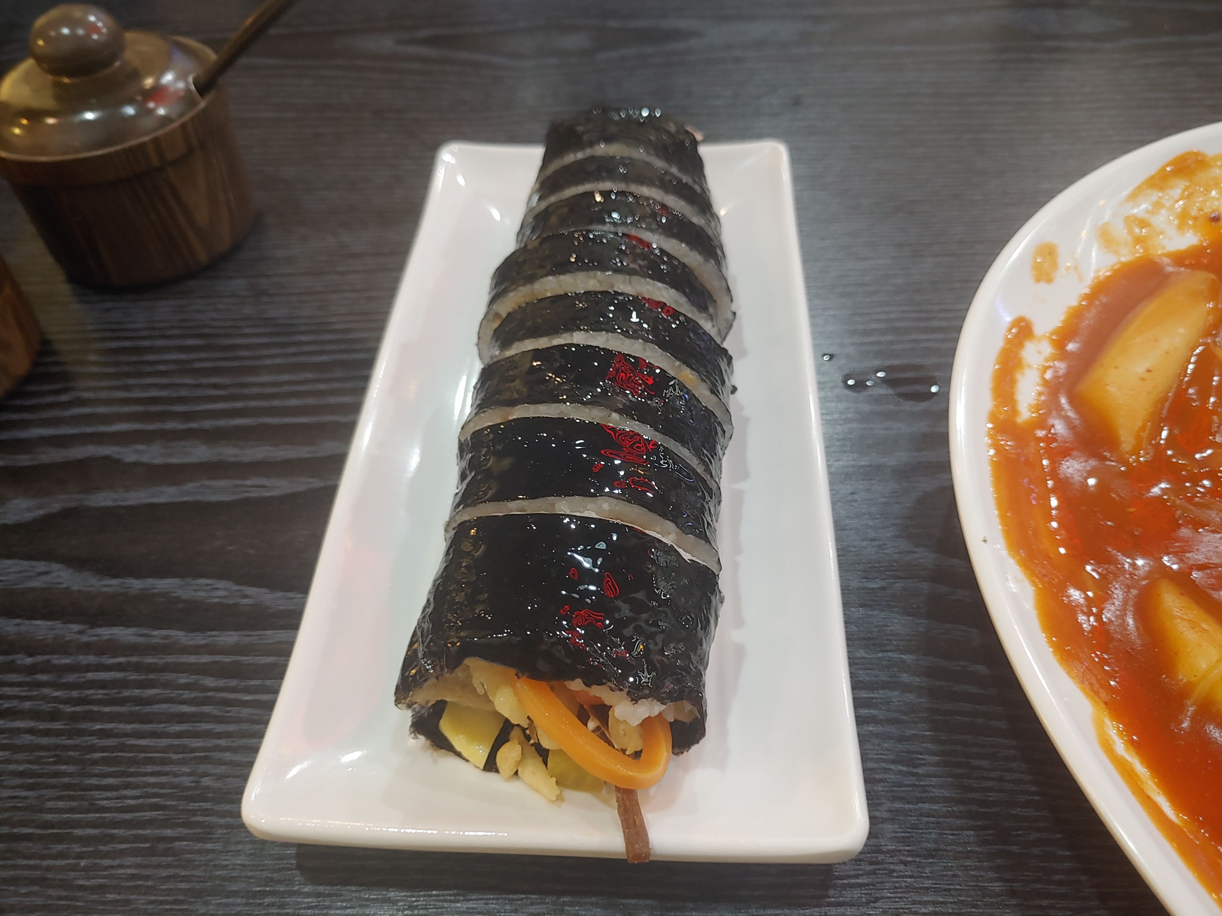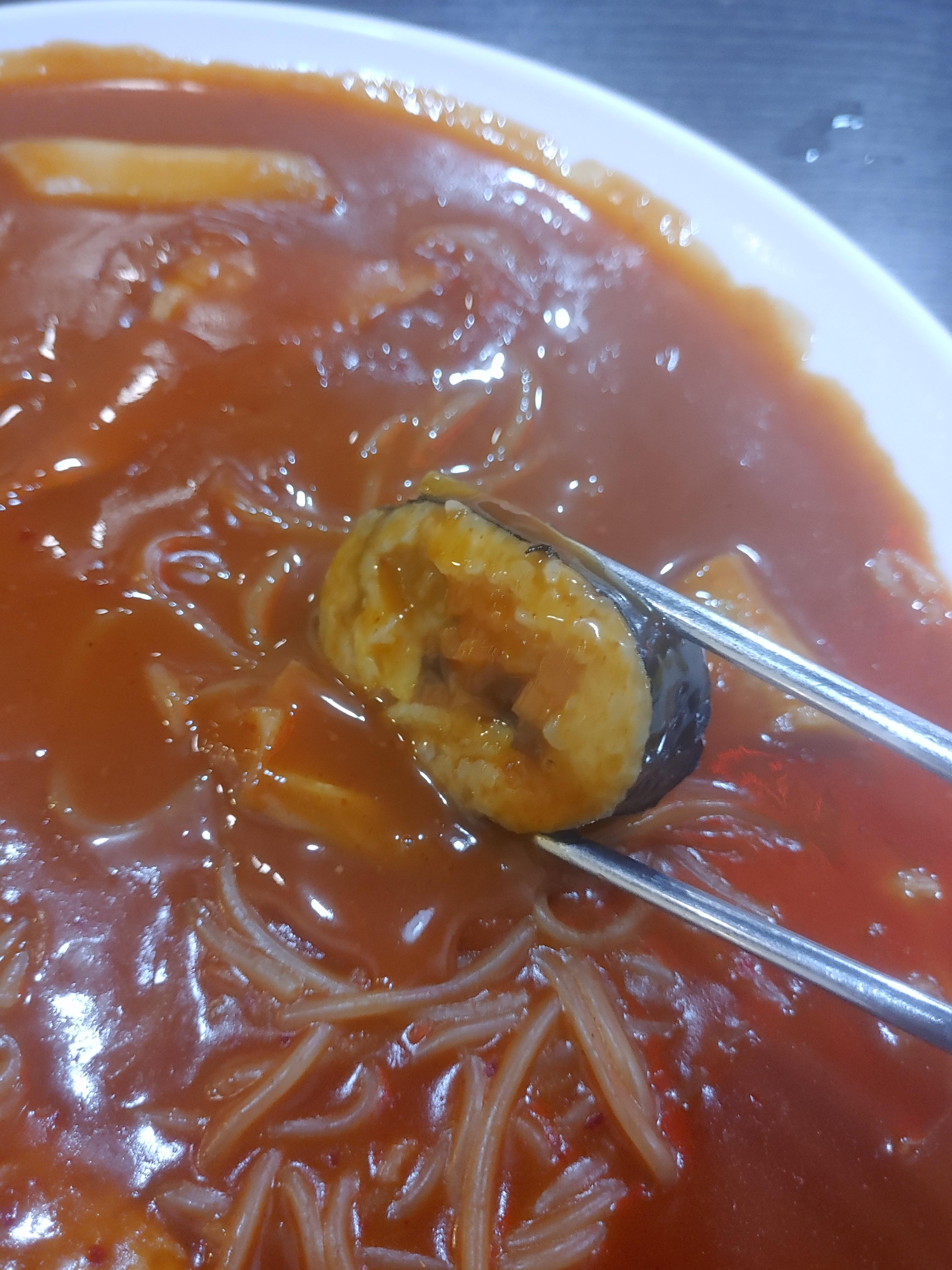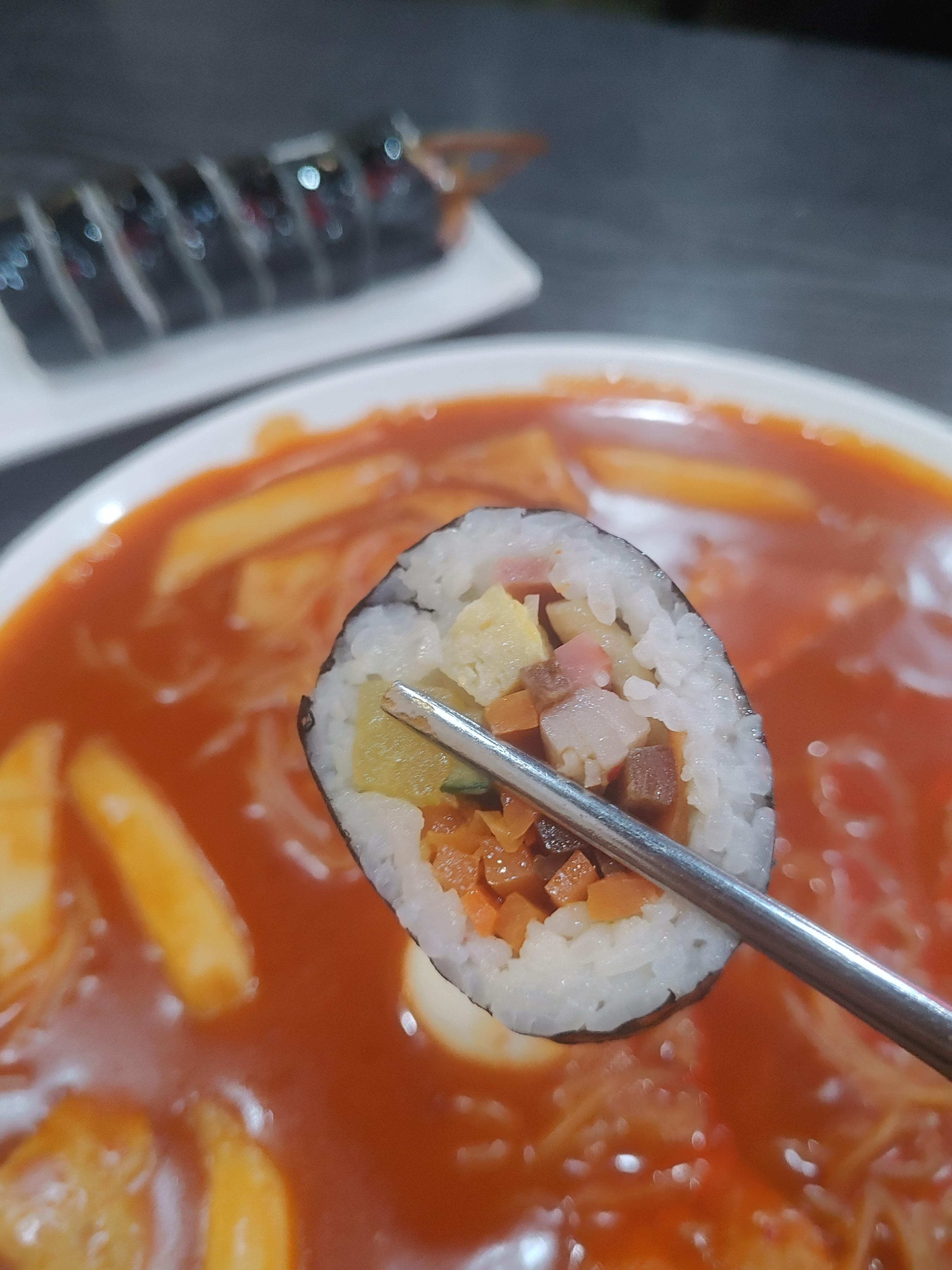 일단 속이 튀김이... ㅎㅎ 뭔가 여러가지 다른 음식들과 비교할 수 없는 특색이 있는 느낌이었는데요. 김밥이 이런맛이? 오 맛있다 이런 느낌으로 먹어봤습니다 ^^ 이건 쫄볶이에 안찍어먹어도 될만큼 맛있었네요