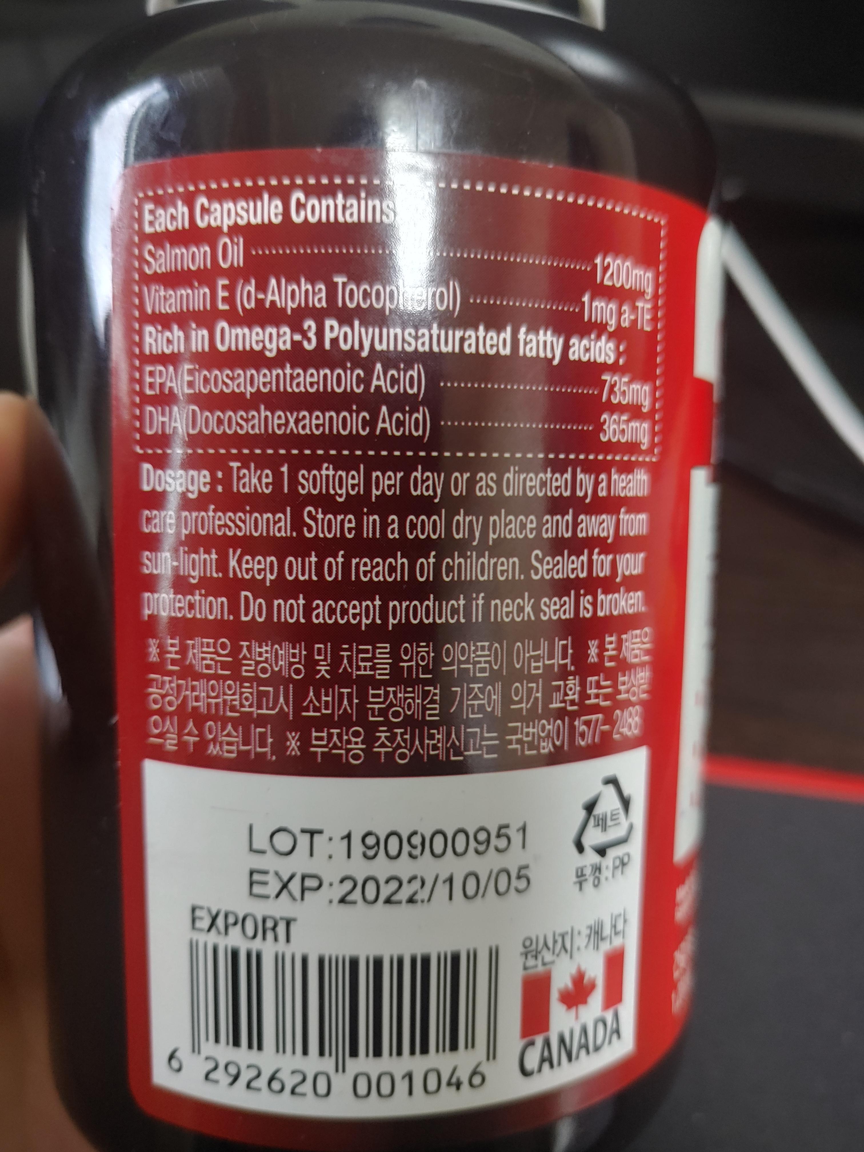 여러가지 커뮤니티에 나온 이야기들 정리해보면 혈액 순환 개선으로 여러가지 효과들이 있고, 안구건조에 효과도 있고, 손발차가운것들도 좋아진다고 하는데..... 제가 이런 것들이 좀 둔감해서 그런지 잘 모르겠더라구요. 그래도 부작용이 없는 보충제이기도 하고, 생선 및 견과류같은 좋은 기름들 먹을 기회가 적은 분들께는 좋다고 하니까 꾸준하게 계속 먹어보려고 하고 있는데요.