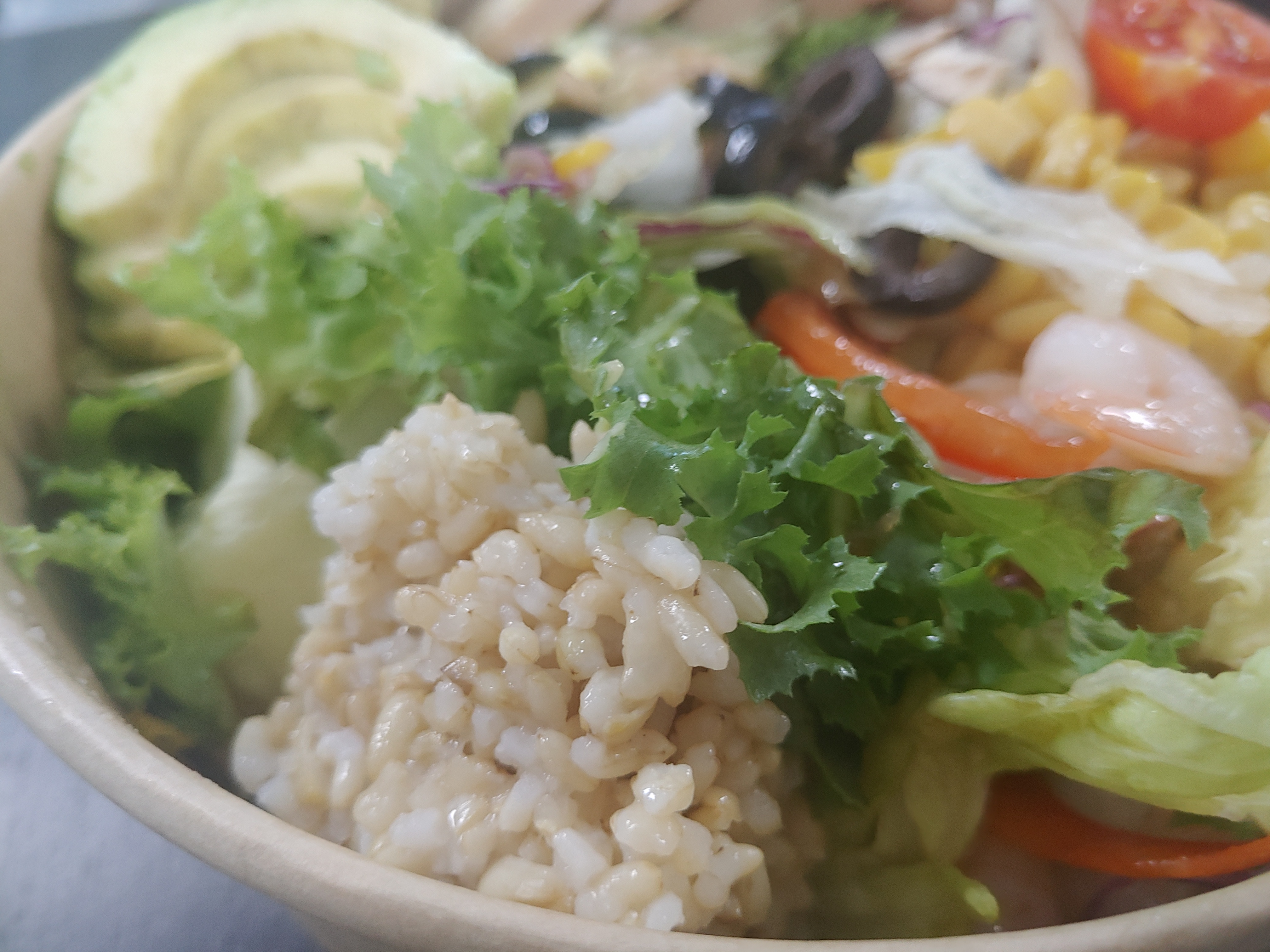 새우&올리브 샐러드. 일전에 먹었던 파리바게트의 샐러드에 비하면 뭔가 더 한끼 제대로 먹는 느낌도 들었구요. 일단 비쥬얼도 정말 괜찮았는데요. 보시면 위에 계란과 새우 그리고 아보카도와 밥도 살짝 들어가 있어서 구성자체가 굉장히 좋다고 느껴졌어요