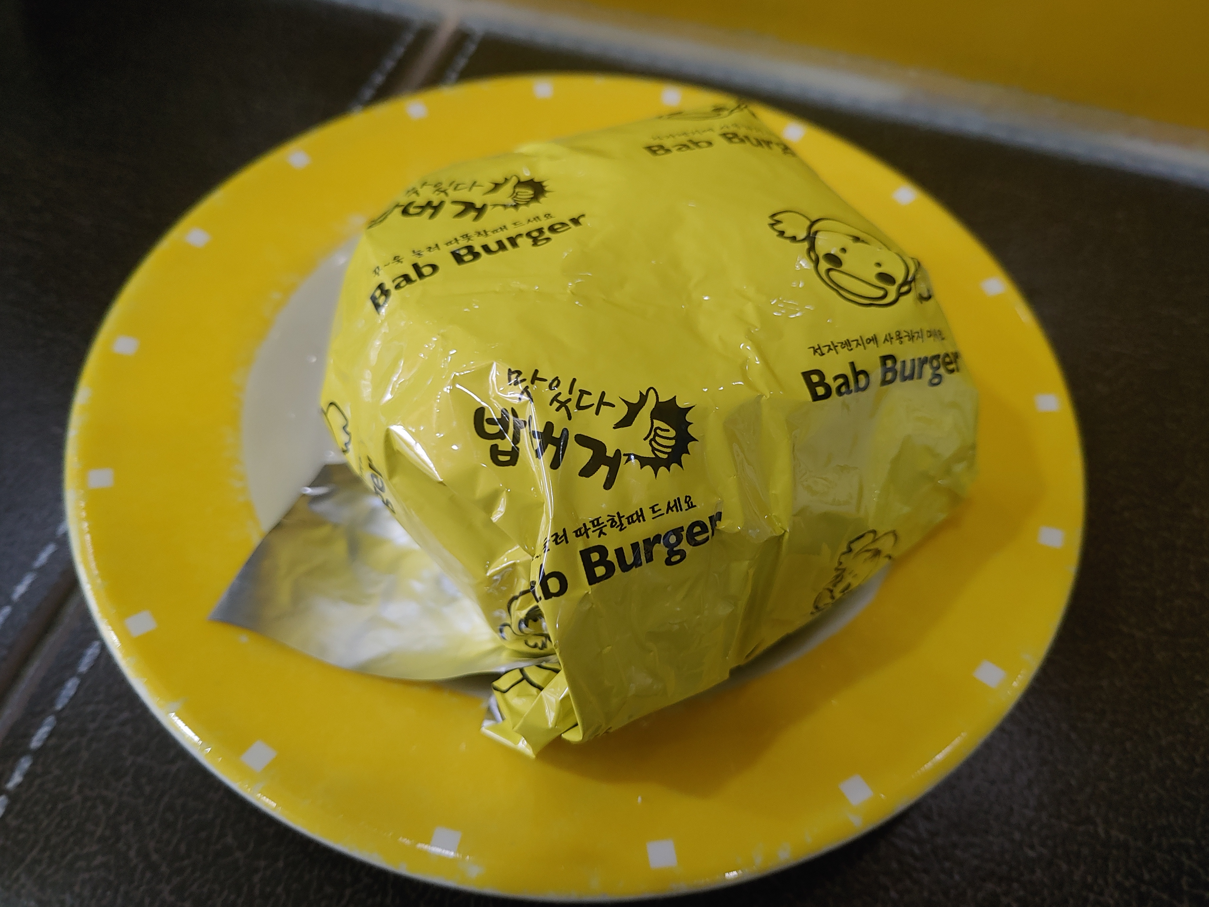 저는 그리고 밥버거 처음 나오면 눌러주고 평평하게 펴서 먹으라고 배워서 ㅎㅎ 나오면 살짝 한번 눌러주고 먹기 시작을 합니다. 가운데 속들이 조금 더 잘 섞이는 기분이랄까요 ^^;;