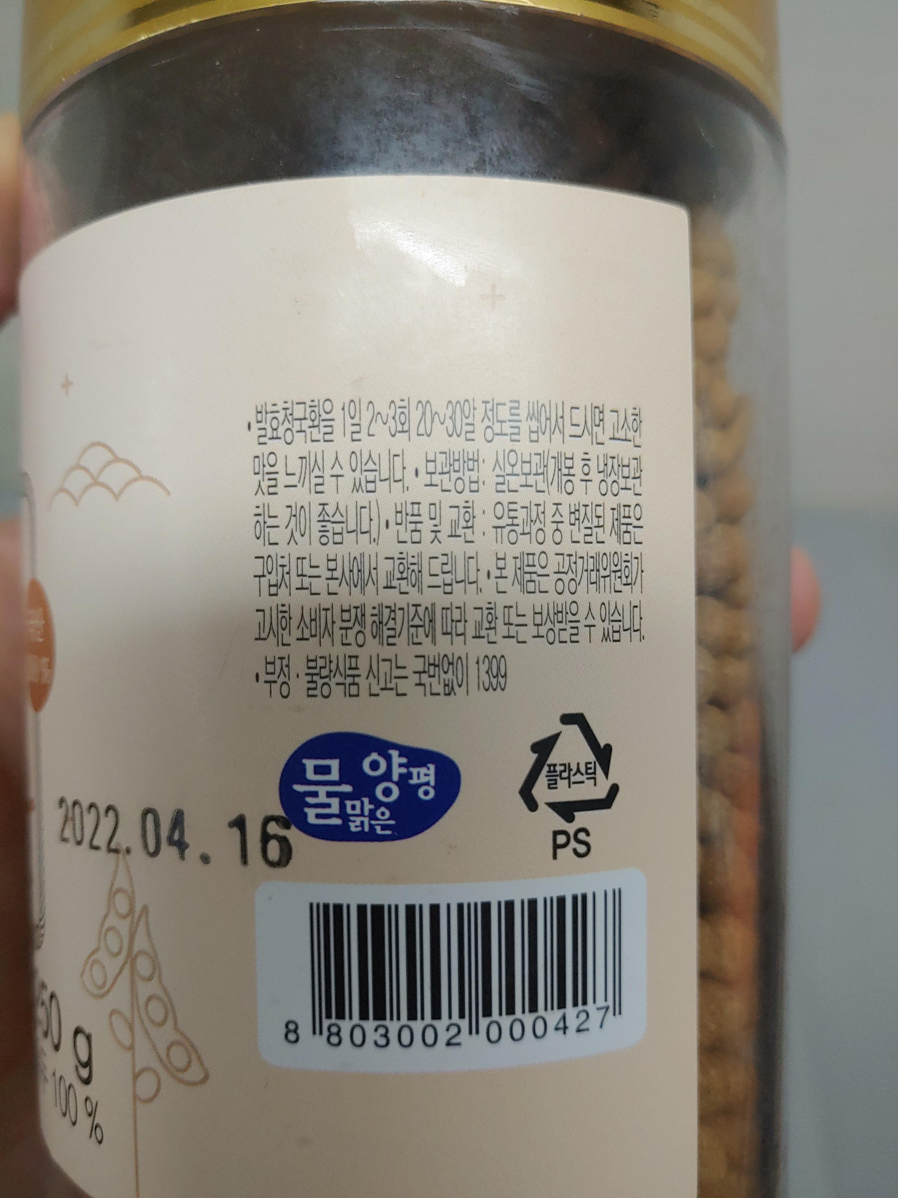 그리고 건강기능식품이라고 안써있는 것으로 보아서 일반 식품으로 취급되는 제품이라 본인의 몸에 맞는다면 효능이 있을 수도 있고, 또 그냥 청국장을 가루 또는 환으로 먹는 것 정도 수준이라는 점인데요. 건강기능식품으로 인정받는 것은 아니기 때문에 이 부분은 참고를 하시는 것도 필요하실 듯 합니다.