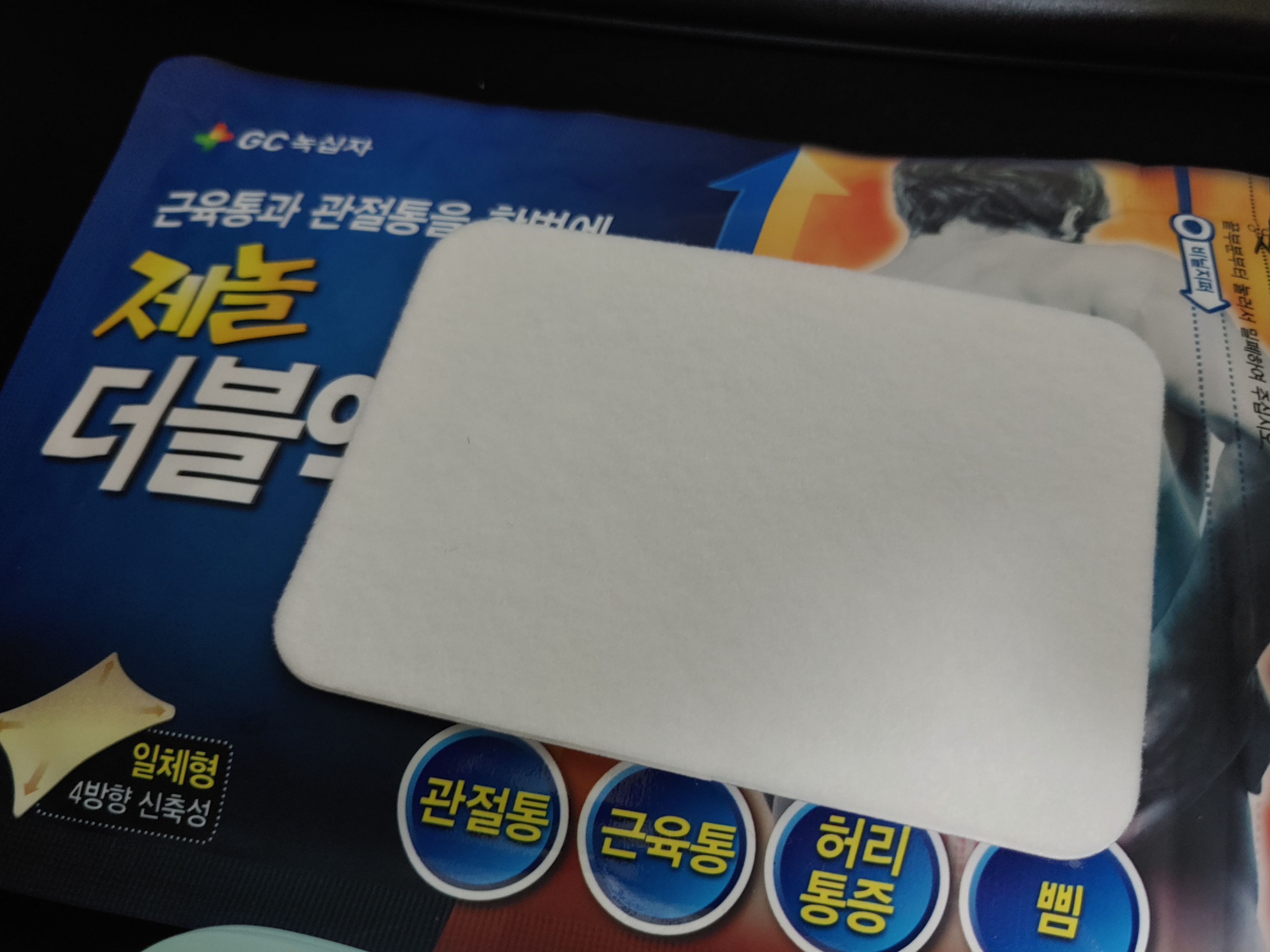 생각보다 파스가 크지는 않아요. 오히려 좀 작다고 느껴질 정도 랄까요? 사진들 보면 뭔가 굉장히 앙증맞은 느낌의 사이즈의 파스였어요 ㅋㅋ 그래서 그런지 처음 붙일 때는 2개를 붙이기도 했는데요. 오히려 작아서 그런지 집중적으로 아픈 부위만 딱 맞춰서 붙이기는 좋은 것 같더라구요.