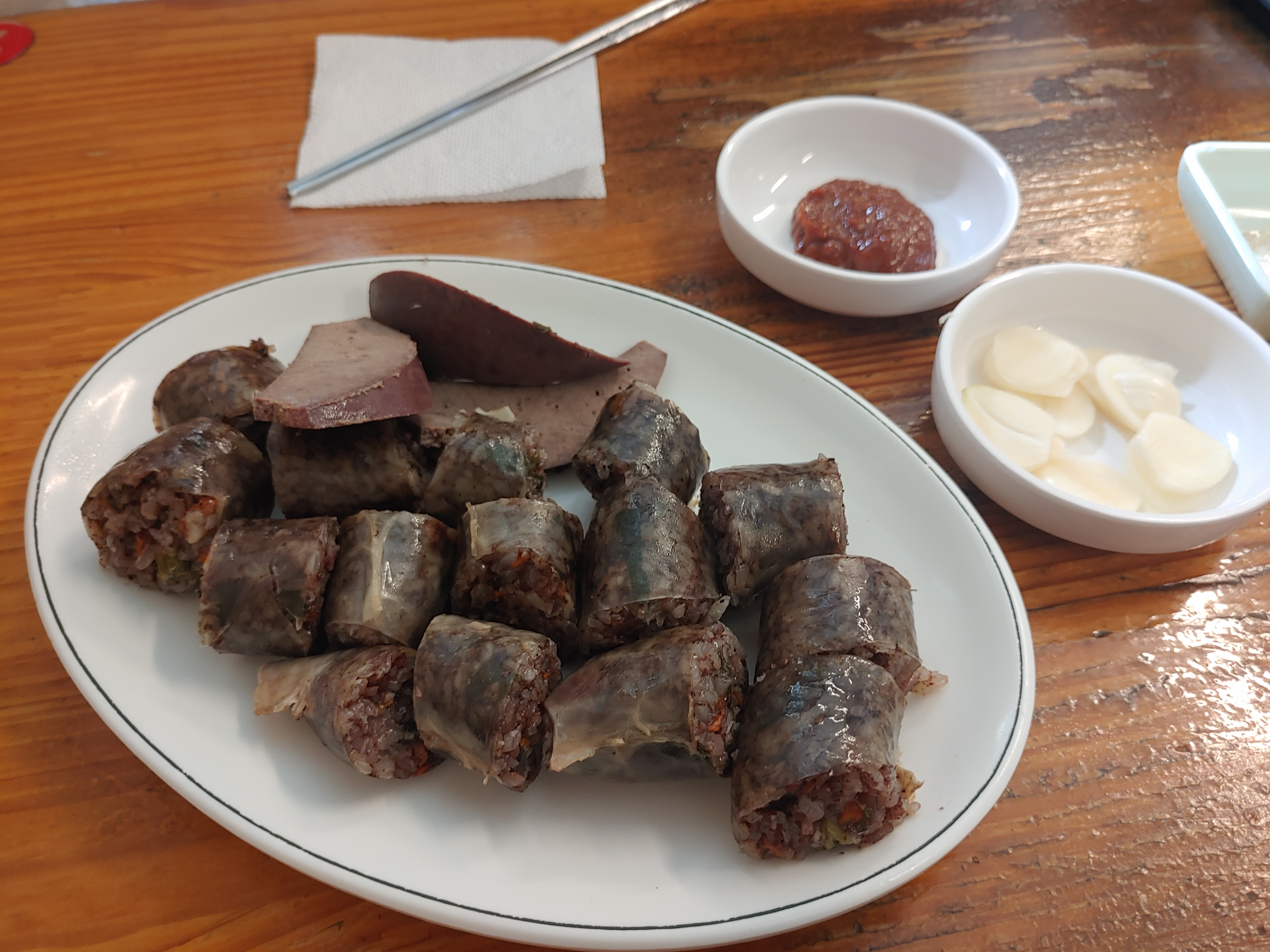 시장에서 파는 싸고 맛있는 순대와 다르게 부드럽기도 하고, 전체적으로 순대 특유의 맛이 정말 살아있는 느낌이랄까요 ㅋ 그만큼 맛있기는 하더라구요 !!
