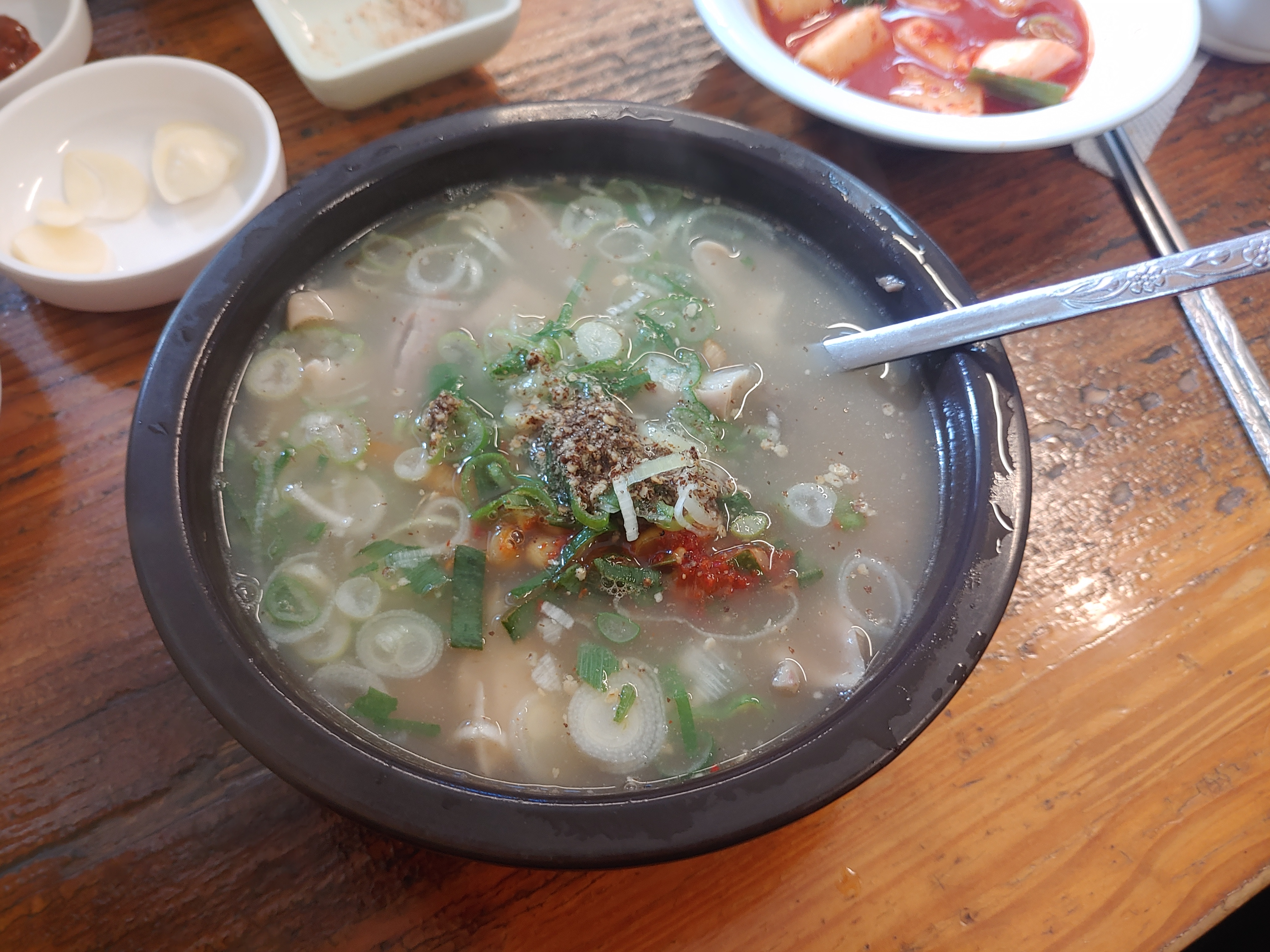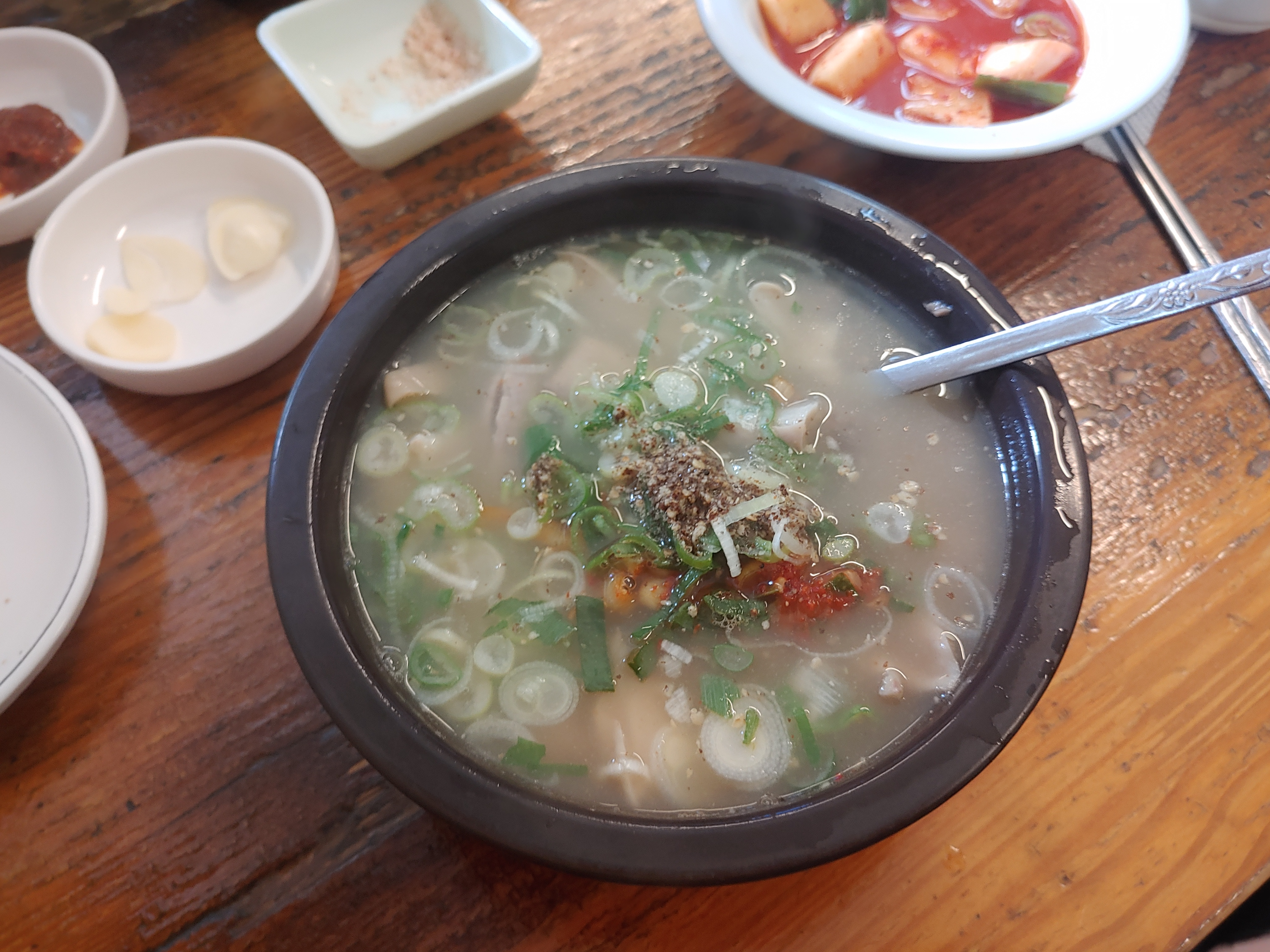 그리고 순대국밥!! 이렇게 수저가 들어가 있는것이 특징인데요. 국밥에는 밥이 같이 들어있어요. 다른 곳들은 밥이 따로 나오는 곳들도 있는데 이렇게 밥이 같이 들어가 있어서 처음에는 엄청 놀라기도 했었는데요. 뭔가 같이 딱 들어가 있는 스타일이 여기랑 몇몇 곳들 순대국 먹으러가면 있더라구요.