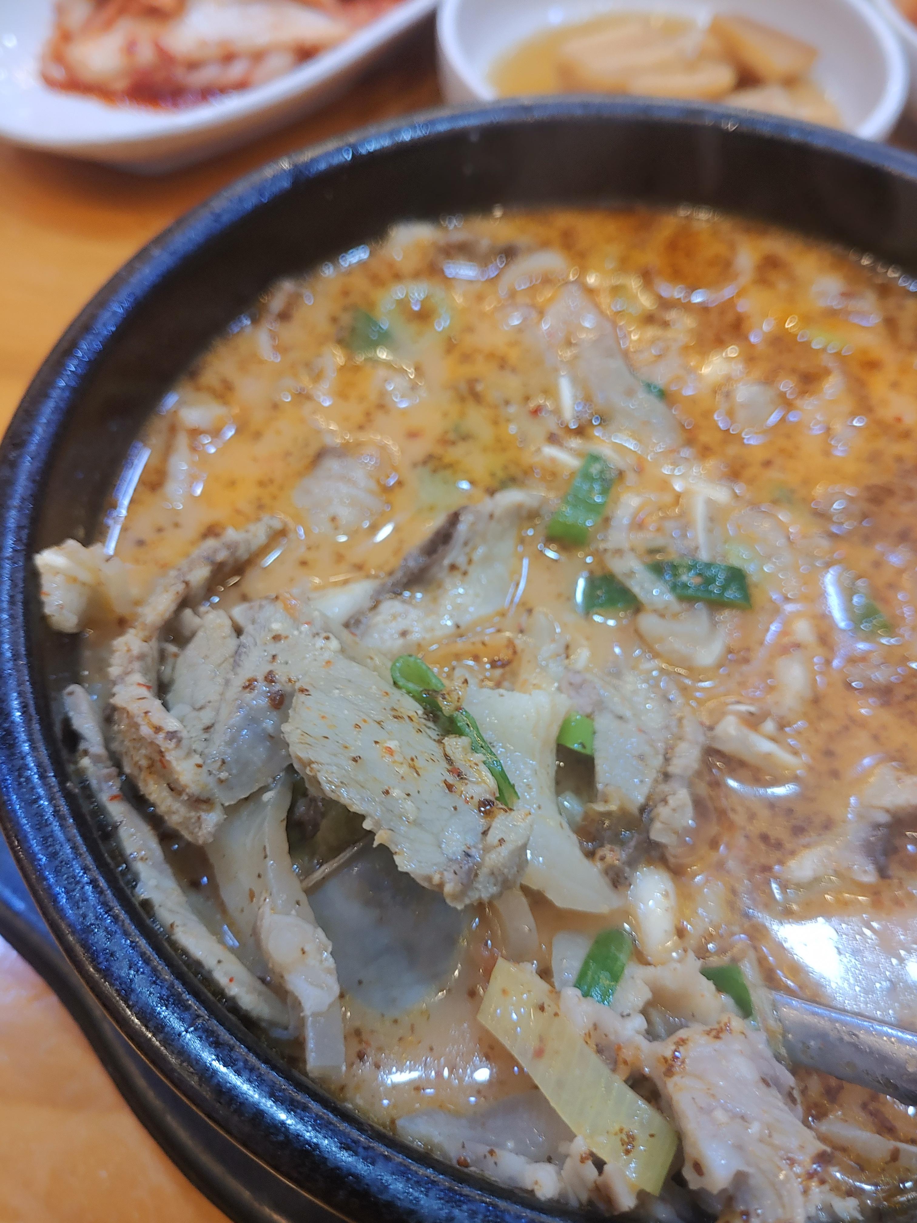 가격대는 메뉴판 사진을 깜박했는데 순대국 7천원 정도에요. 특순대국은 8천원. 저는 특 순대국으로 주문을 했어요. 특으로 주문을 하면 국물이나 고기도 더 많아지고 넉넉해지니까요 ㅎㅎ 넉넉하게 먹기 위해서 특 순대국으로 주문을 했습니다.