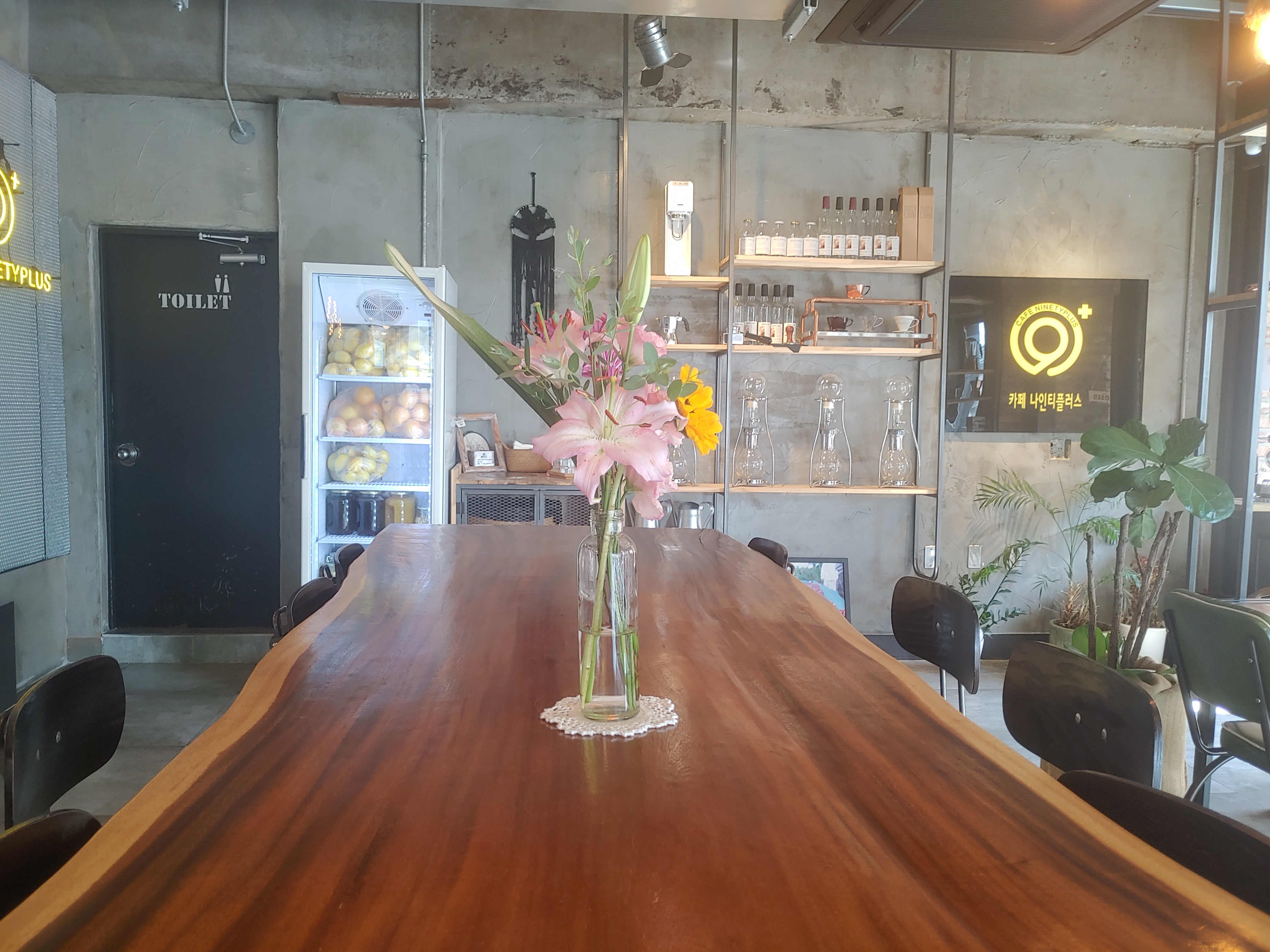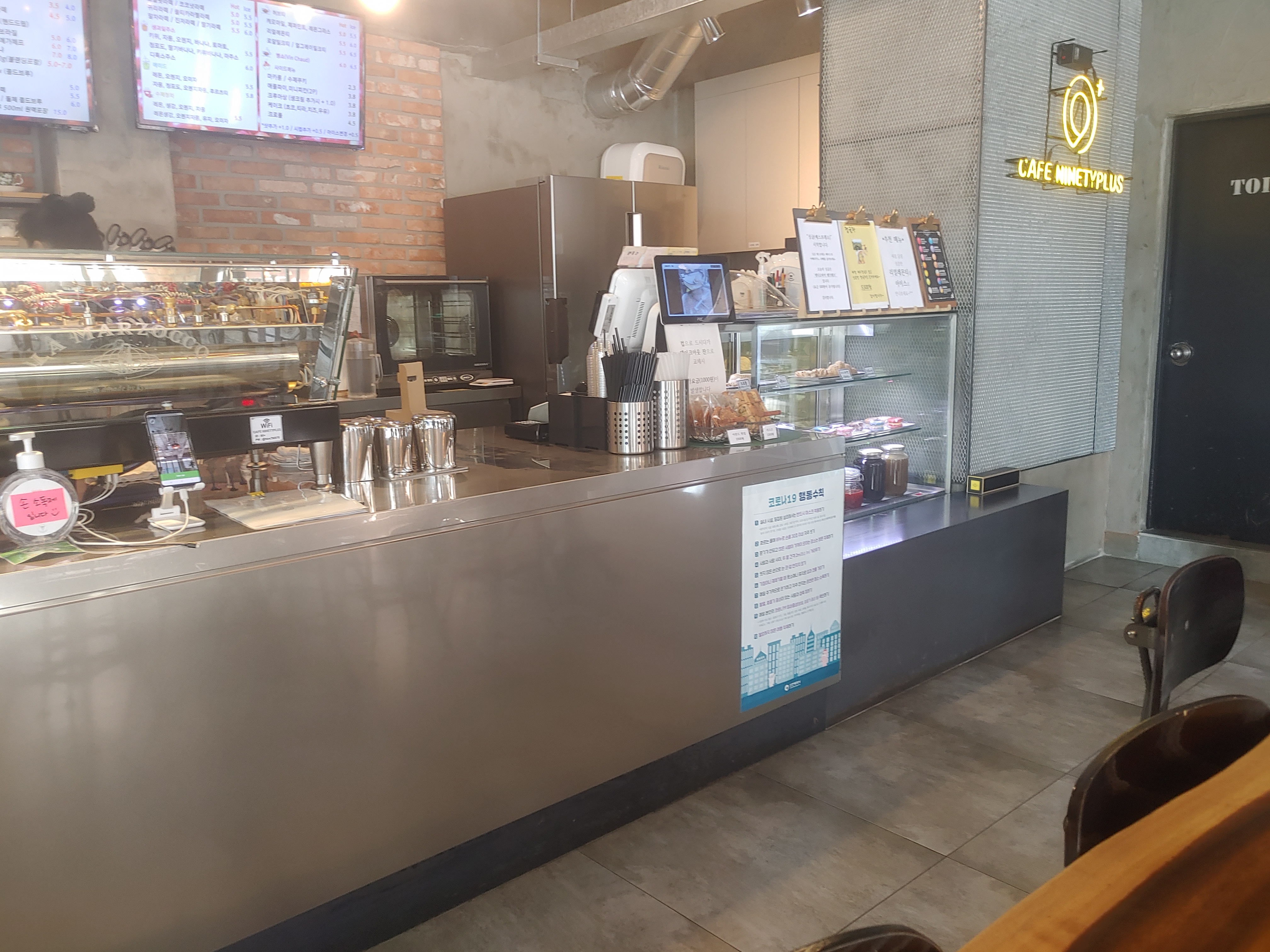 카페이름인 나인티 플러스는 커피 등급 중 상위 0.1%에 속하는 커피등급을 이야기 한다고 하는데요. 커피의 맛과 향이 100점 만점에 90점이 넘는 커피를 이야기 한다고 해요. 그리고 여기는 원두를 파는 곳이기도 해요. 보니까 원두 사러도 오시는 분들이 꽤 되시는 것 같더라구요.