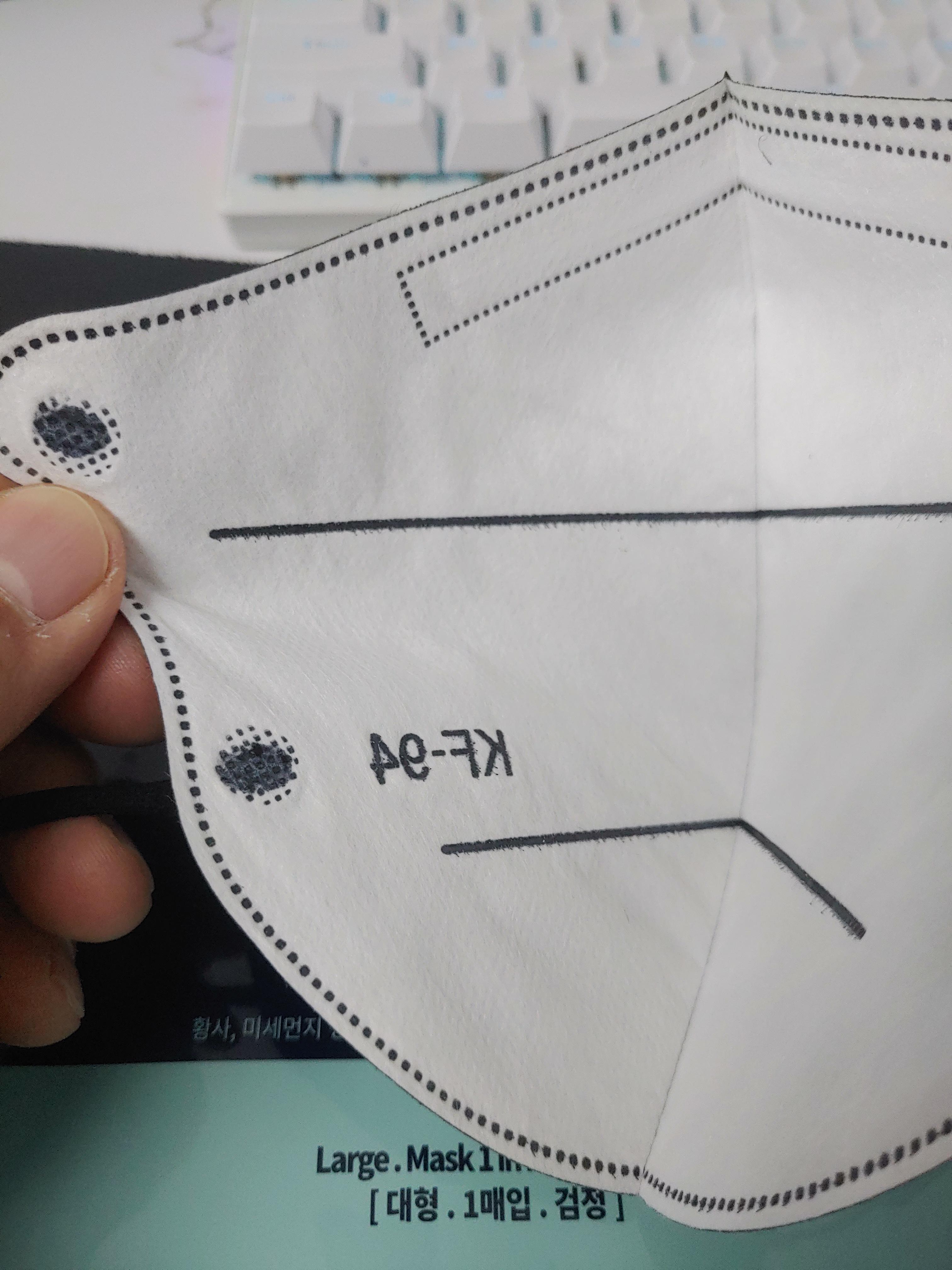 다른 마스크에 비해서 조금 크게 마스크를 쓰시는 분들이라면 확실히 장점이 있는 것 같아요. 몰론 마스크가 너무 커서 작은 사이즈를 찾는 분들이라면 조금 턱쪽을 접어서 사용을 해야될 수 있는 마스크 같아요.