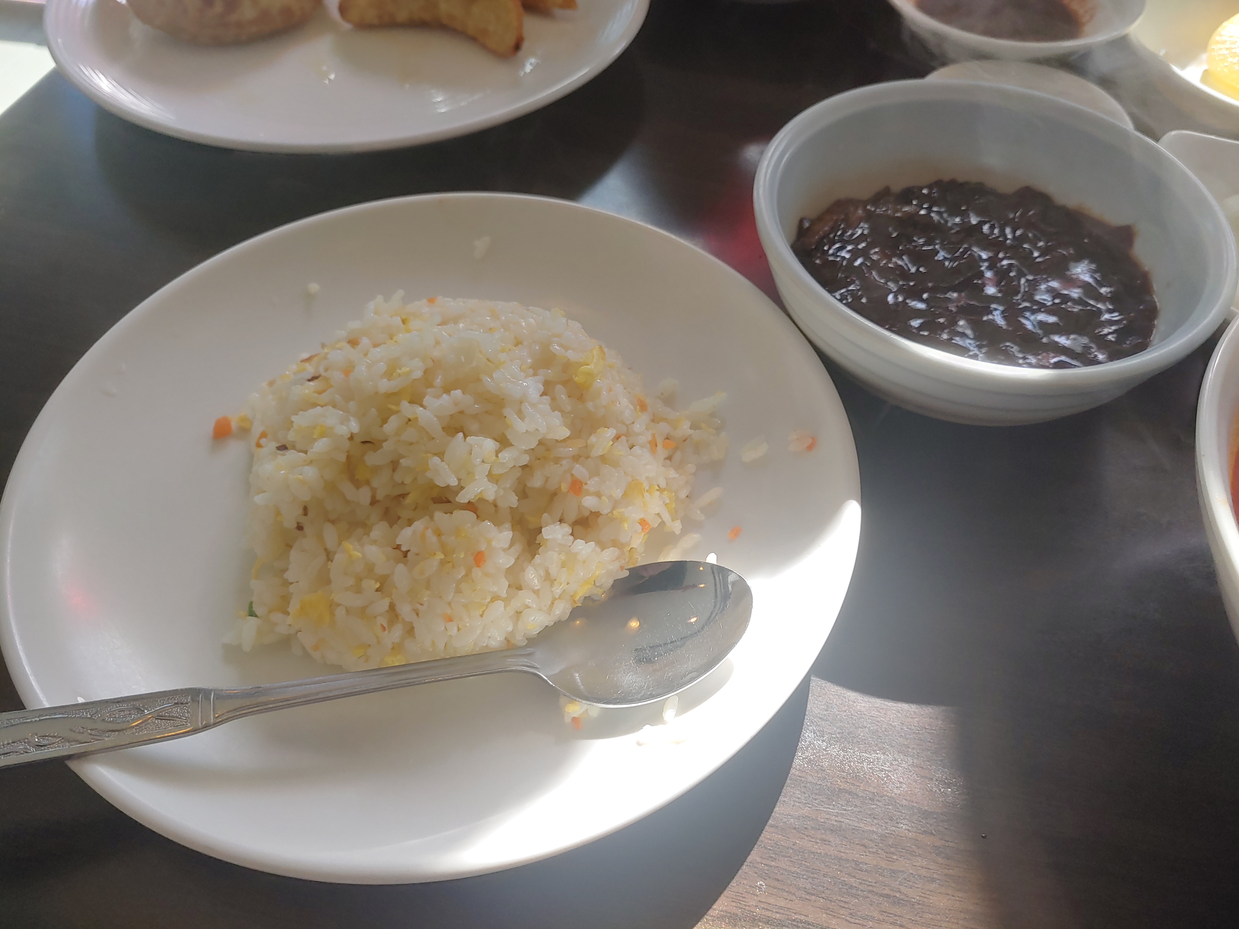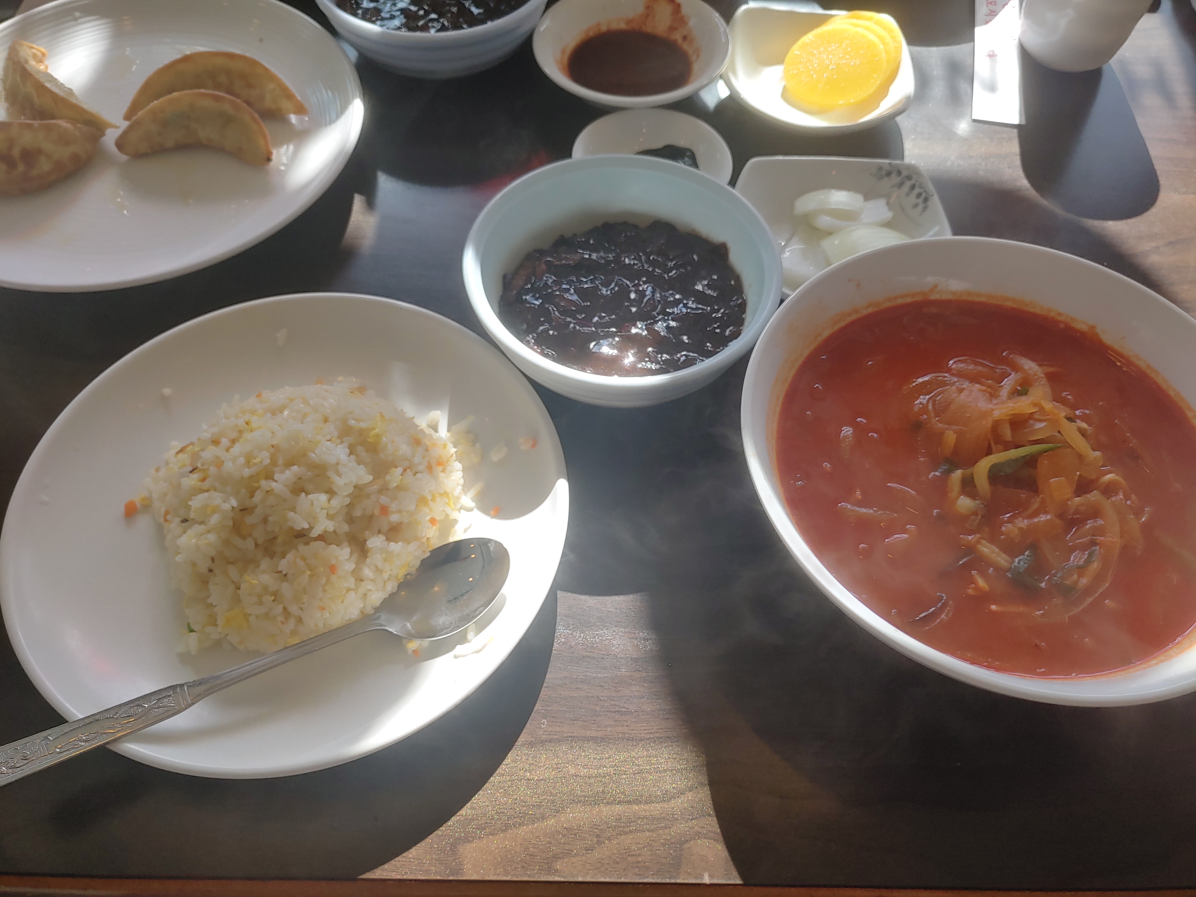 볶음밥은 일반 볶음밥으로 나오는 수준까지는 아니지만 가볍게 볶아져서 짜장과도 잘 어울리고, 짬뽕에 같이 먹어도 맛있는 수준을 볶음밥입니다. 이렇게 짬뽕밥에 볶음밥이 나오는 곳들이 흔하지 않은데 이렇게 나오니까 확실히 특색은 있습니다. 다만 좀 느끼한 부분은 ㅎㅎ 짬뽕 국물이 잘 잡아주는 느낌이기도 합니다.