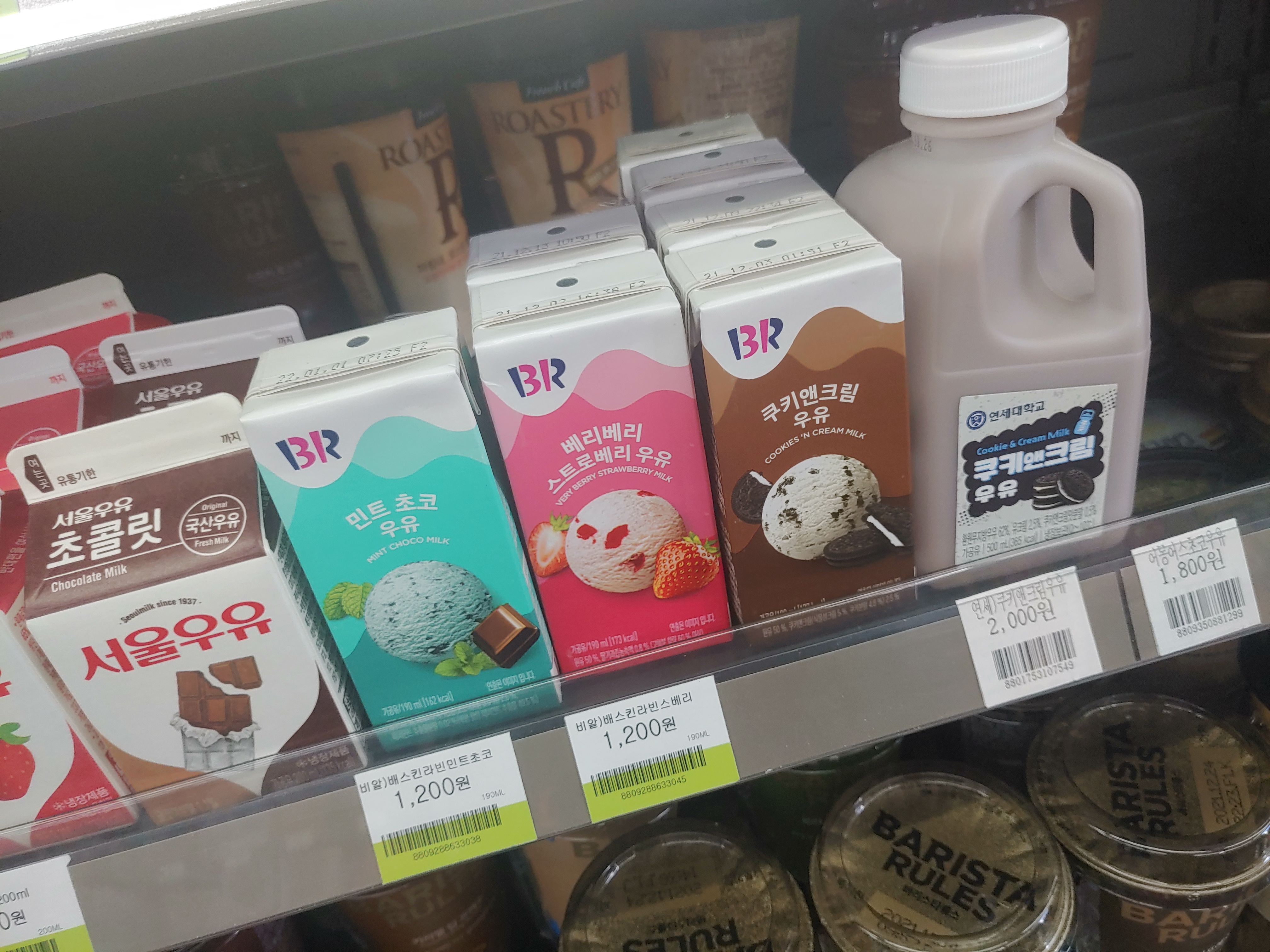 베라의 민트초코 우유!! 그리고 베리베리 스트로베리 우유!! 그리고 쿠키앤 크림 우유까지 있었습니다.