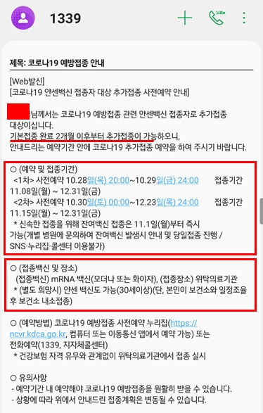 * 얀센 추가접종 (부스터샷) 문자 및 접종 안내