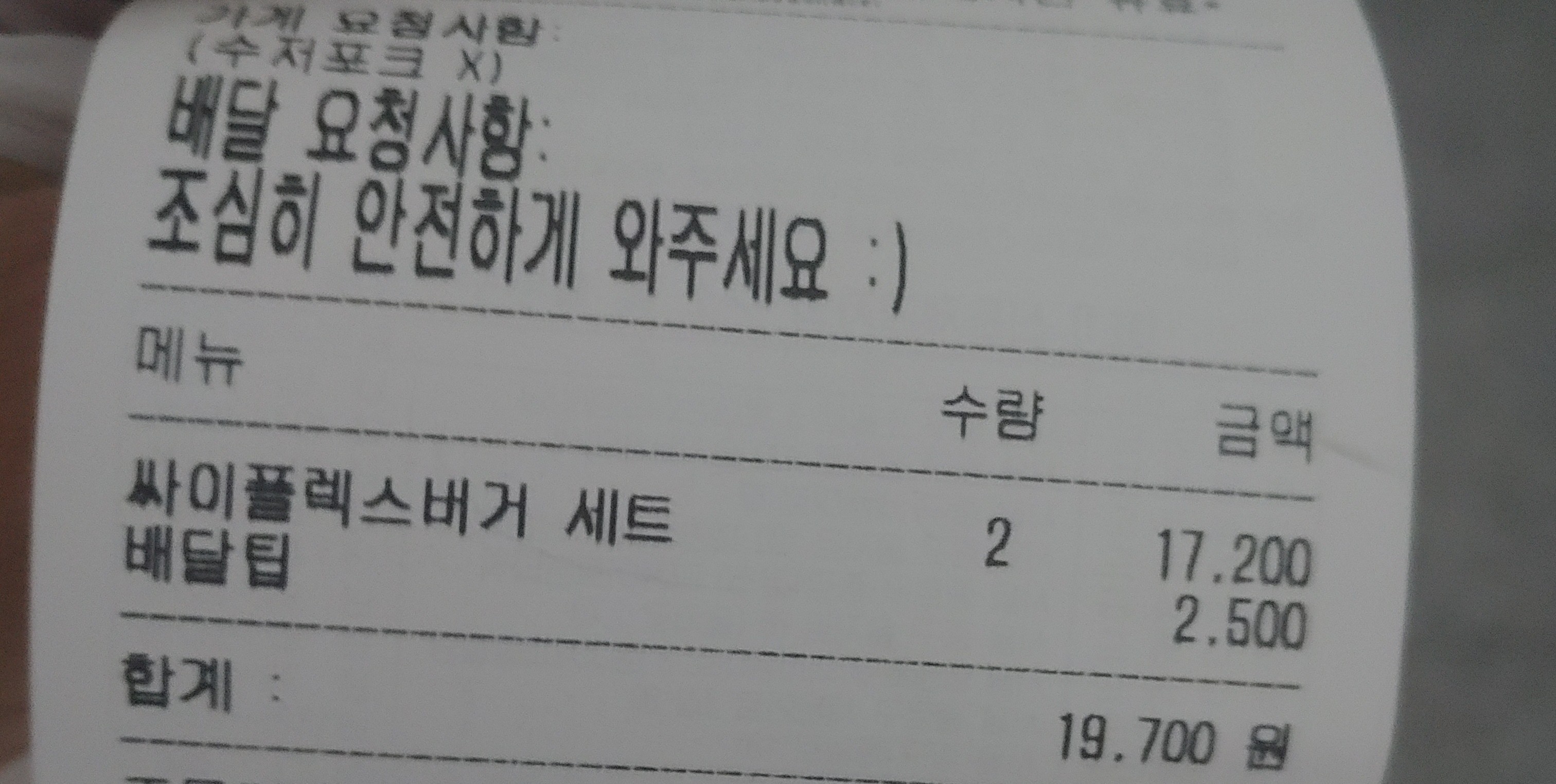 싸이플렉스 버거 세트는 금액은 8,600원이었습니다. 배민 배달 팁 2,500원이 별도구요.