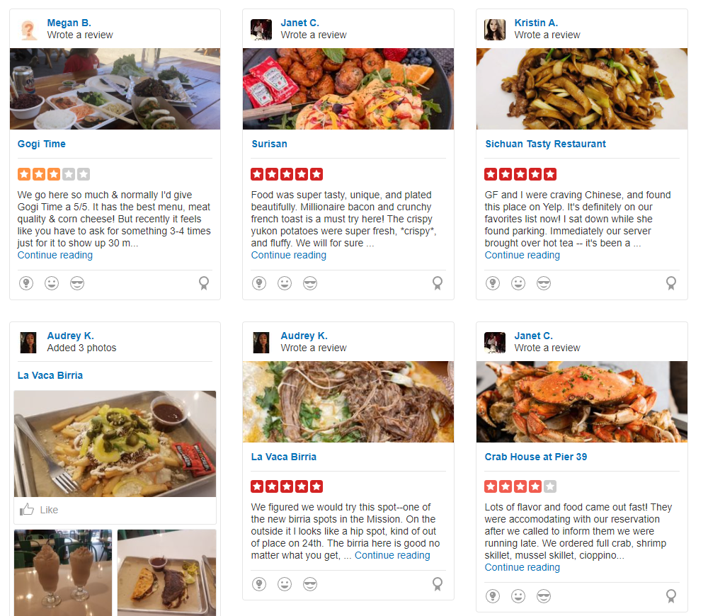 옐프는 미국에서는 미슐랭 가이드와 자갓 서베이등 맛집에 대한 내용을 앱 플랫폼으로 가져온 어플리케이션이라고 알려져 있는데요. 이와 비슷한 업체는 오픈테이블(OPEN)등이 있습니다. 미국에서 맛집을 검색하는 경우에는 옐프를 사용하는 방법과 주변 지역관련 업체를 추천해주시는 분들이 많으실 정도로 많은 분들이 사용하는 앱이기도 합니다. 또한 옐프의 장점으로는 그만큼 직접 가본 사용자들이 리뷰를 달고, 리뷰에 따라 방문하는 사람들이 그 지역 업체에 대한 정보를 얻을 수 있습니다. 따라서 그만큼 신뢰도가 높다고 알려져 있으며, 방문자들이 옐프에서 많은 정보들을 얻고 있습니다.