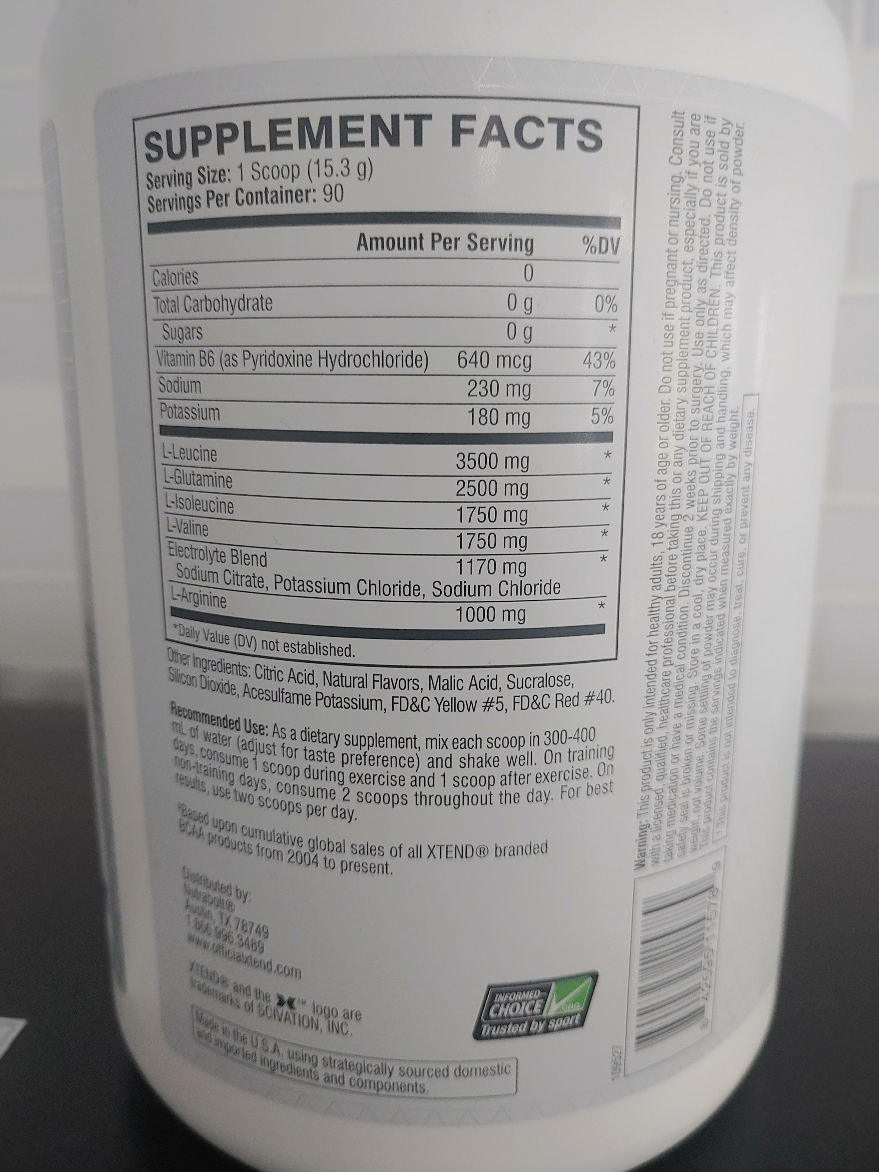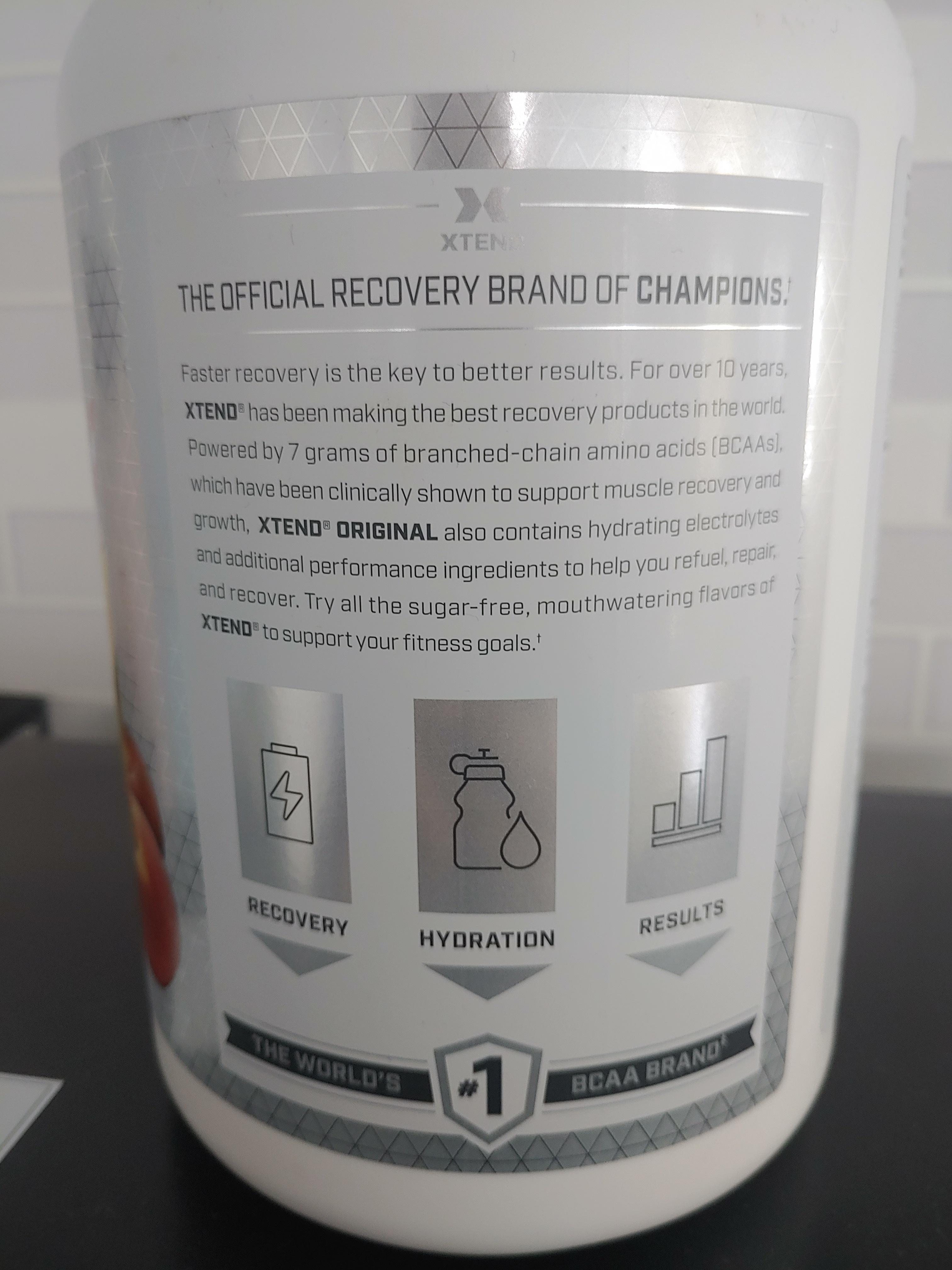 한글 제품명이 엑스텐드 BCAA 피치아이스티 이런 것 같더라구요. Xtend The Original BCAAs 라고도 하구요. 제품 특징으로는 무설탕이고 필수 아미노산이 함유되어 운동 전 후 스포츠 음료 분말 (가루) 형태로 나오는 것이라고 하구요.