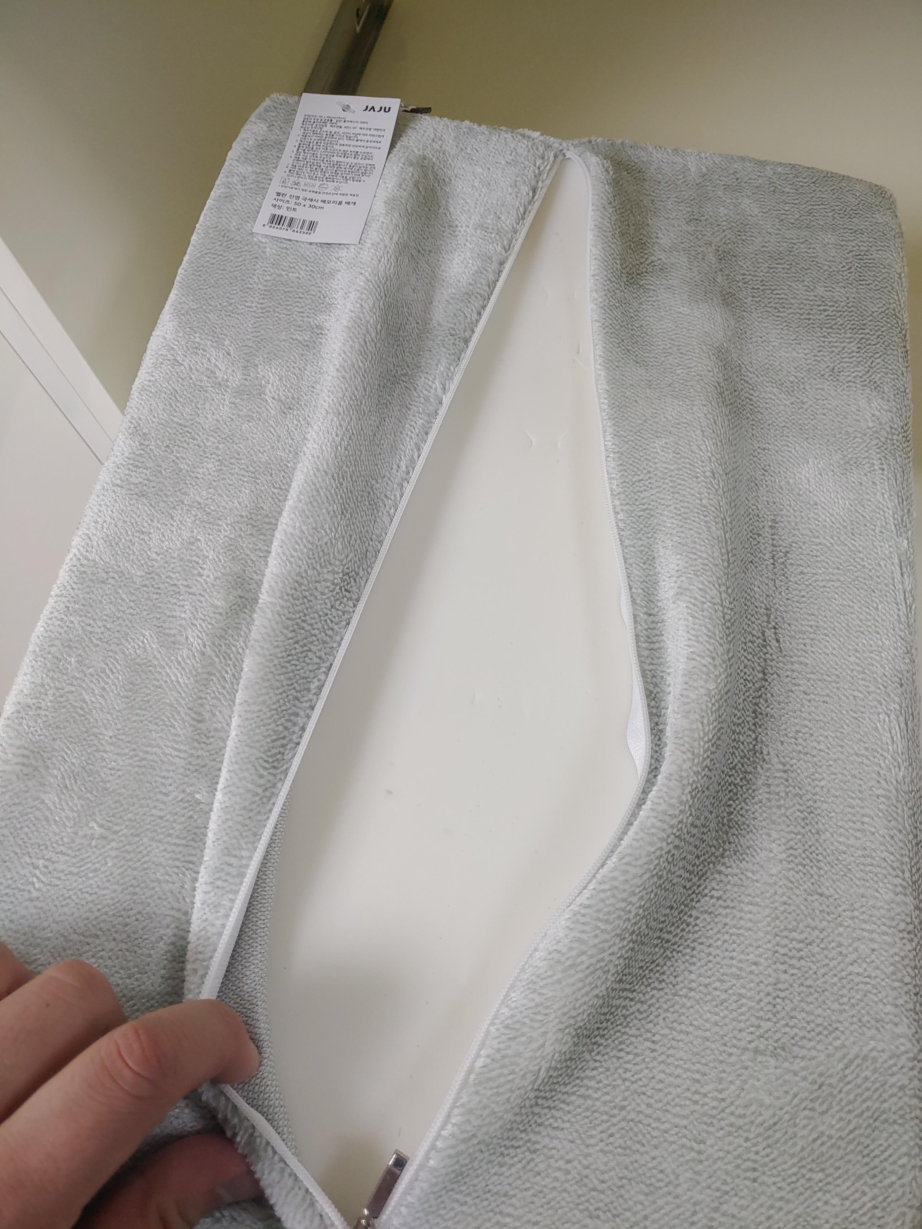 그리고 지금 사진에서도 보셨다 싶이 이거 하나만 딱 커버로 되어 있어서 저는 추가로 커버를 따로 하나 사두는 편이에요 땀도 좀 나는 편이기도 하고, 메모리폼 오래 쓰면 오염 주의해야 한다고 하니 커버 얼마 안 해서 따로 하나 좋은 거 사서 쓰는 편인 것 같습니다. 그리고 이번에 사 온 것은 털이 좀 부담스러운 극세사 느낌이라 ^^;; 커버도 따로 주문을 해놓기도 했습니다.