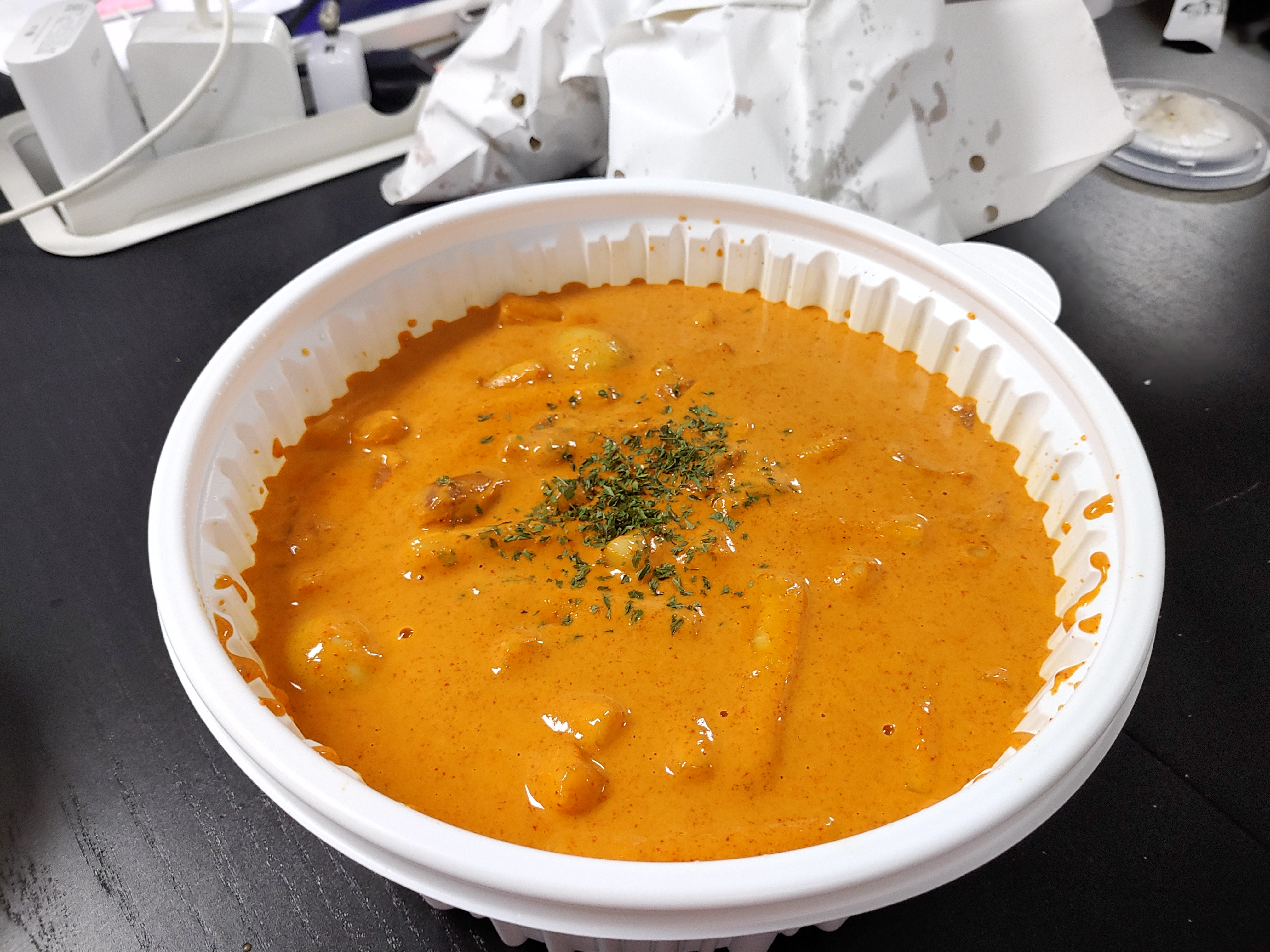 원래 배달로 떡볶이를 잘 시켜먹는 편은 아니에요. 한두번 시켜본 적이 있는 것 같기도 하지만, 대부분은 떡볶이를 먹으려고 하면, 포장을 해온다거나 하는데요. 이번에 떡볶이를 한번 배달로 주문을 해봤어요. 아직도 유행인지는 모르지만 로제떡볶이를 한번도 안먹어봤었거든요. 그래서 겸사겸사 난생 처음 로제떡볶이를 주문해봤는데요. 난생 처음 먹어본 로제 떡볶이는 야식으로 나름 나쁘지는 않았지만 가격은 후덜덜한 느낌이긴 하더라구요. 그래서 사진이랑 간단하게 담아봤습니다!!