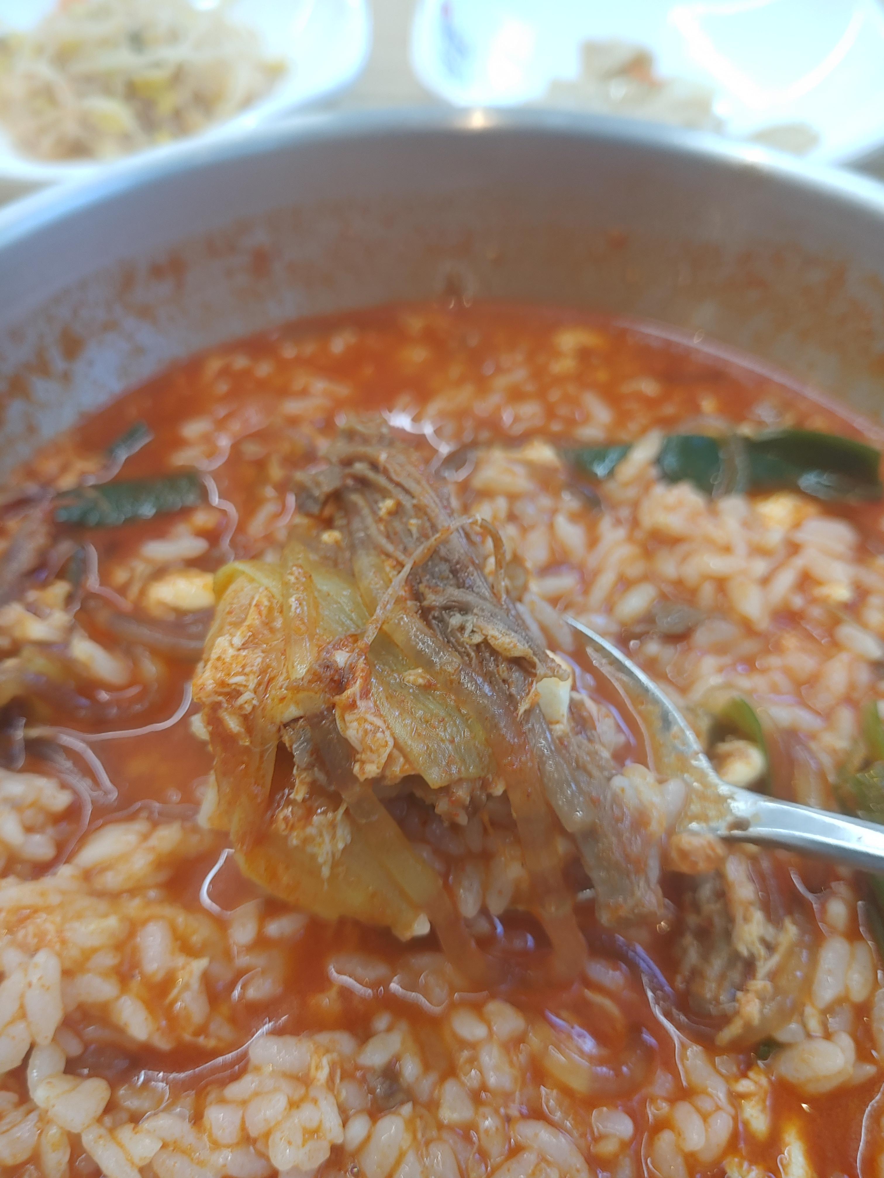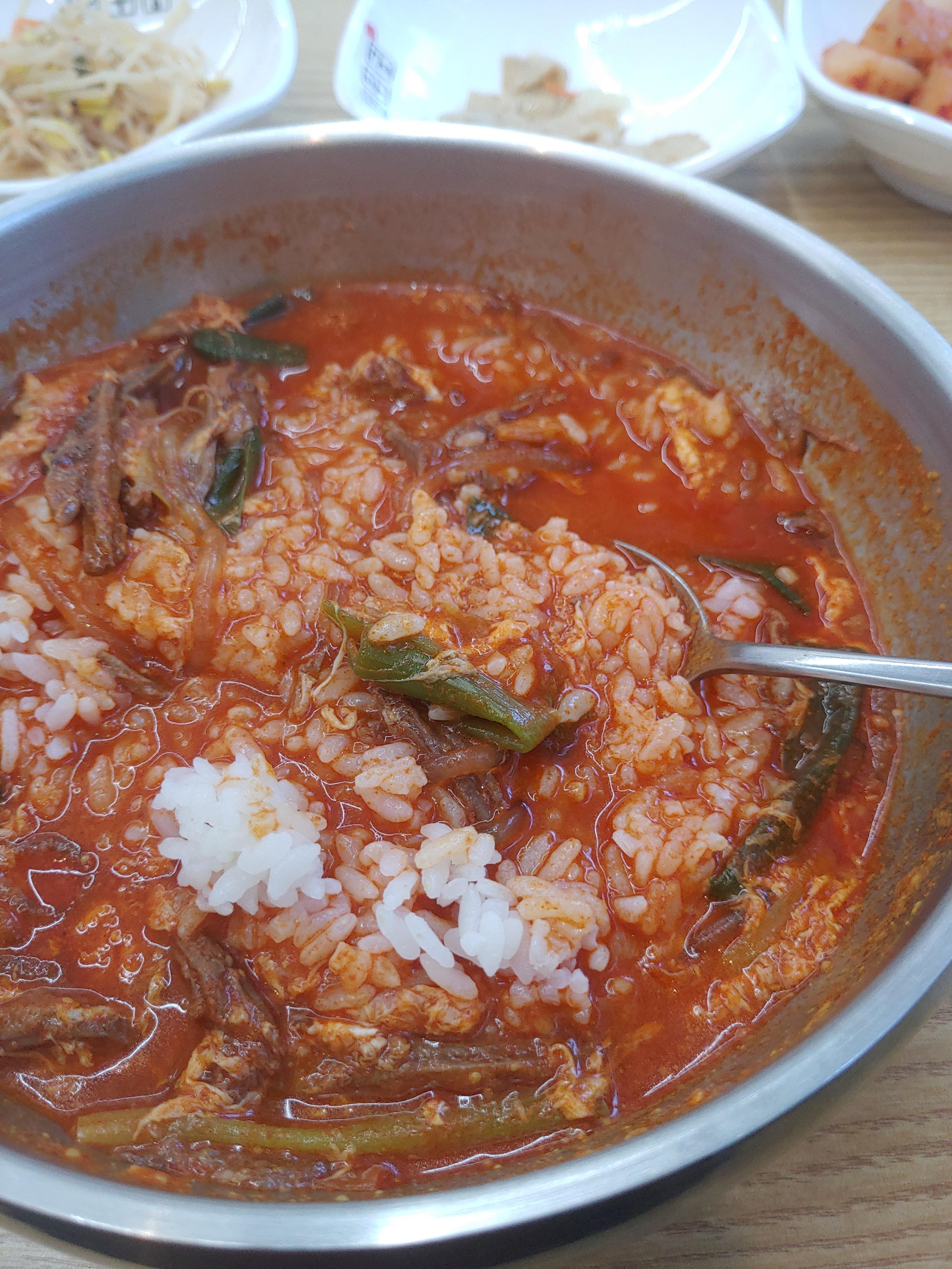 그리고 육개장과 밥이 등장을 했는데요. 가격대가 꽤 저렴하고 가성비가 있음에도 불구하고 굉장히 진한 국물 그리고 안에 들어간 내용물도 굉장히 알찬 전통육개장이 등장을 했습니다. 다만 아쉬운 점은 매장마다 조금 차이가 있는데 숭의역점은 제가 자주 가던 부평에 비하면 조금 아쉬운 부분도 있기는 했습니다 ^^;; 매장마다 조금씩 다른 부분은 있으니까요. 그래도 국물맛이나 전체적으로 맛은 그대로라서 굉장히 괜찮더라구요.