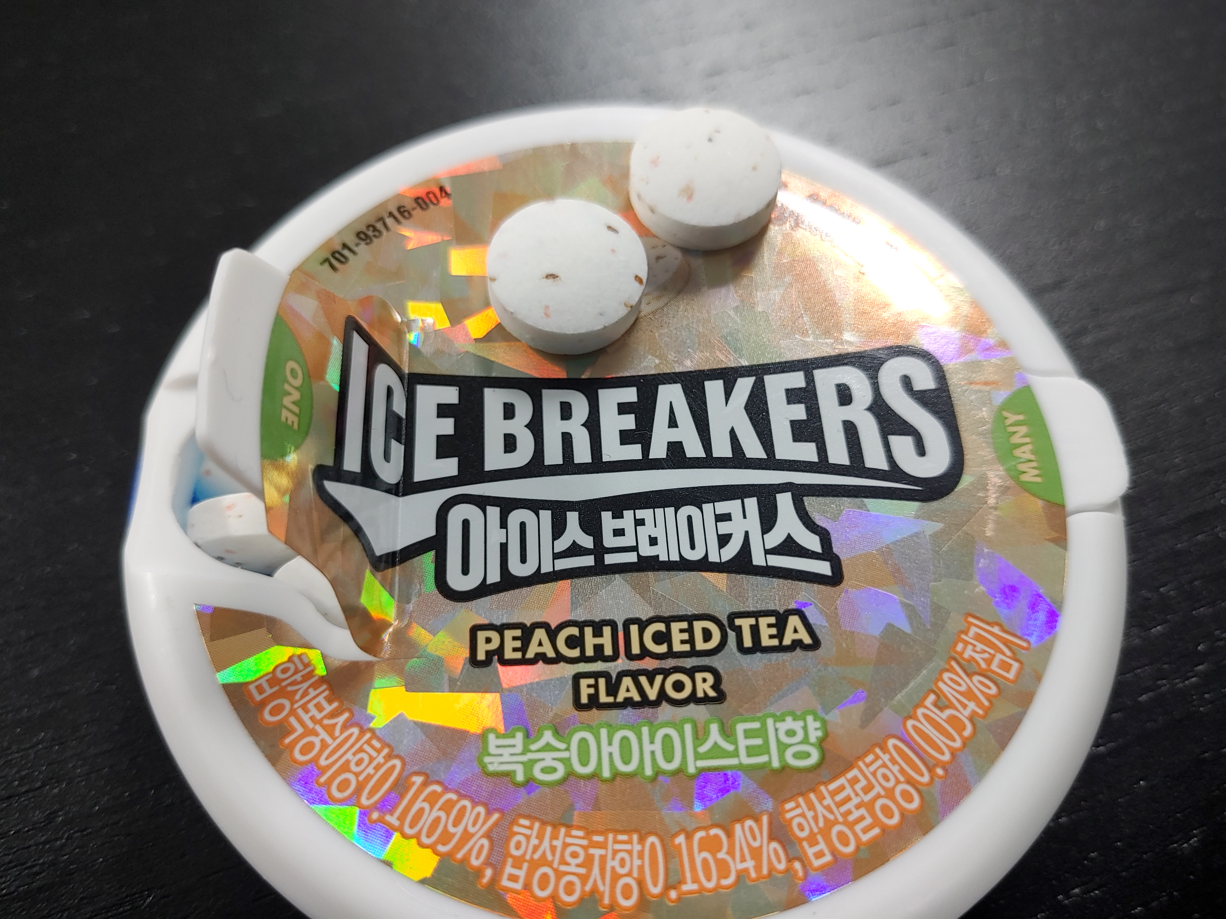 복숭아아이스티향인데, 복숭아 홍차? 이런 그 향긋달달한 맛이 있어요. 그렇다고 실제로 엄청 달달한 느낌은 또 아니에요. 향긋한 느낌과 상쾌한 느낌도 있는 아이스브레이커스에요. 개인적으로 입이 심심할때 먹곤 하는 아이스 브레이커스 뭔가 새로운 맛이 편의점에서 눈에 띄길래 들고와서 이렇게 가볍게 리뷰로 담아봤습니다.