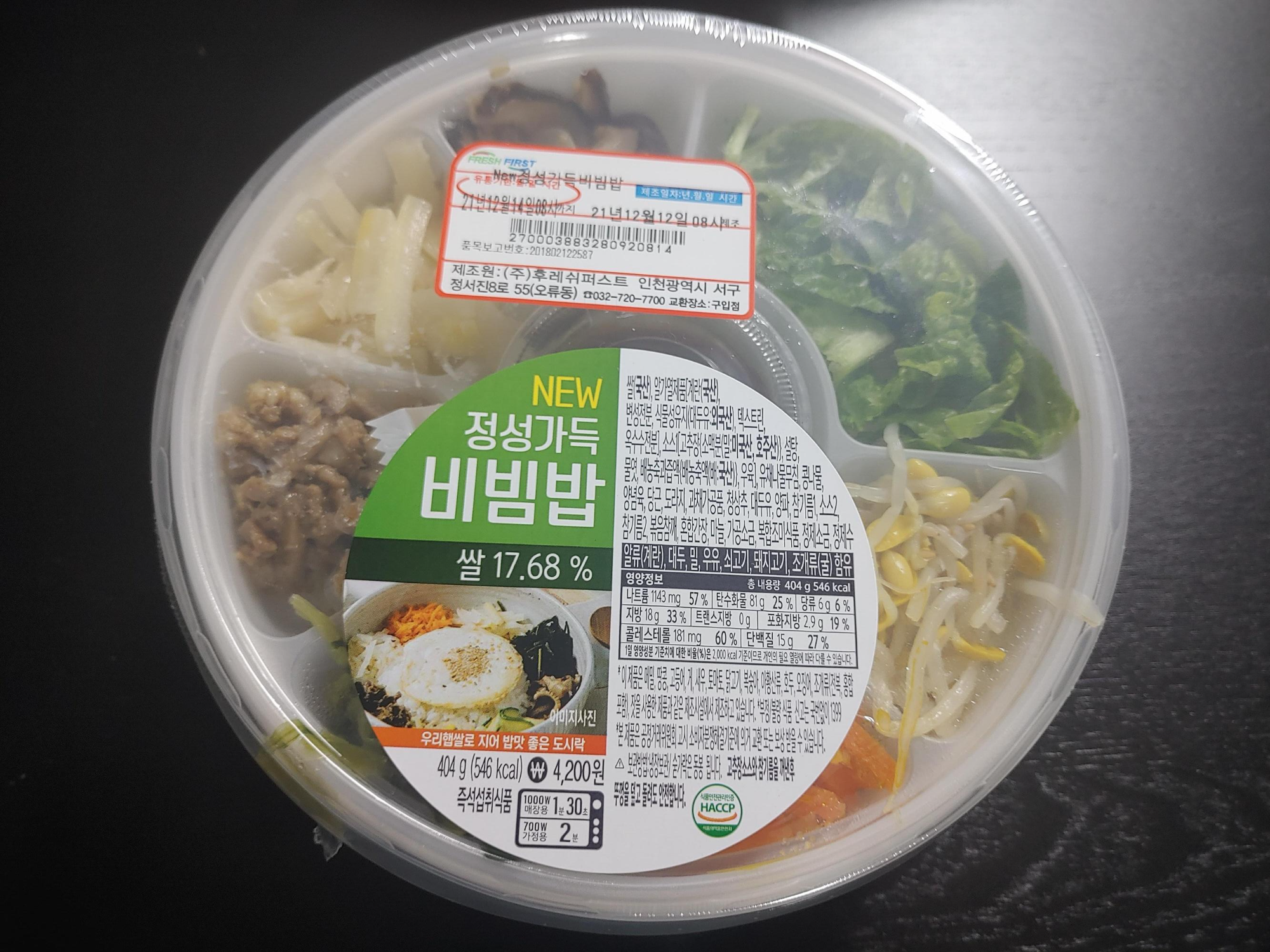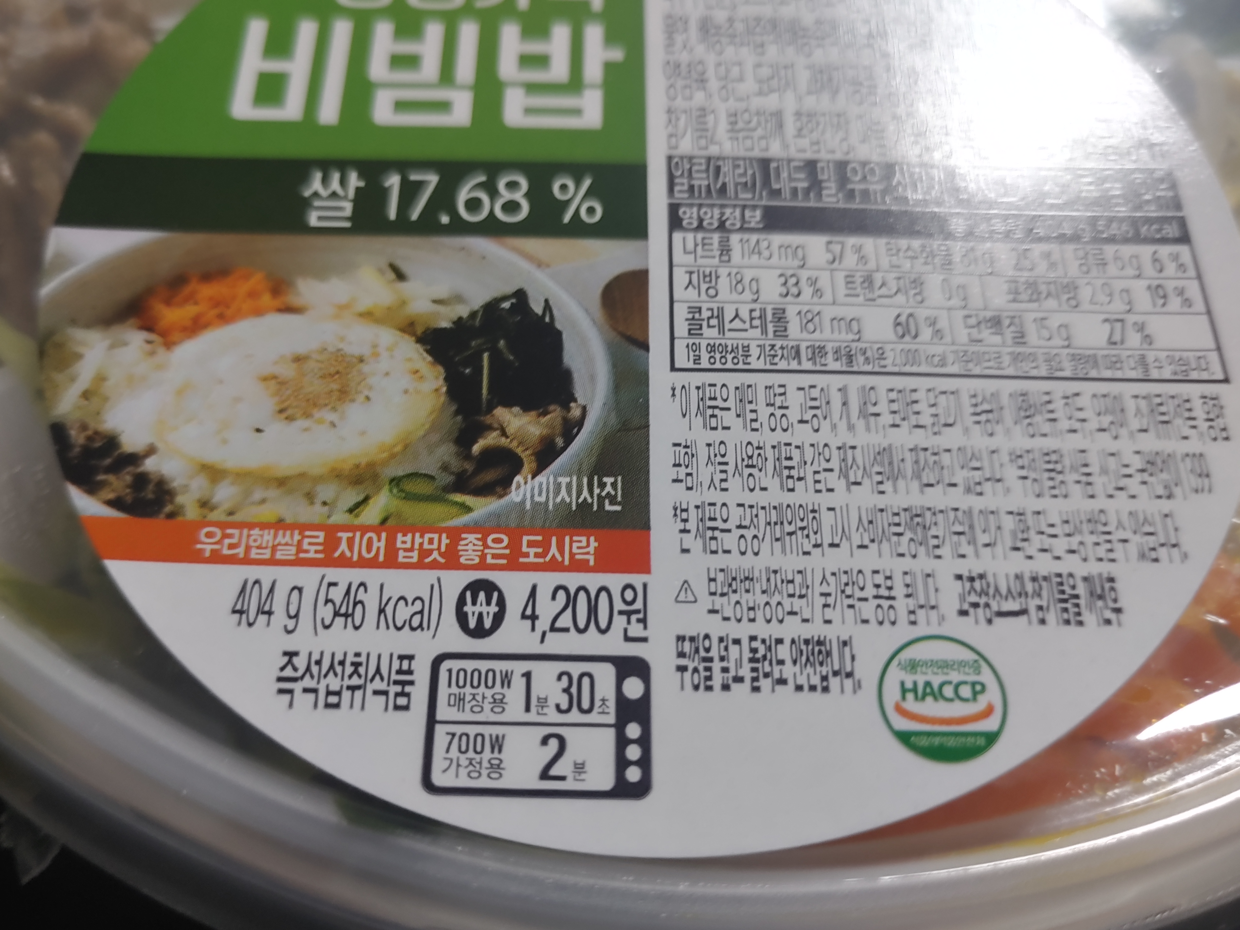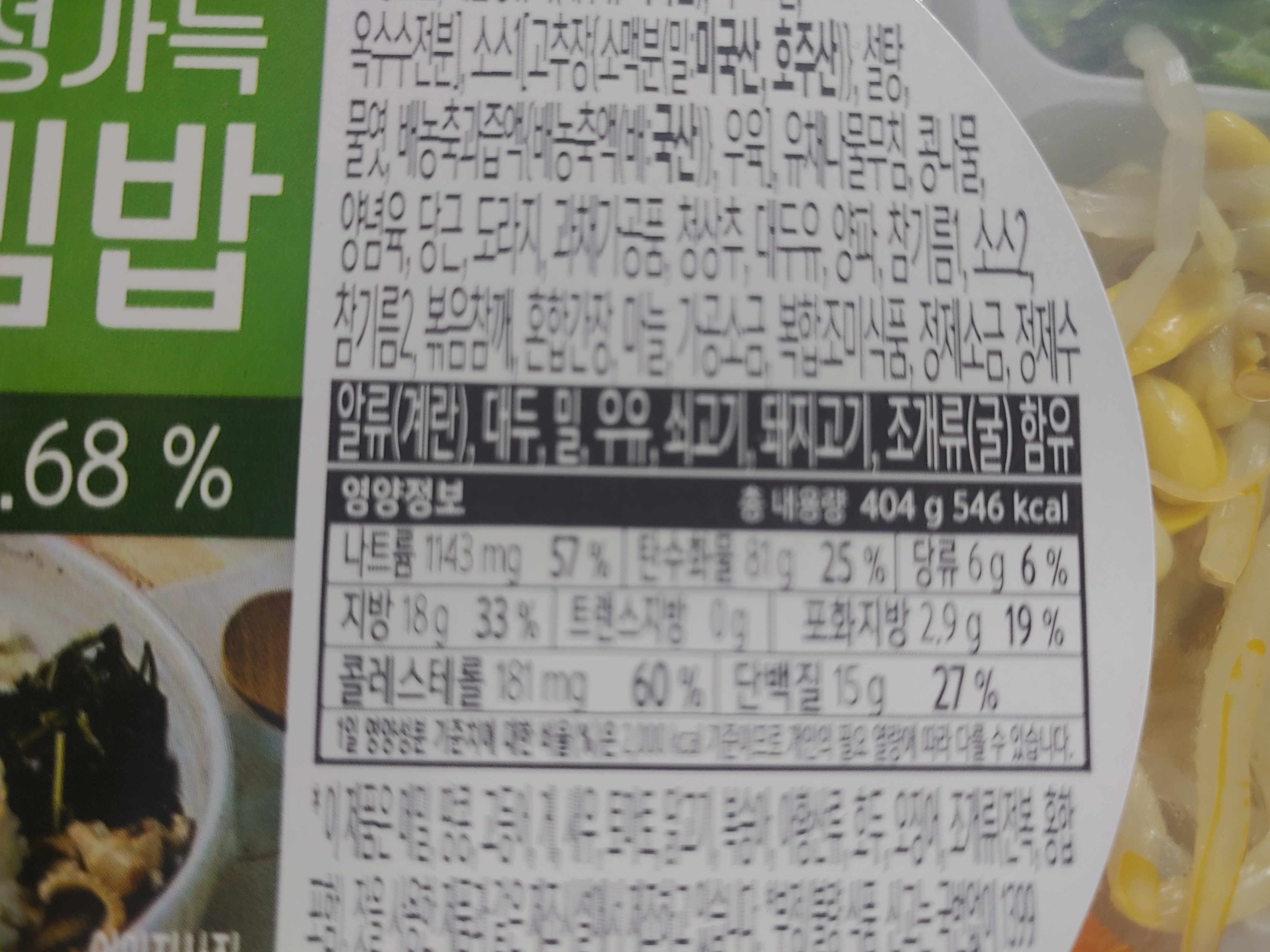 영양성분은 404g 에 546kcal 인데요. 비빔밥 칼로리는 생각보다는? 엄청 높은 것 같지는 않더라구요. 밥도 적당하고 야채들 위주라서 칼로리 자체는 다른 도시락들에 비해서는 엄청 높은 것은 아니더라구요