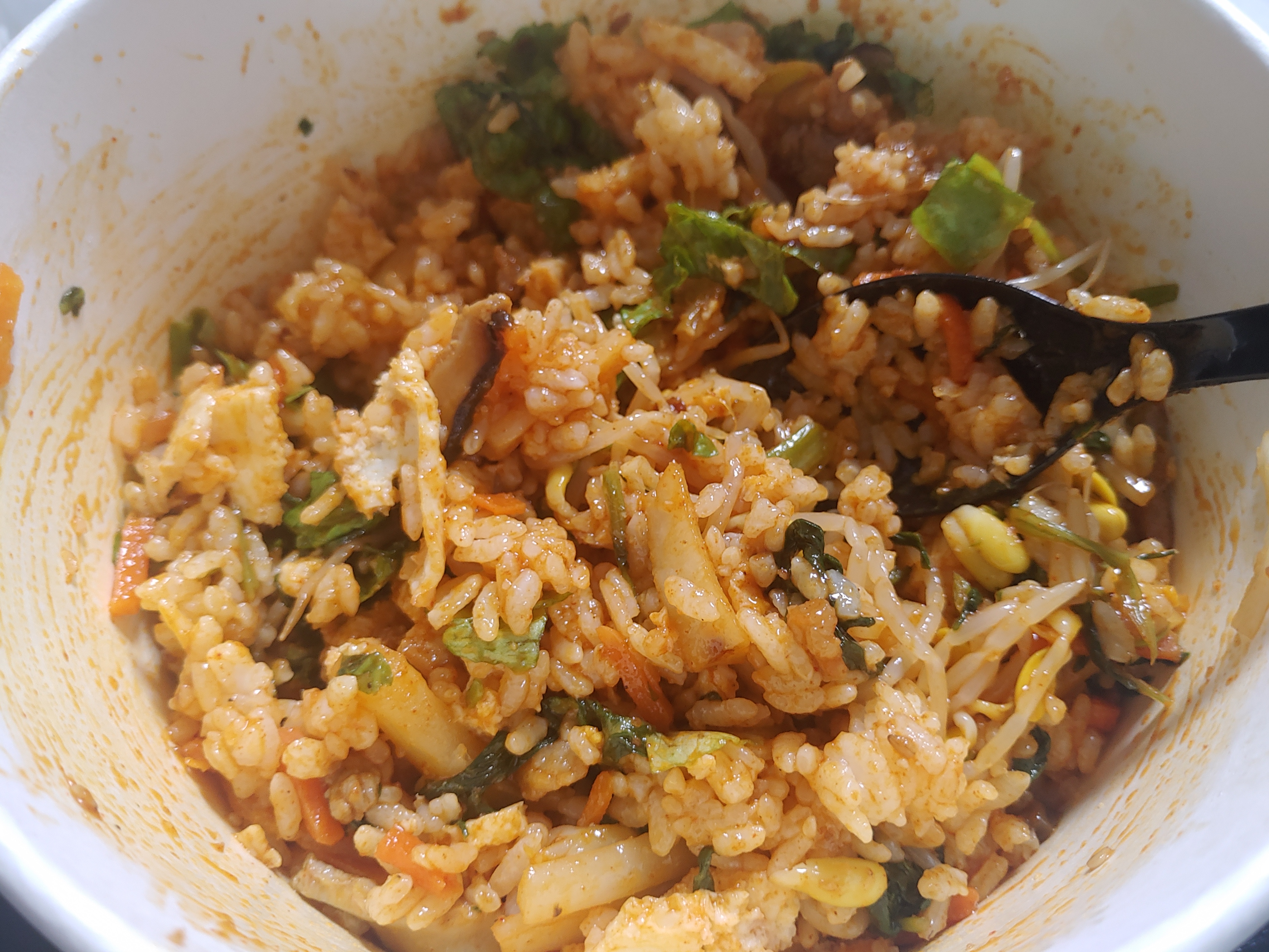 열심히 비벼서 비빔밥을 먹은 소감은!! 굉장히 깔끔하고 괜찮더라구요 ~ 나물 종류도 많고, 사실 배달로 주문해서 먹으면 가격도 꽤 비쌀텐데 나름 편의점 가격 4200원이면 나쁘지 않은 가격이라는 생각이 들었구요. 꽤 맛있어요.