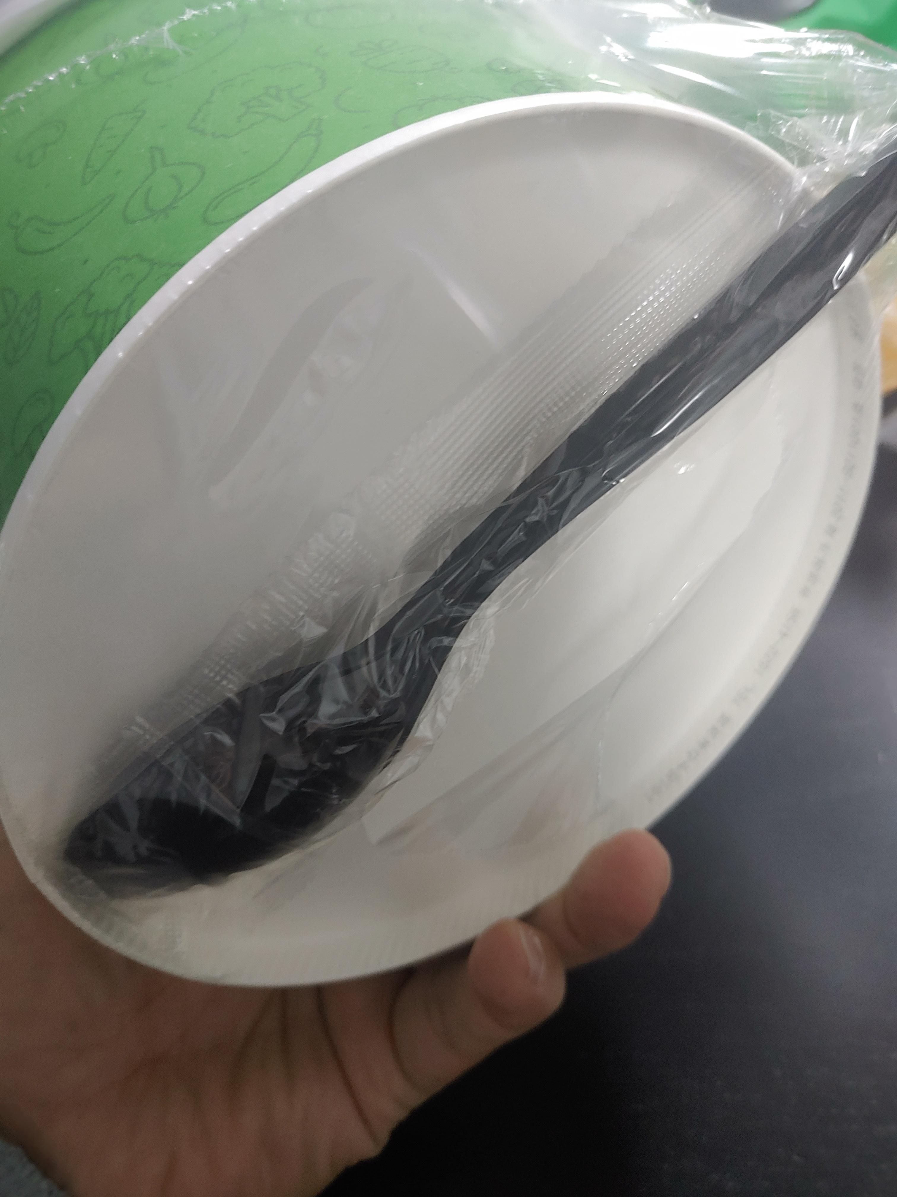 수저는 아래쪽에 붙어 있고, 비빔밥을 비빌정도로 약간 튼튼한 수저에요 ㅋ 요새 배달 주문들을 자주 하면서 느끼는 것인데 비빔밥이나 덮밥 주문 했을 때, 수저가 약한 것들 오면 비빔을 하기가 정말 어렵더라구요. 편의점 도시락 치고는 단단한 느낌의 수저였어요.
