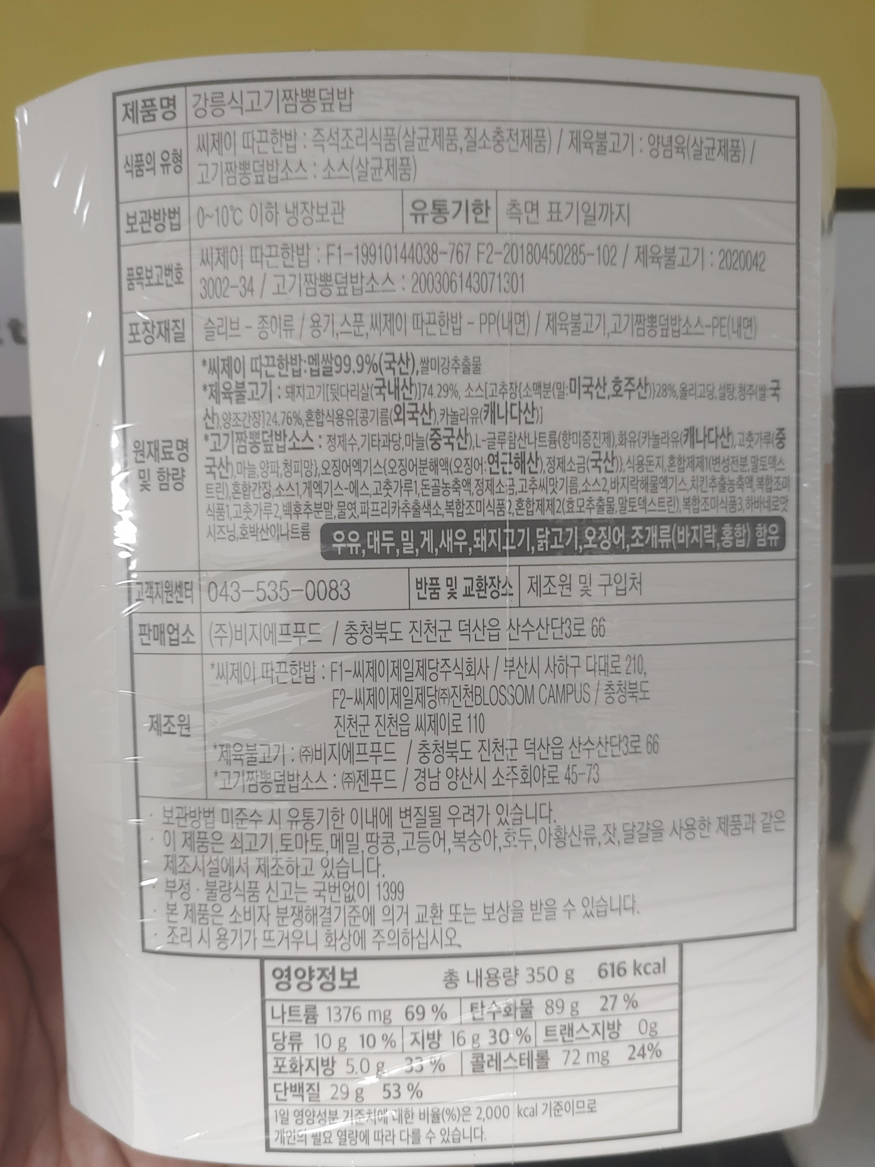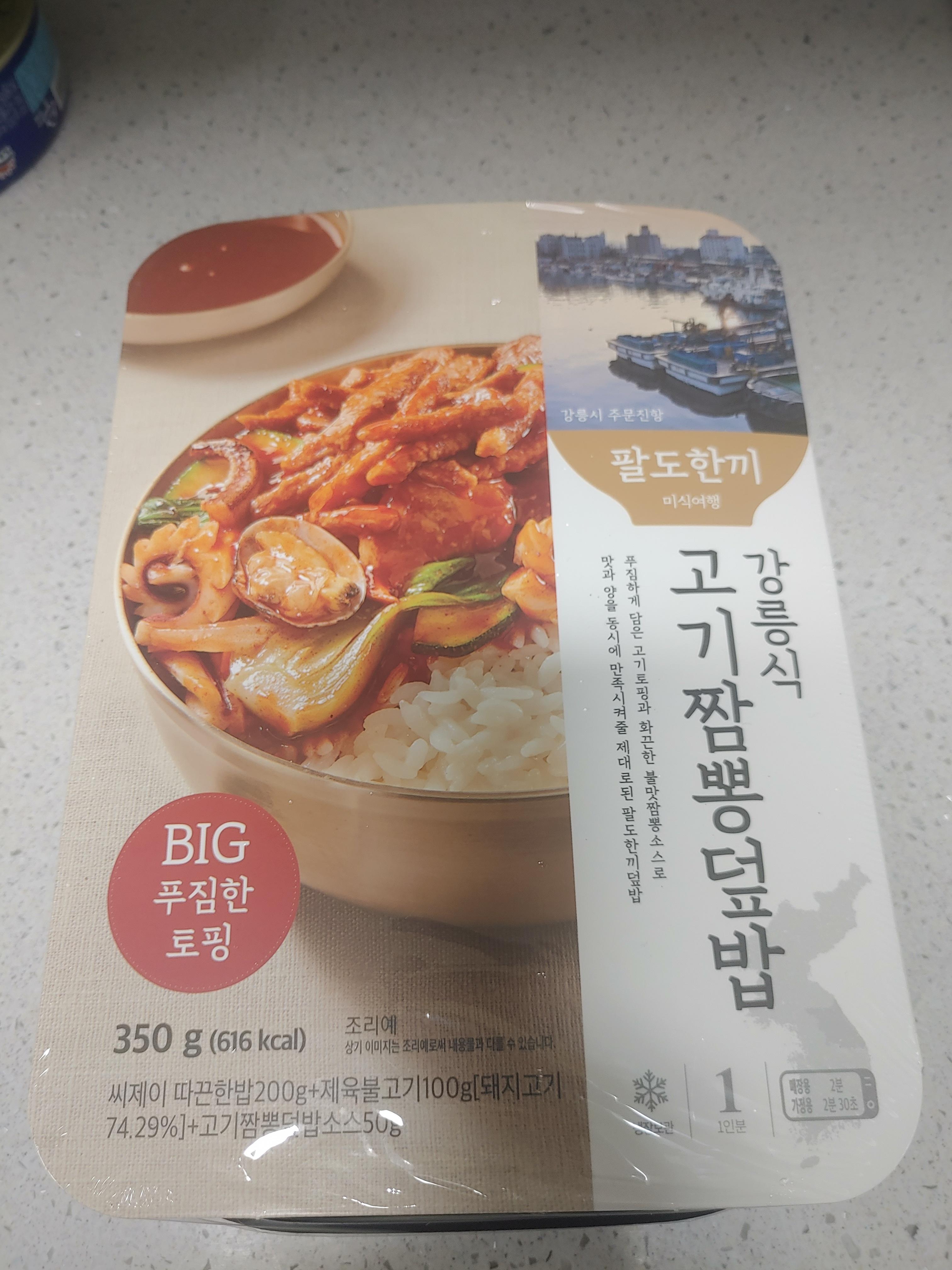 용량은 350g 이고 칼로는 616kcal 인데요. 한끼식사로는 나쁘지 않다고 생각을 했어요. 아무래도 이런것 먹는데는 집에 있는 김치도 먹고 해야되니 ㅎㅎ 한끼 칼로리로도 꽤나 나쁘지 않다고 생각이 들더라구요.