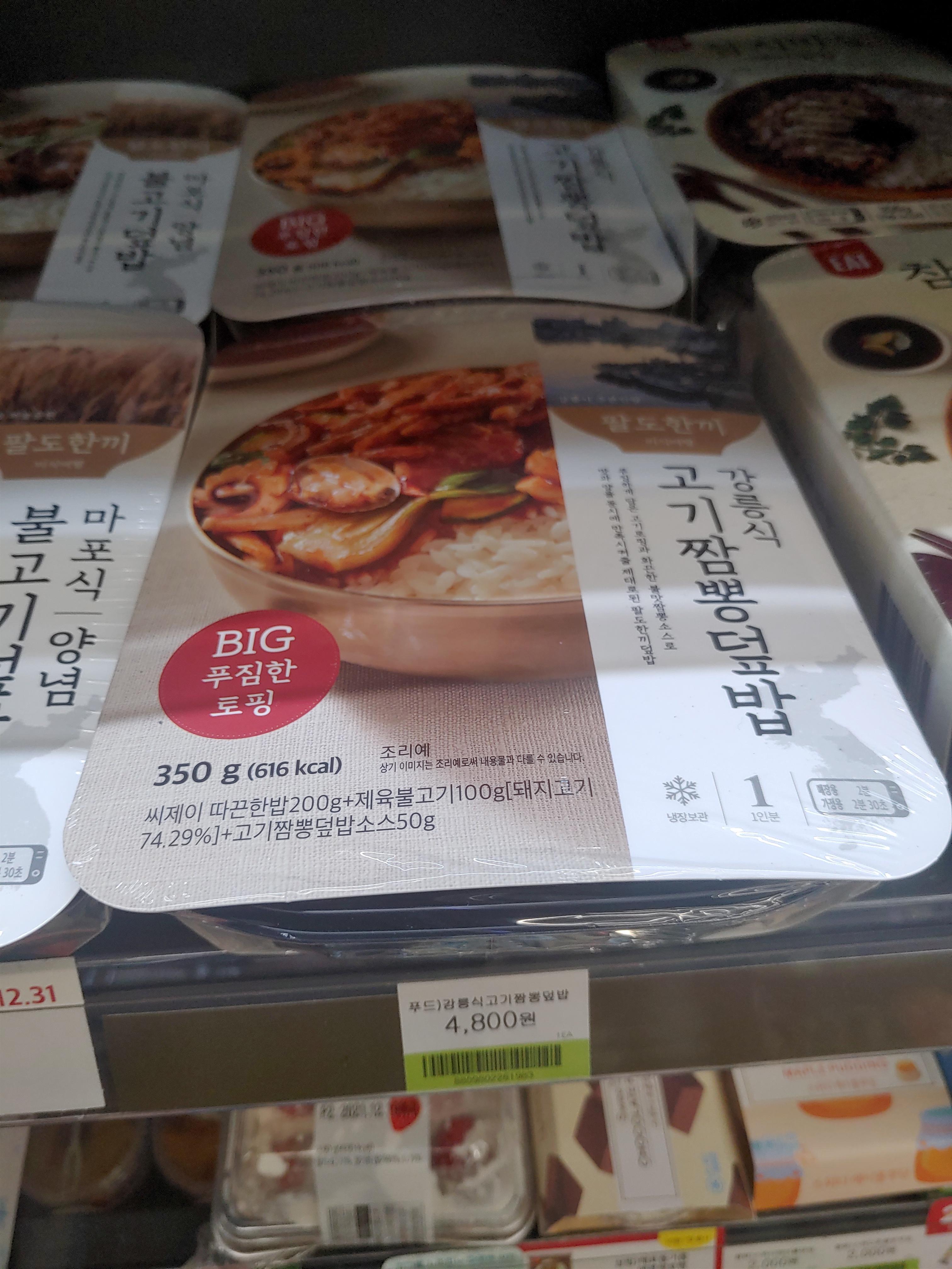 CU편의점 간편식 강릉식 고기짬뽕 덮밥은 가격은 4,800원 정도였어요. 왠만한 도시락 보다 약간 가격대는 좀 있는 편이었구요. 사실 편의점 음식들은 가격은 좀 있긴 해요 ^^;;