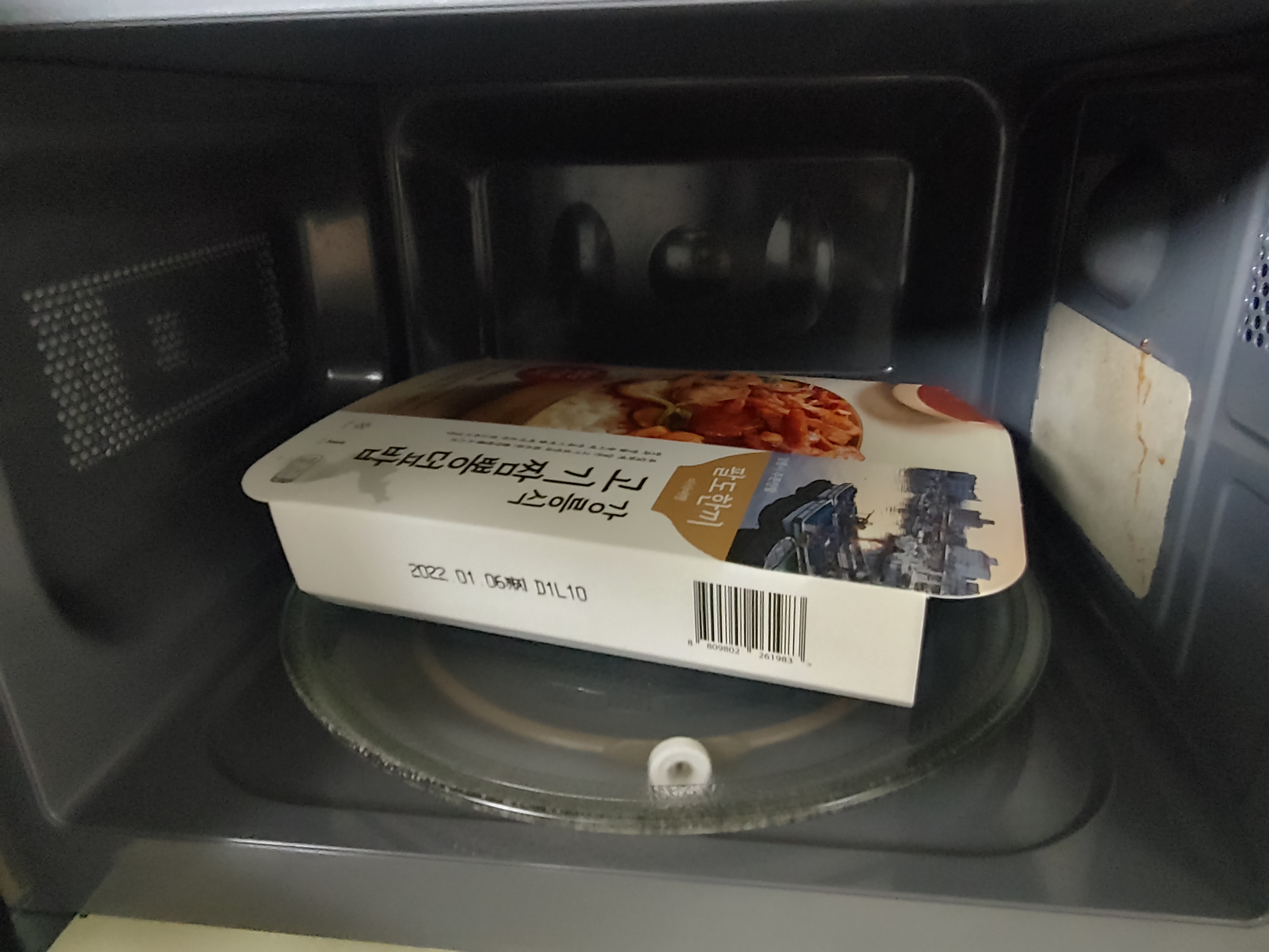 뭔가 이상해 보이셔도 있는 그대로 그냥 열어서 전자렌지로 직행을 해줍니다 ㅎㅎ 2분에서 ~ 2분 30초 정도 저는 한 3분 정도 돌린 것 같아요. 이게 포장도 뚜껑처럼 해서 역할을 해주는 것이니 버리지 마시고 뚜껑처럼 덮어서 쓰시면 됩니다. 금방 시간이 지나가고 완성이 되었습니다!!
