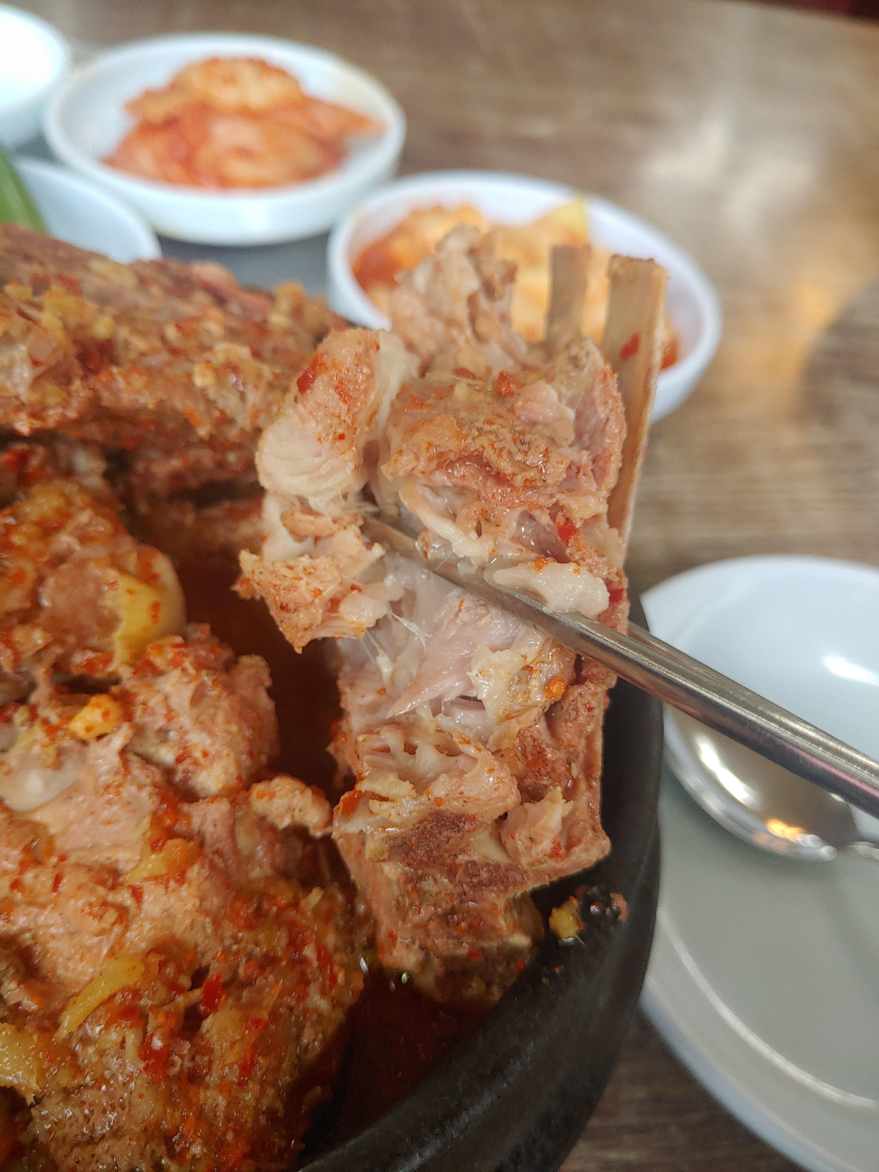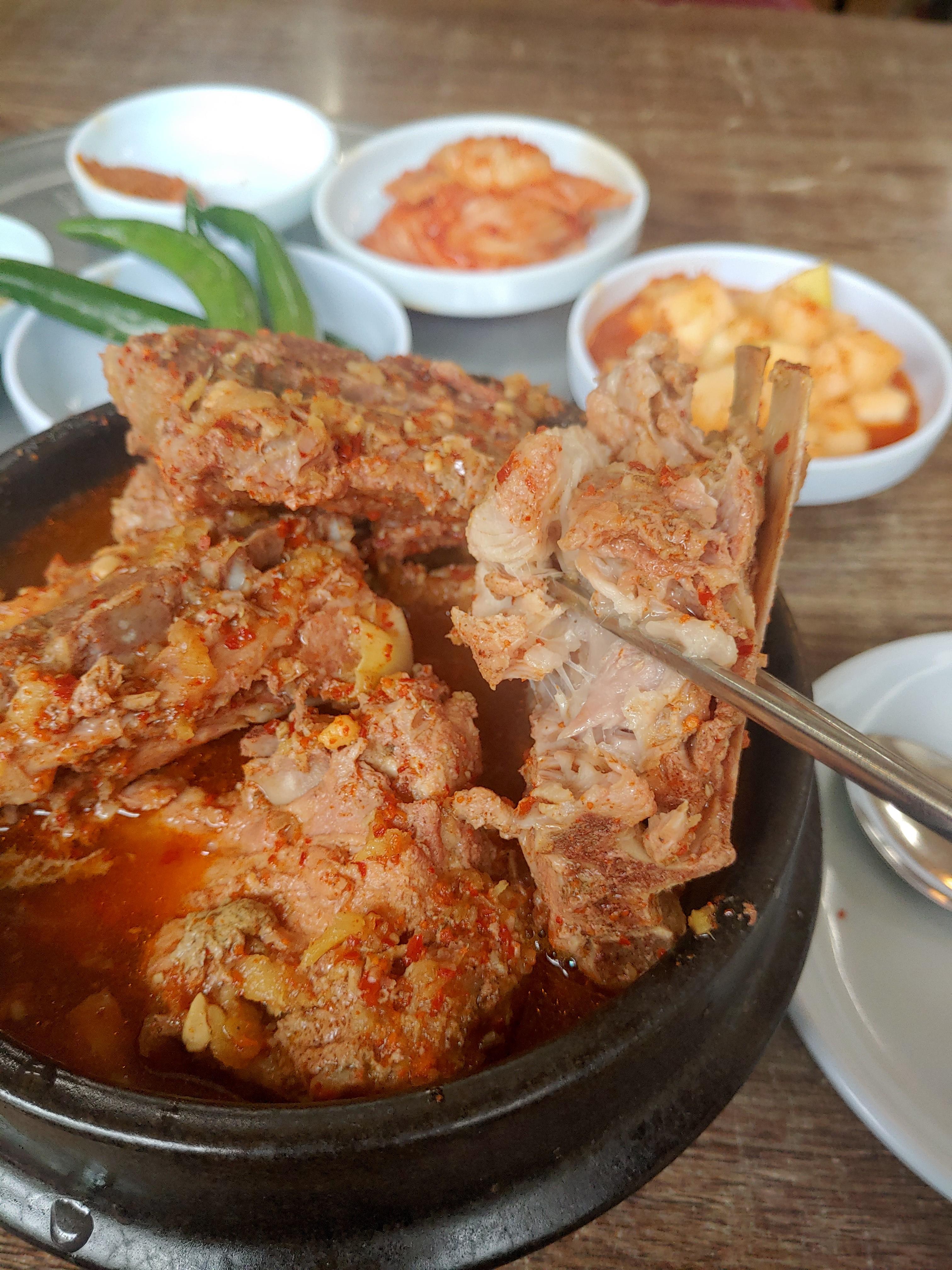 마지막 특징은 뼈에 있는 살이 정말 먹을게 많아요!! 여타 다른 해장국집 가면 뼈만 있고 살코기는 없는 경우가 많은데 여기서는 어마어마하게 붙어 있는 살을 볼 수 있어요. 진짜.... 다른 집들은 반성해야되요 라는 생각이 들정도인데, 그래서 그런지 제 인생감자탕이기도 하고, 언제나 와서 너무 든든하게 밥먹을 수 있는 곳이에요 ^^