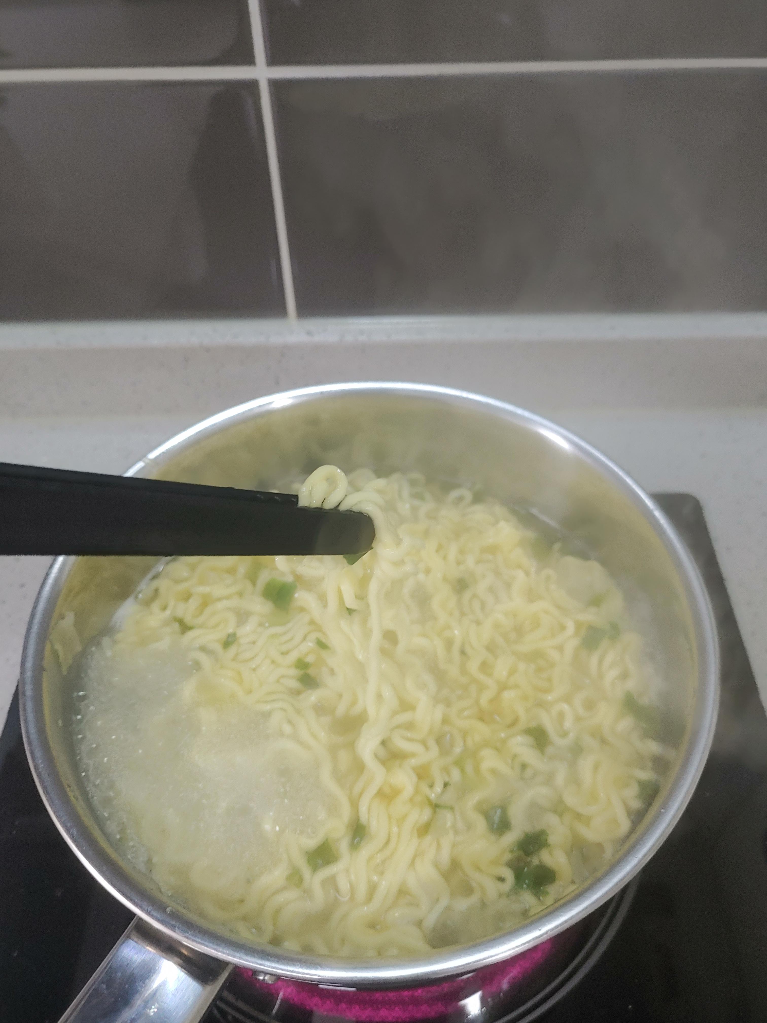 이 과정에서 주의해야되는 점은 아무래도 전체적으로 뜨겁기 때문에 뜨거운 물도 조심해야하고, 물 쏟아 버리실 때 채 같은게 없다면 면이 주르르르륵 씽크대로 흘려가버리는 대참사가 날 수 있기 때문에 주의해서 천천히 하셔야 해요.