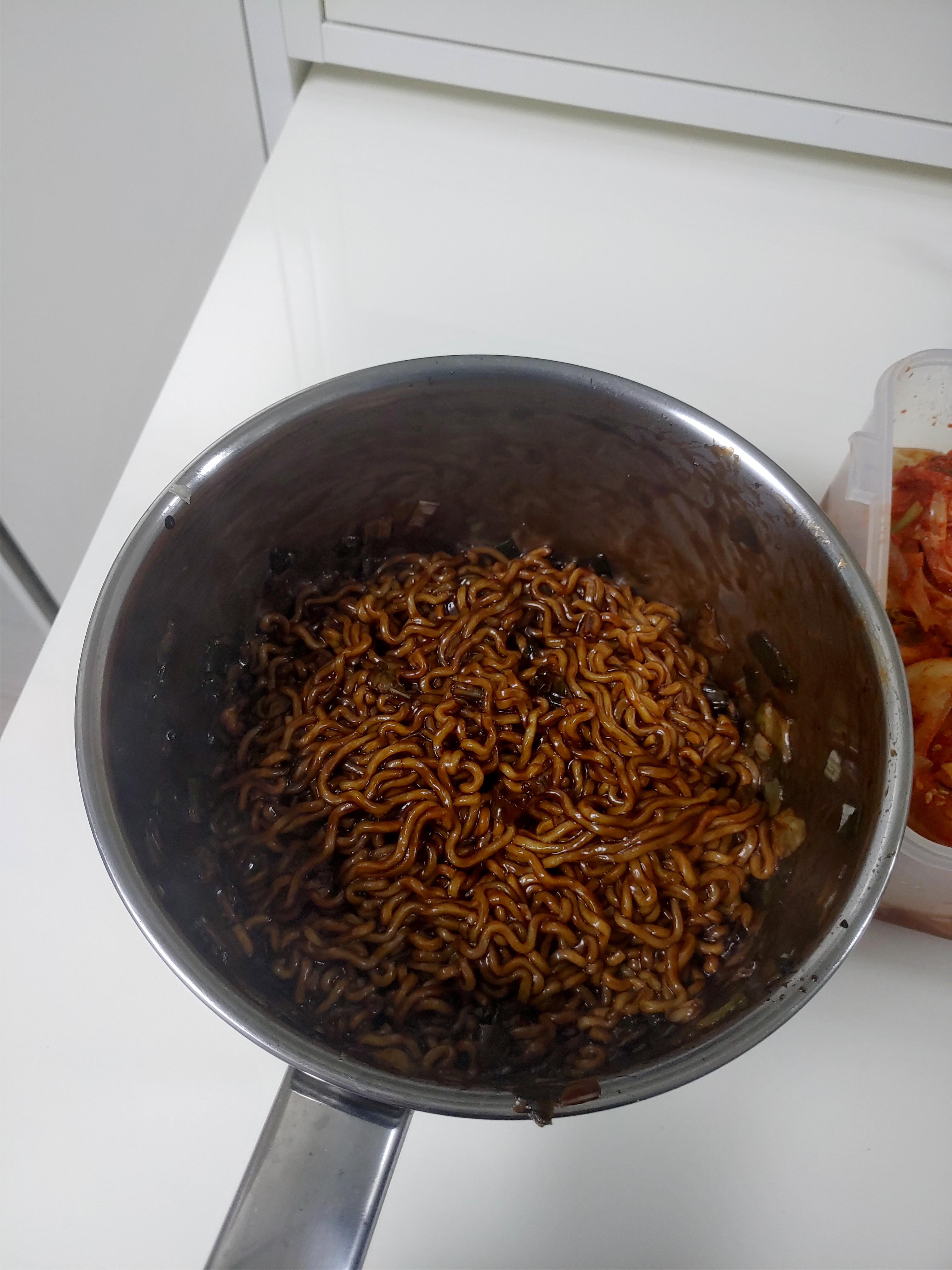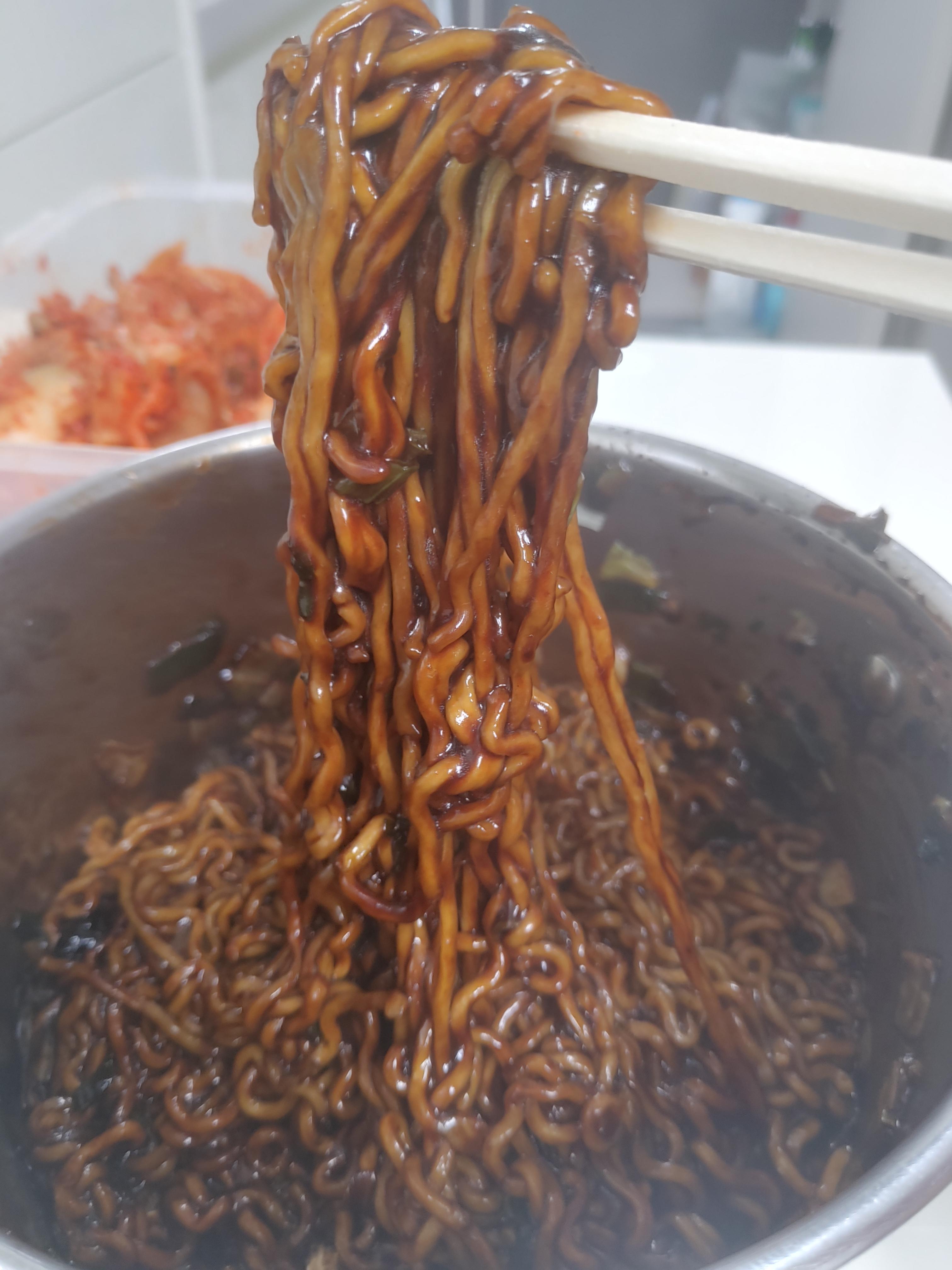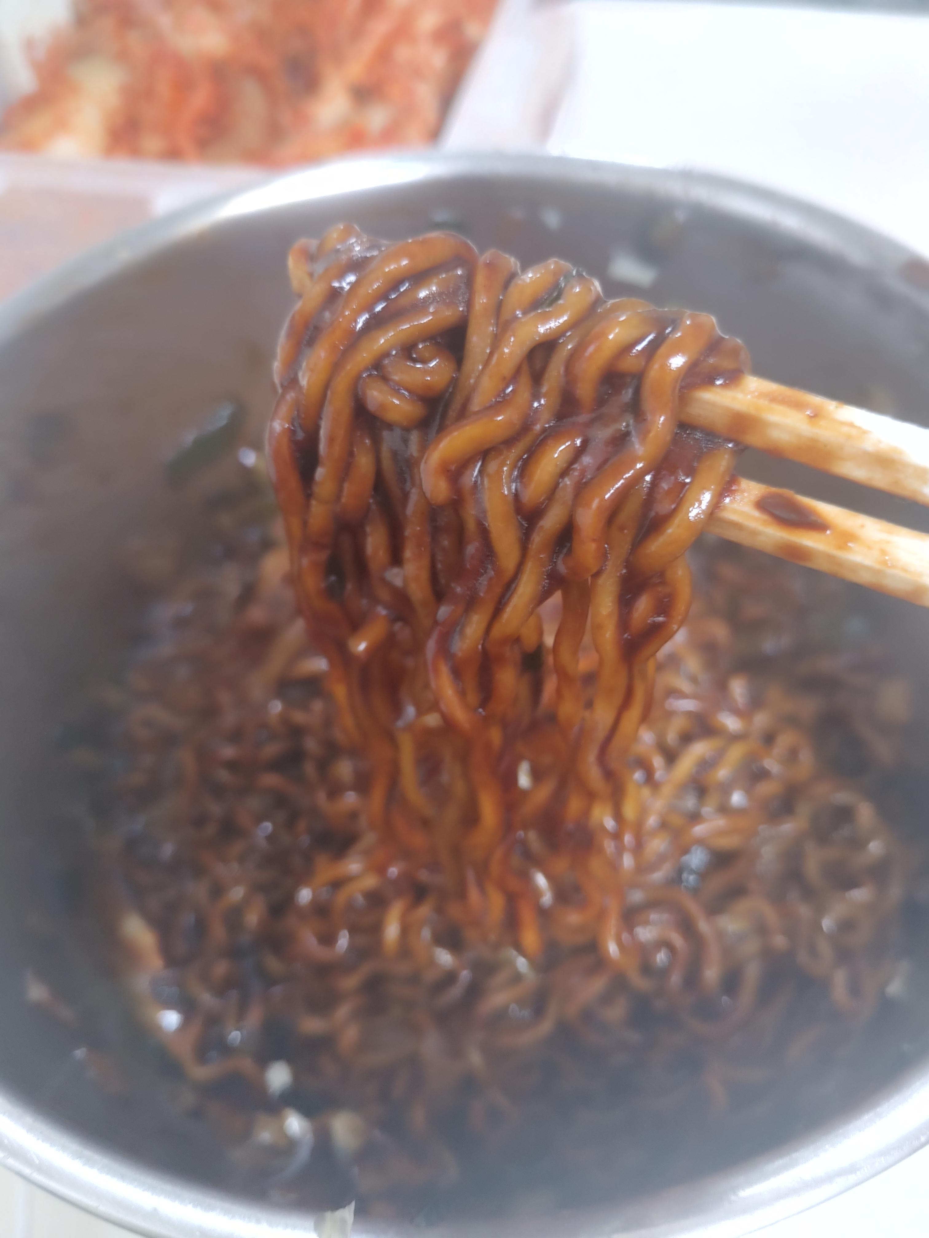 짜장면 치고는 상당히 깔끔한 맛이 있고, 달달해서 그런 맛이 확실히 인상적이기는 했는데요. 짜파게티 같은 것들에 비하면 부담도 조금 덜한 편이고, 특색은 확실히 있다 이렇게 말씀드릴 수 있겠네요.