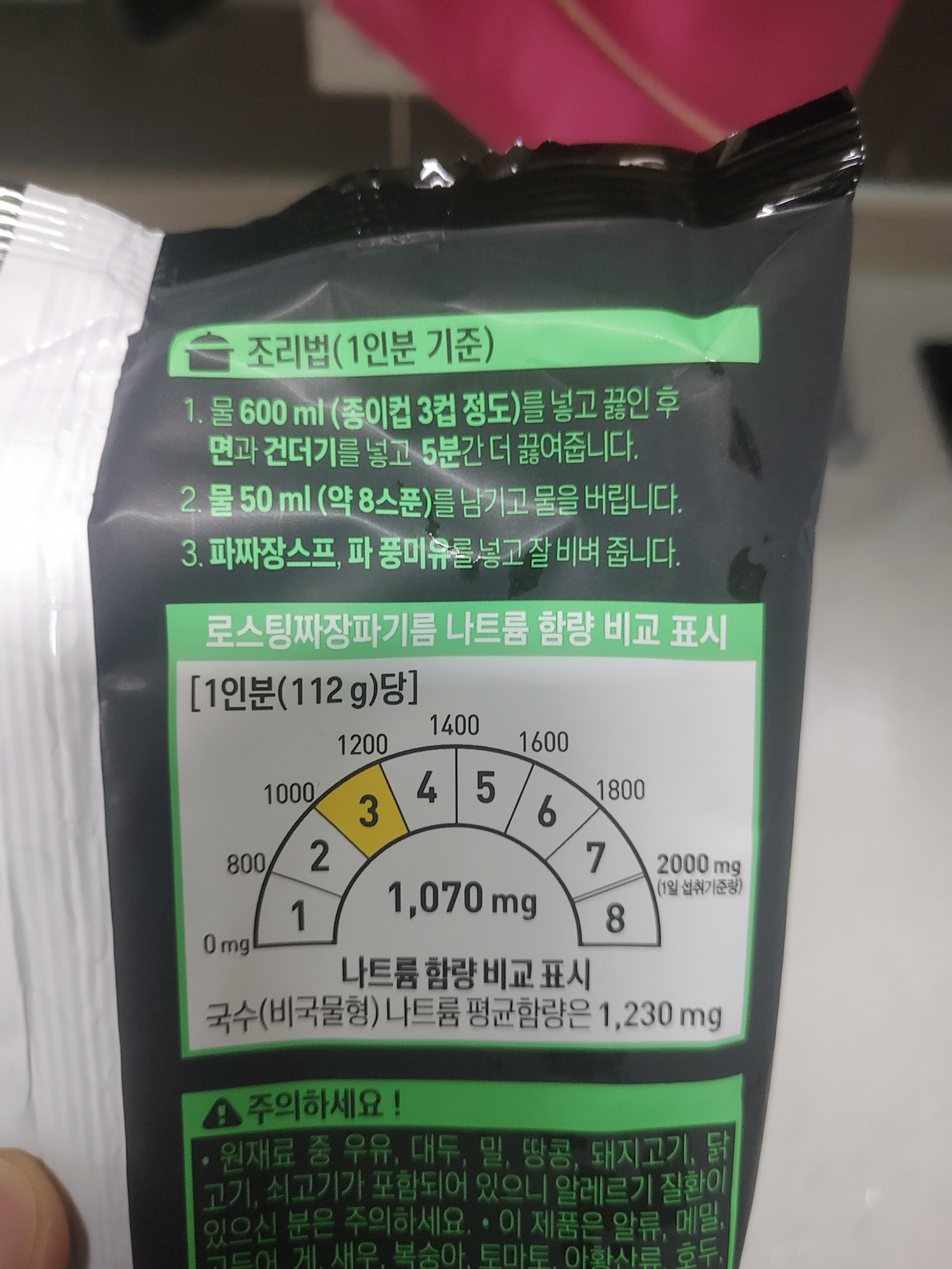 조리방법은 일반 짜장라면과 똑같은 방법으로 물을 넣고 끓을 때 건더기와 면을 넣고 끓이고 나서 물만 좀 버리고, 짜장스프와 파기름 풍미유를 넣고 잘 비벼주면 되는데요. 방법은 뭐 크게 어려운 게 없는 것 같아요. 물 흘려 버릴 때랑 이게 뜨겁다보니 그런 부분에서 주의만 하시면요.