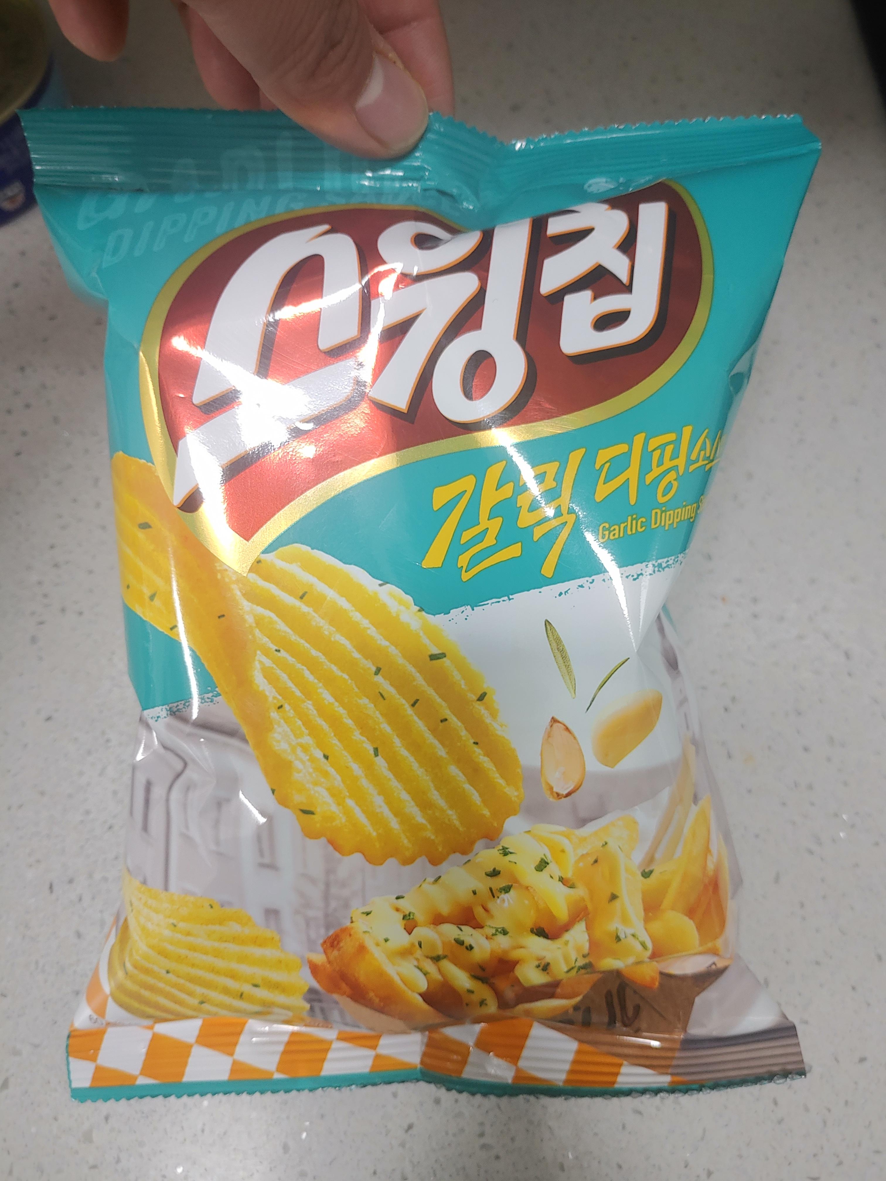 편의점에 들렸다가 같이 가져온 과자가 하나 있는데요. 감자 과자인 스윙칩을 들고 왔습니다. 원래 감자과자는 포테이토칩이나 예감(?) 같은 것들 주로 골라왔는데 뭔가 달달맛있을 것 같은 느낌이라 맥주 안주로도 괜찮지 않을까해서 스윙칩 갈릭디핑소스를 가져와서 간단하게 사진과 맛을 리뷰로 담아보려고 합니다.