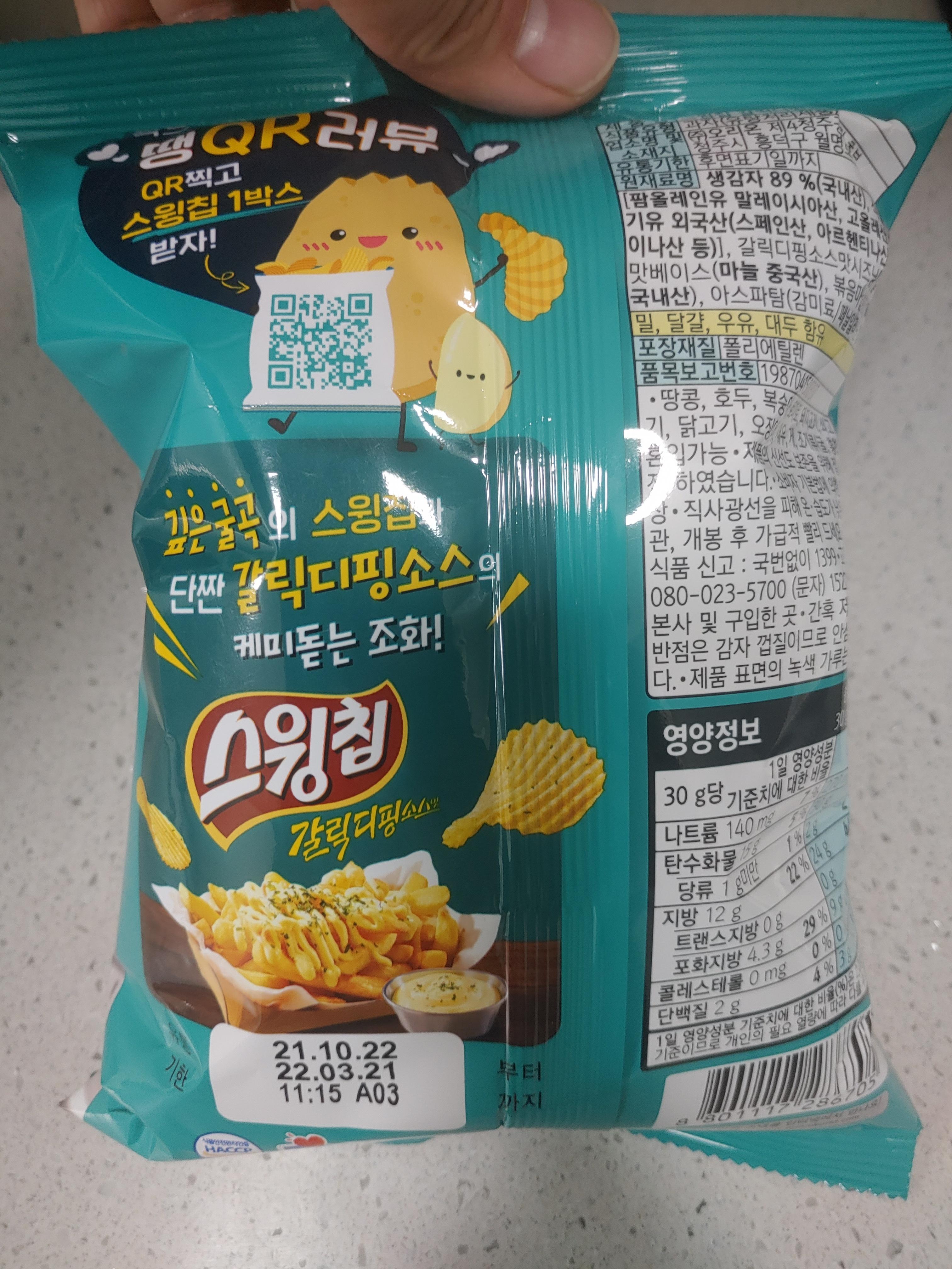 편의점 기준으로 가격은 1500원 정도이구요. 스윙칩은 원래 꽤 자주 보던 브랜드 과자인데, 이번에 갈릭디핑은 새로 나온 것 같더라구요.