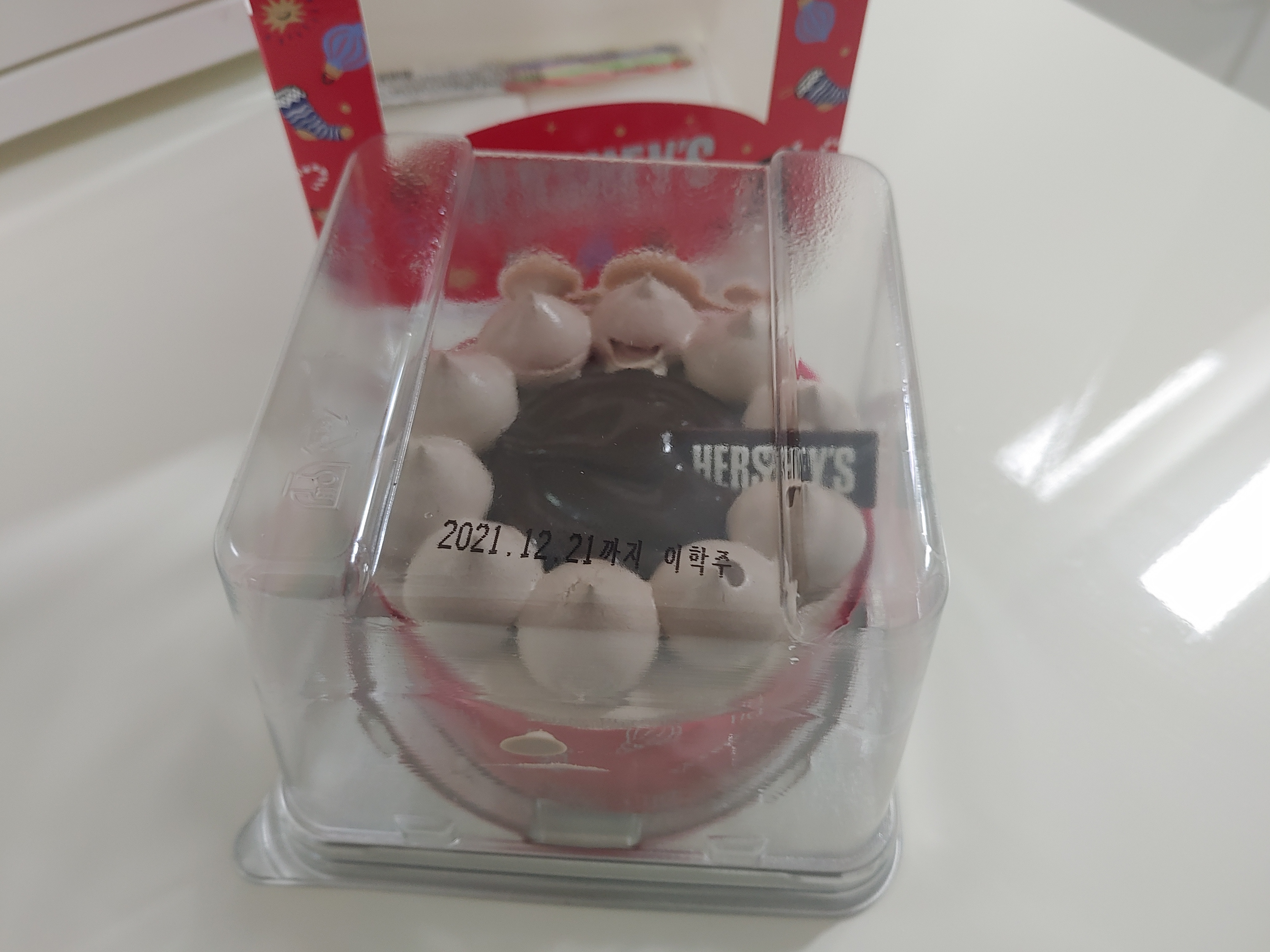 허쉬초코케익 가격은 5900원이었구요. 귀여운 것이 크기도 딱 1인용 사이즈라고 보시면 될 것 같아요. 케이크들은 다 비싸다보니까 왠지 오히려 저렴한 것 같은 느낌이기도 했구요. 혼자서도 가볍게 먹기에 참 좋겠다 생각이 들더라구요.