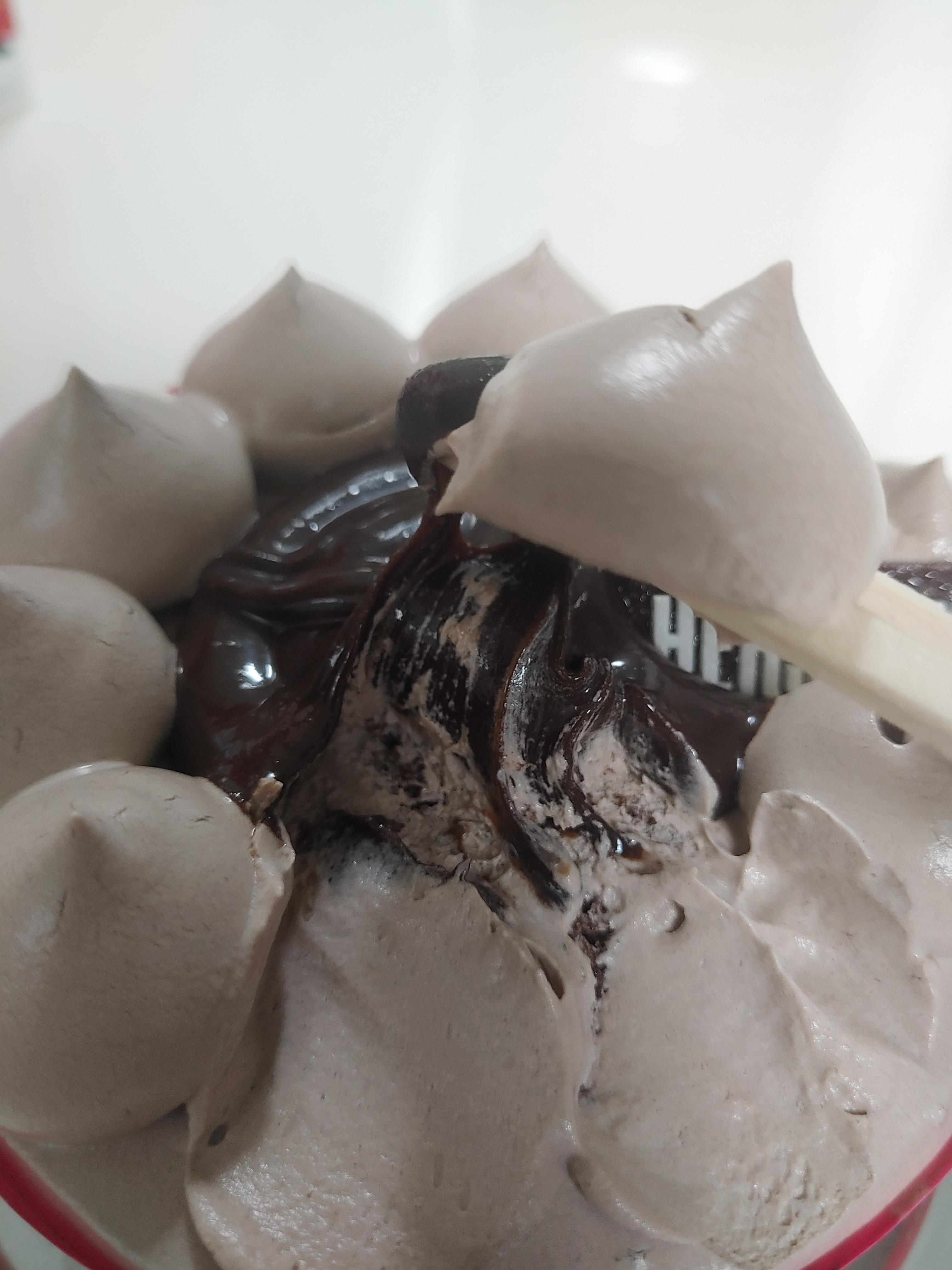 다만 아쉬운 점은 허쉬 초콜릿이 조금 진한 맛이 있는데 그 부분은 크림들도 달고 전체적으로 달아서 그런지 약간 약하다? 이런 느낌이 좀 있었어요. 예전에 허쉬 아이스크림 때처럼 쫀득하고 진~~ 한 초콜릿 맛이 조금 더 더해졌으면 좋겠다는 생각을 살짝 하기도 했습니다.