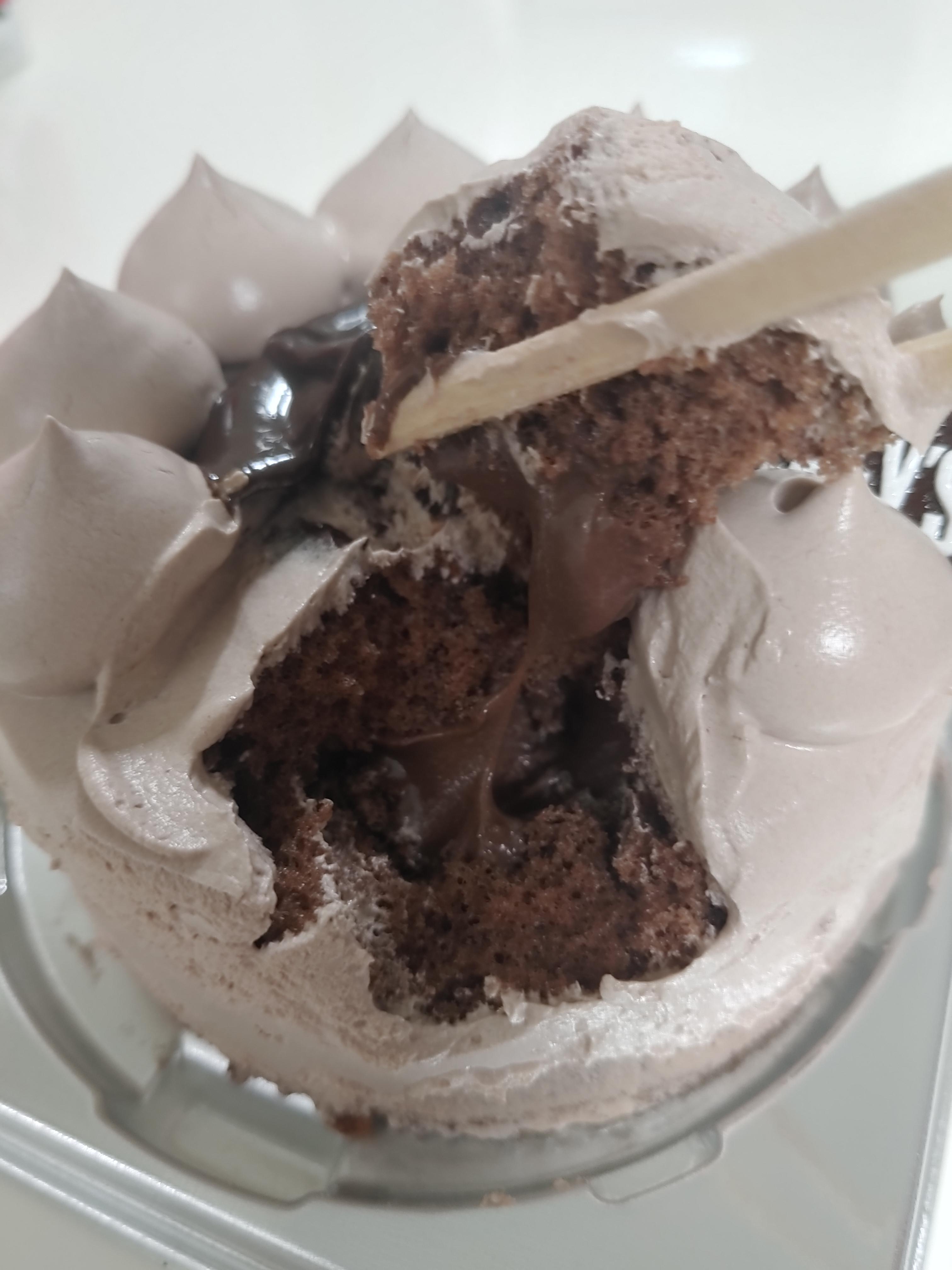 안쪽에도 초코가 들어 있어서 빵 사이로 촉촉한 초코들이 더해지니까 더 좋더라구요. 그냥 빵만 들어 있었으면 좀 퍽퍽할 수도 있는데 초코가 사이사이에 들어 있다는 점에서 정말 좋았어요. 뭔가 안쪽까지 참 많이 신경 쓴 느낌이라고 해야될까요 ㅎㅎ 편의점 1인용 케이크 치고는 퀄리티가 상당히 괜찮다고 느껴지더라구요.