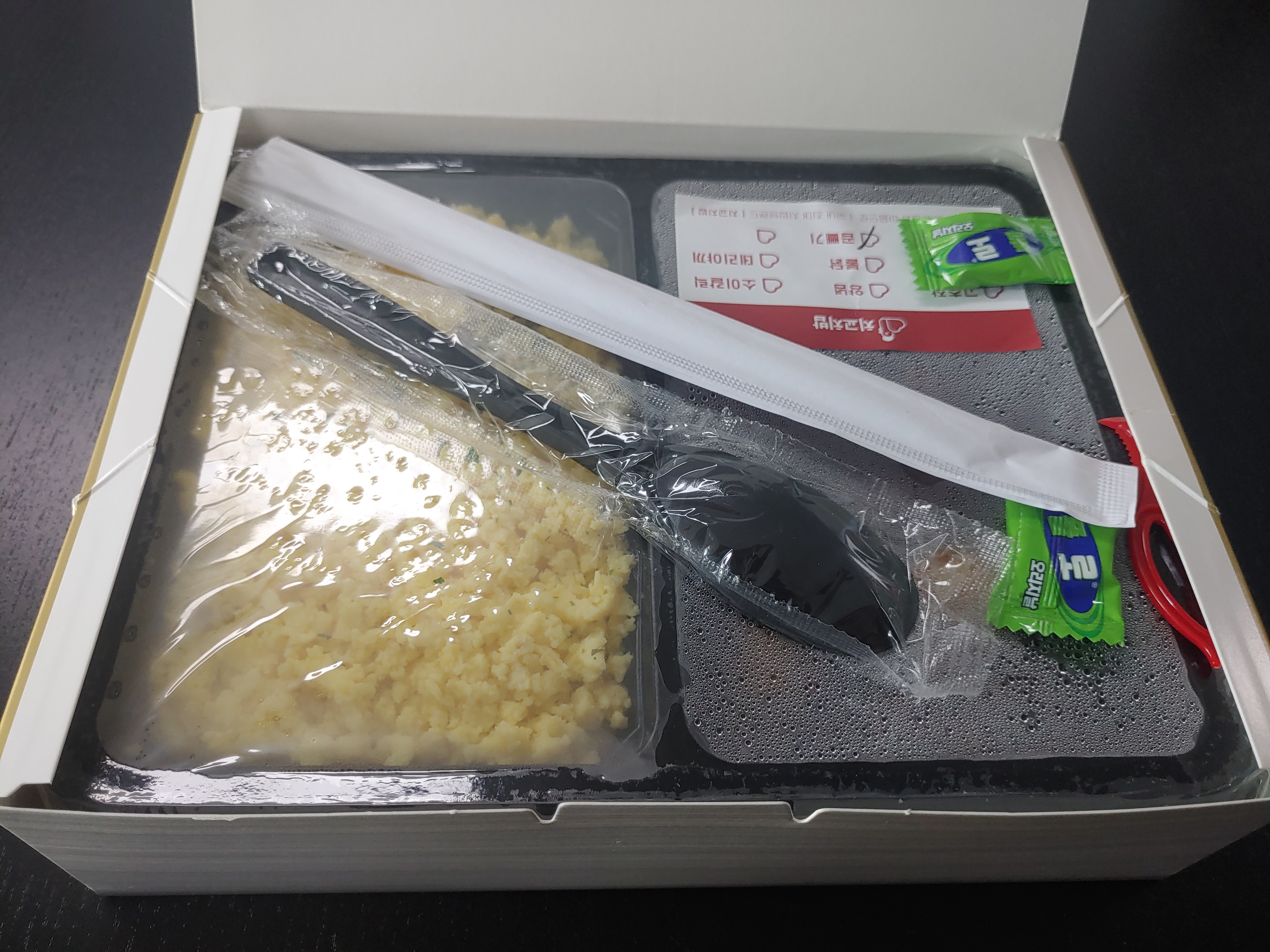 배달이 금방 도착을 했고, 이제 배달 온 음식을 열어보려고 하는데 !! 오!! 뭔가 굉장히 신기했는데 아래 사진을 보시면 딱 보시겠지만 뭔가 진짜 박스부터 굉장히 특이한 느낌이더라구요 !! 주문한 것이 카레치교는 아니었지만 굉장히 박스가 깔끔하고 신기하게 들어 있는 것을 볼 수 있었어요.