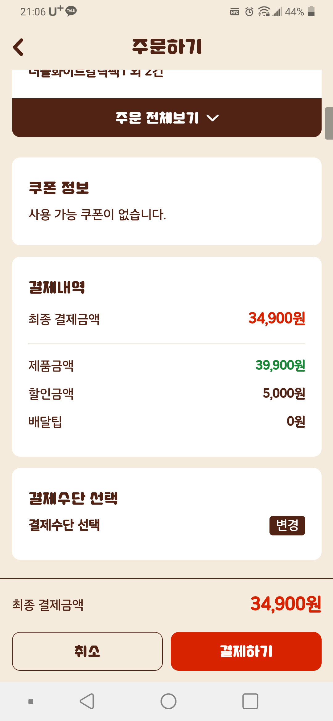 이번에는 딜리버리 주문이라 ㅎㅎ 매장 쿠폰이 아닌 5천원 할인쿠폰 적용받아서 딜리버리로 주문을 해봤습니다.