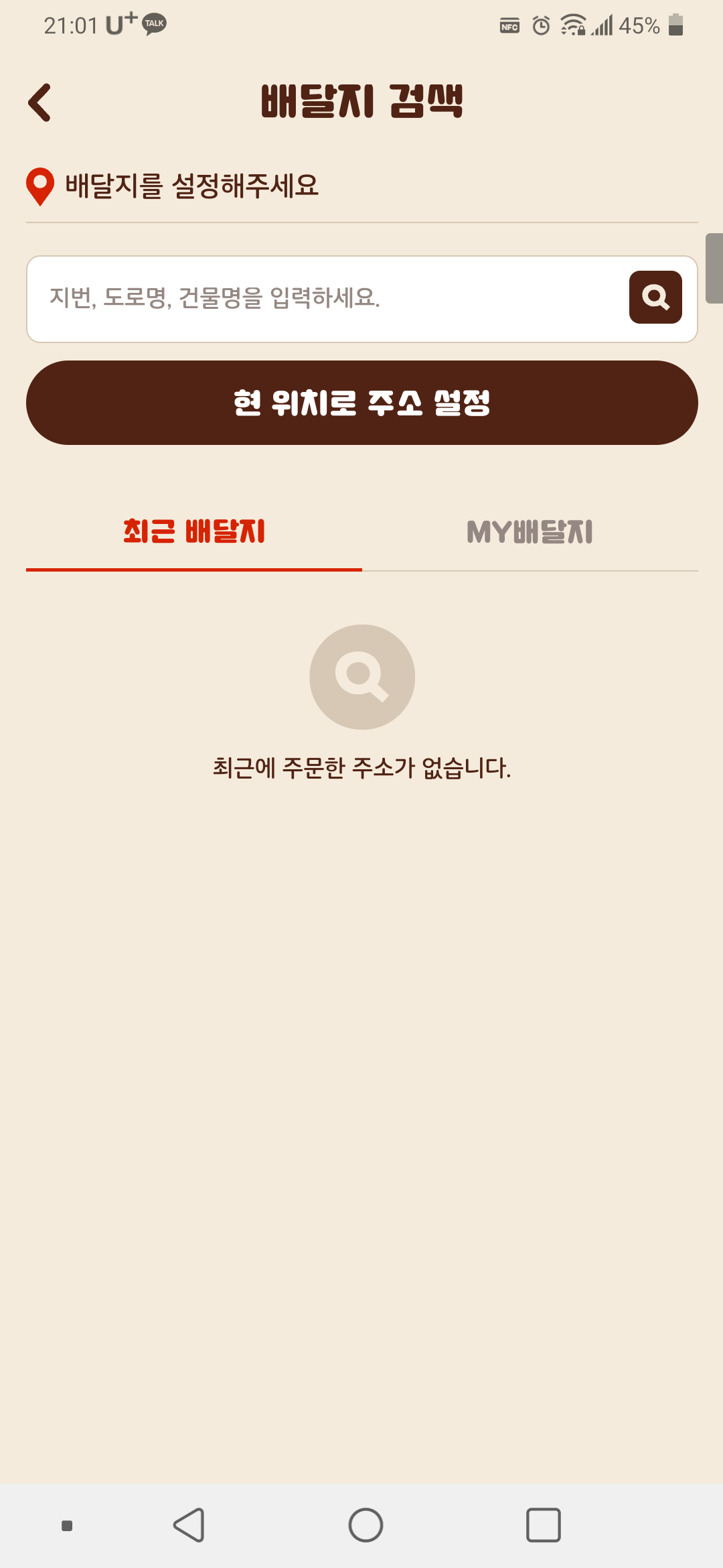 다만 불편했던 점은 검색이 아니라 지도로 찍게 되어 있는데, 지도 정확도가 떨어져서 다른 이상한 주소로... 연결되는 경우가 발생해서 본인 주소에서 살짝 위로 찍으면 정확하게 나오는 것은 좀 아쉬웠어요. 앱의 완성도를 위해서나 정확한 주소를 전달하기 위해서는 수정이 필요한 부분 같아보였습니다.