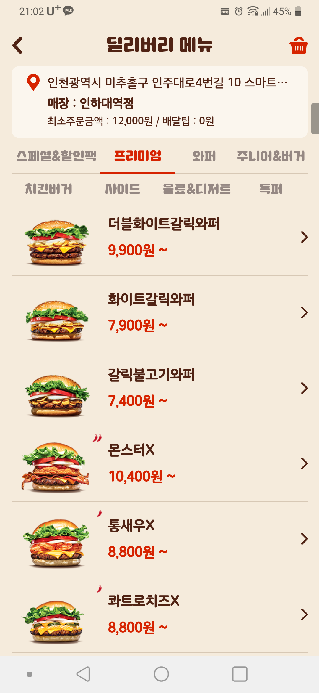 와퍼 중에서도 프리미엄 와퍼들 !! 개인적으로 콰트로 치즈와퍼를 사랑합니다 ^^