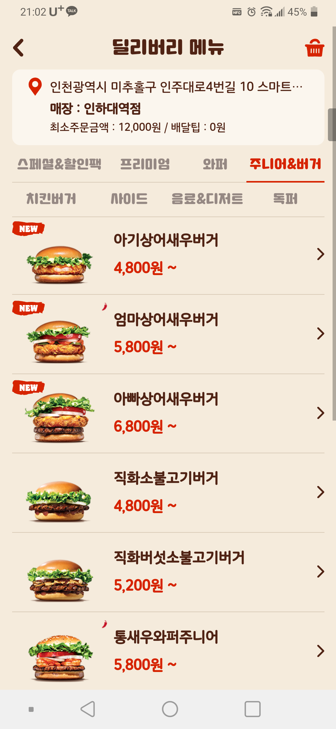 주니어& 버거들에는 상어버전 버거킹과 와퍼주니어, 치즈와퍼 주니어등이 있어요.