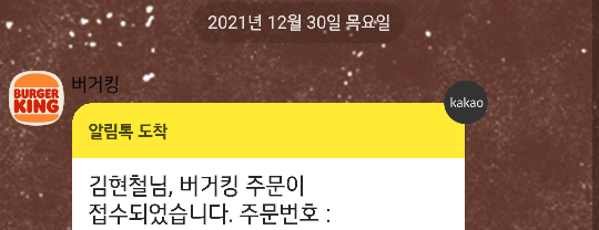 그리고 버거킹 딜리버리 주문한 것들이 카카오톡 알림톡으로도 오더니 시간이 지나고 도착을 했습니다!! 생각보다 조금 일찍 온 것 같더라구요. 하지만 엄청 빨리오지는 않았어요. 저녁이라 그랬는지 주문시간이 1시간 이상 잡혔는데, 1시간 쯔음 해서 온 것 같으니까요. 그래도 따뜻하게 잘 도착은 해서 다행이더라구요!! 추운날이라서 살짝 걱정했는데 말이죠.