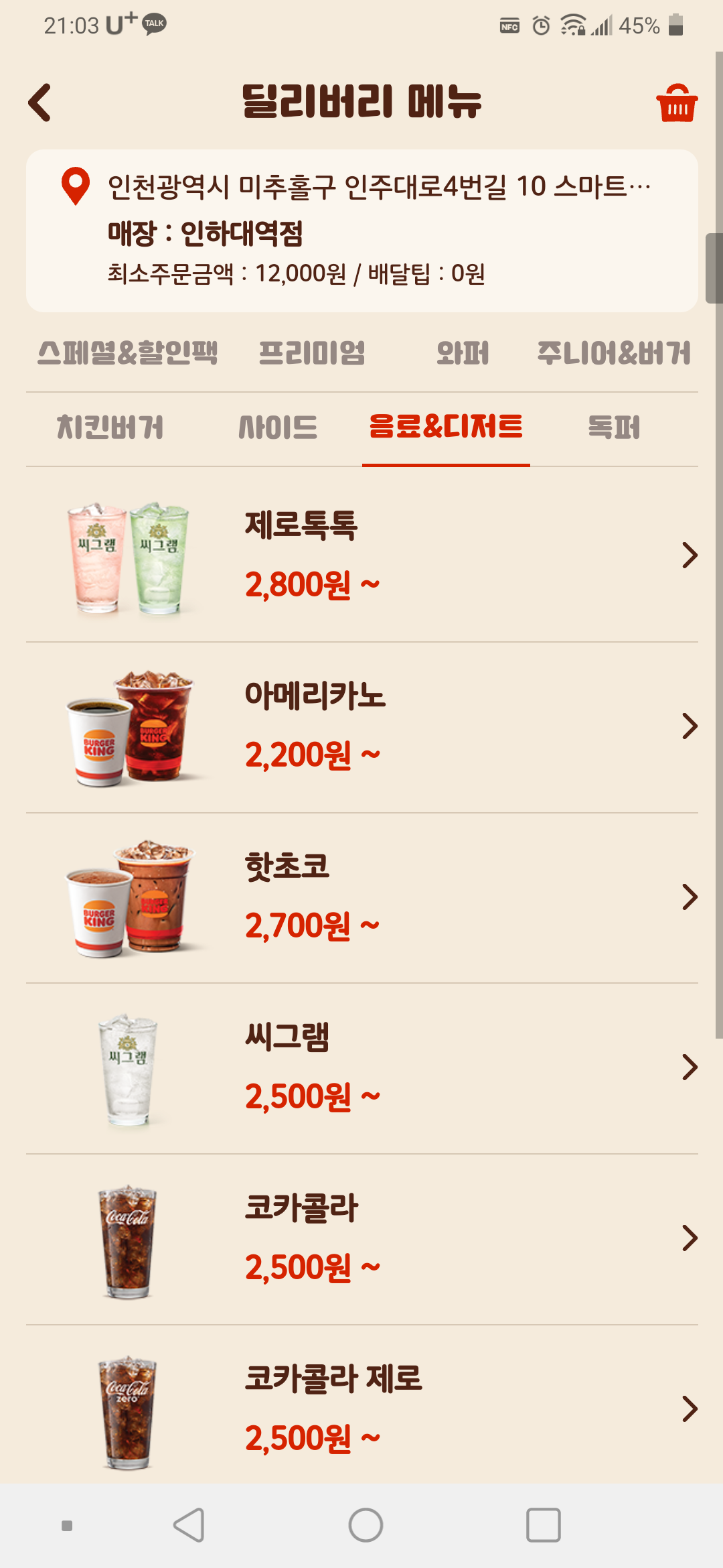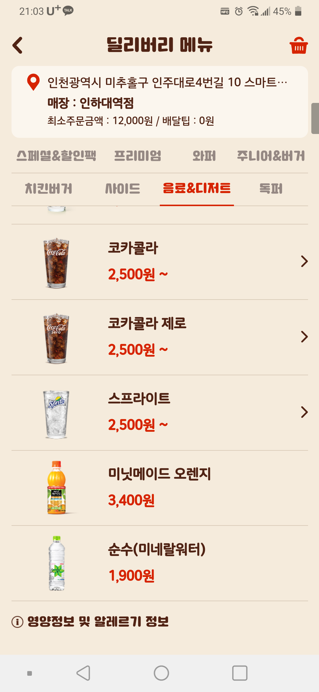 마지막으로 음료들 간단하게 메뉴들과 가격대 담아봤습니다. 가격대는 실제로 각 버거별로 옵션등을 추가하면 가격이 올라갈 수 있어요.