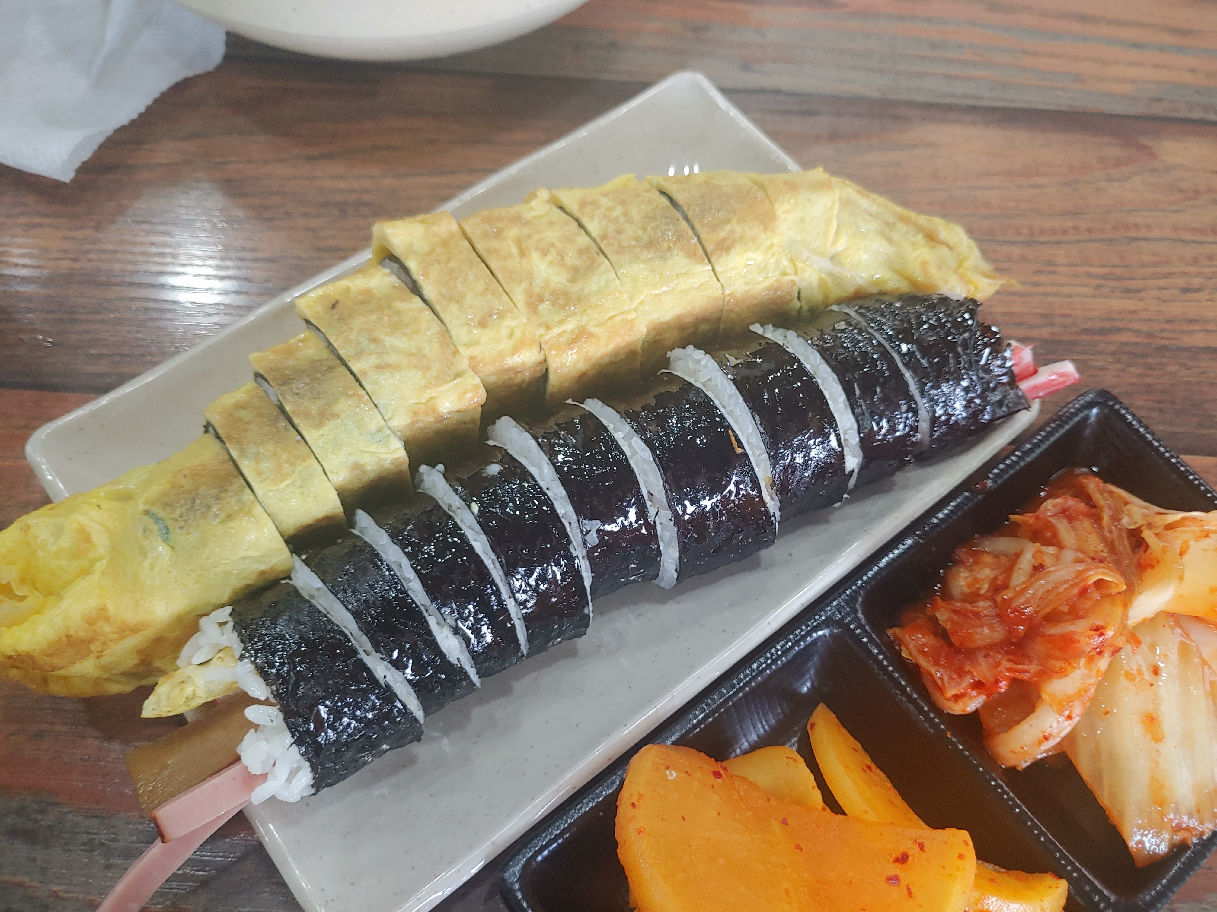 개인적으로 오목골에서 제일 아쉬운 점은 김밥이라고 생각하는데요... 맛의 편차가 조금 있는 편입니다. 무슨 이유인지는 모르겠지만 김밥에서 김 비린맛이 좀 나는 경우들도 있기도 하고, 너무 밥을 많이 넣어서 퍽퍽한 느낌도 있어요